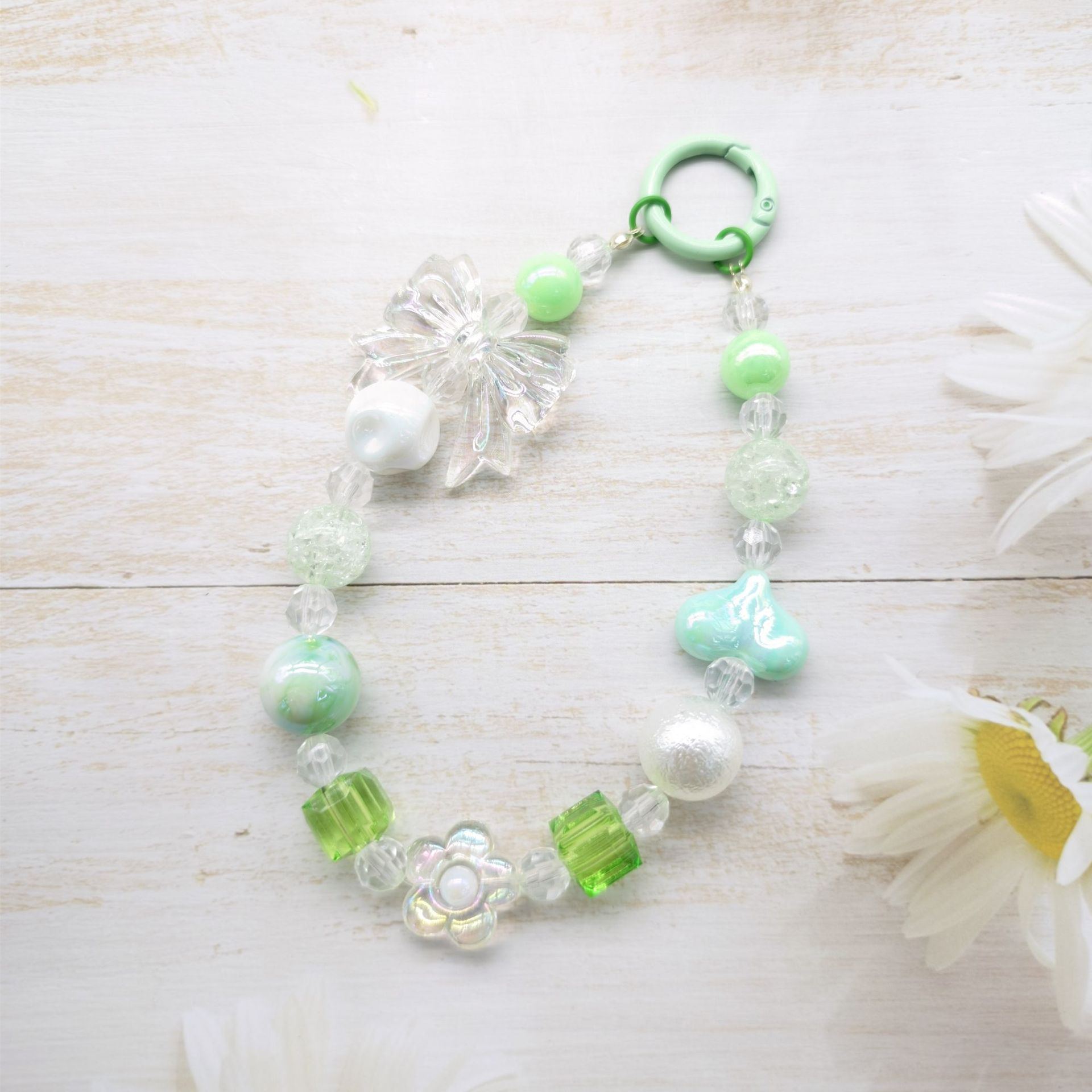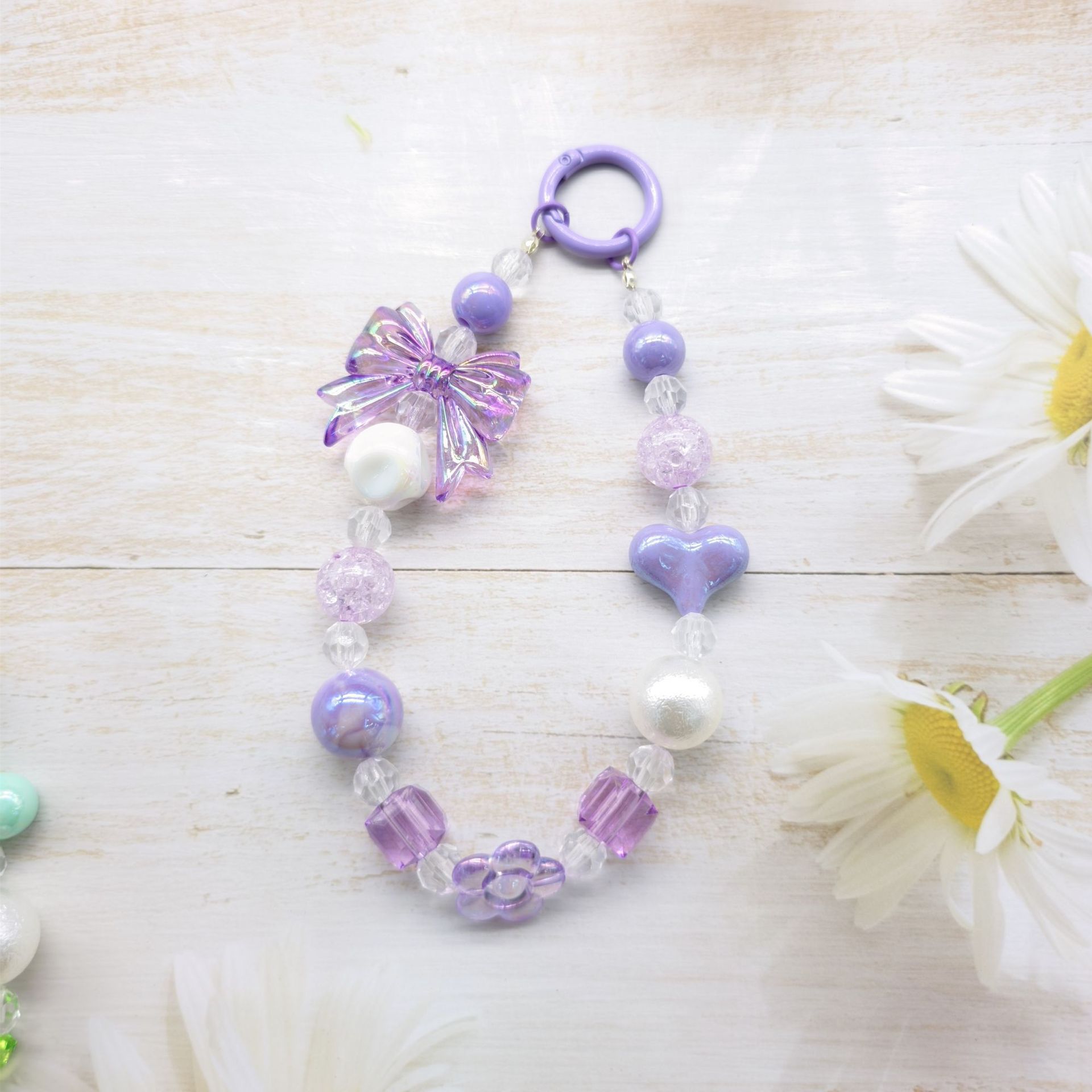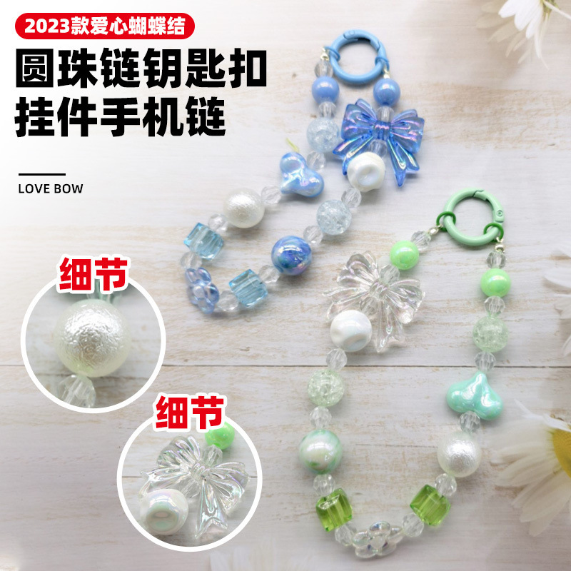 2023 nuevo llavero de cadena de cuentas redondas amor arco colgante Cadena de teléfono móvil colorido fresco perla color sólido coincidencia