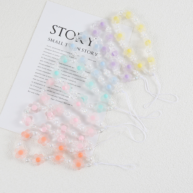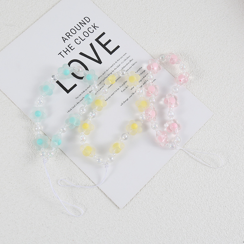 Flor cordón DIY teléfono móvil Shell cadena hecha a mano con cuentas fresca pequeña flor colgante cadena joyería decorativa cadena colgante