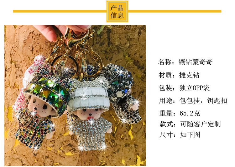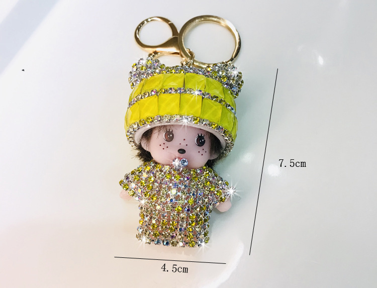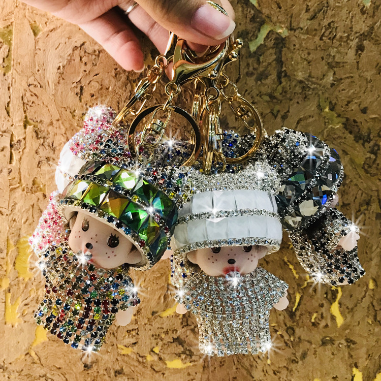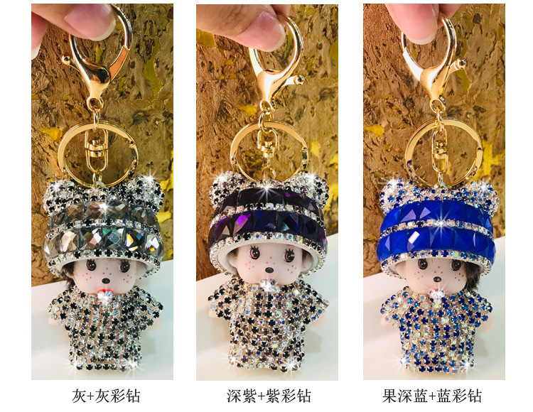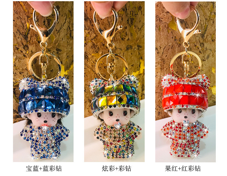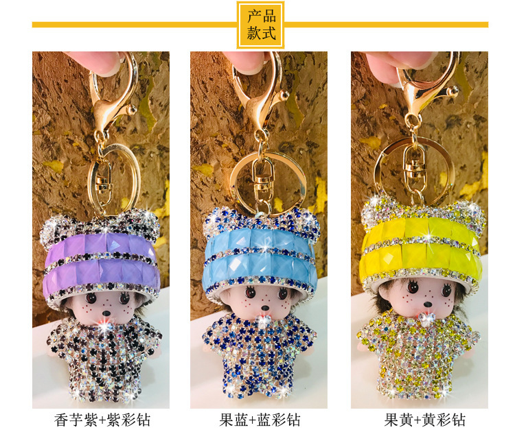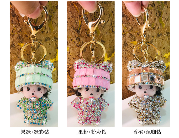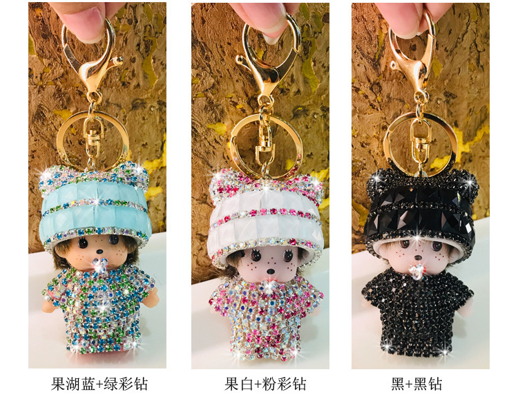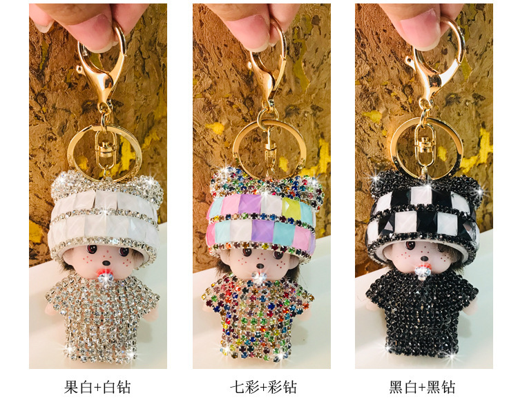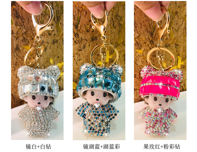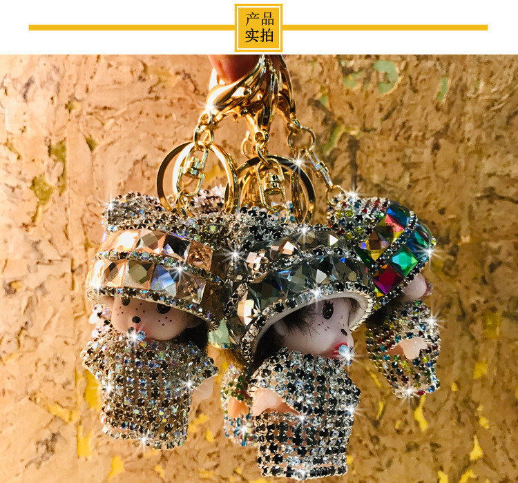 Corea del Sur creativo lindo monchic diamante coche llavero mujer dibujos animados par coche bolsa colgante al por mayor