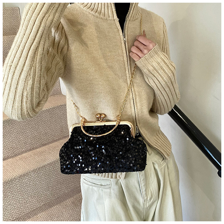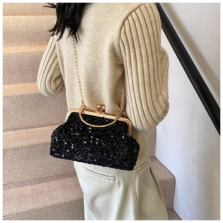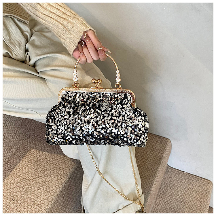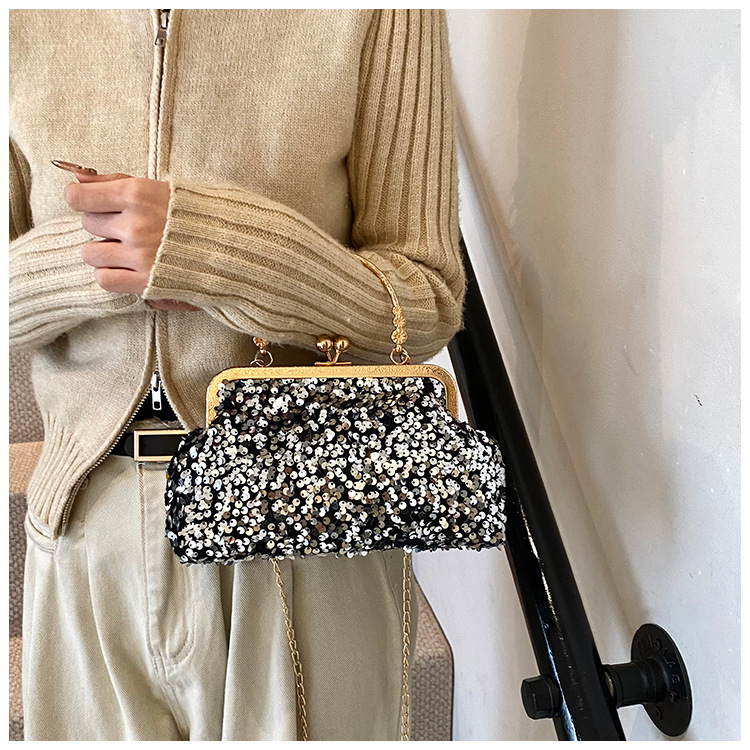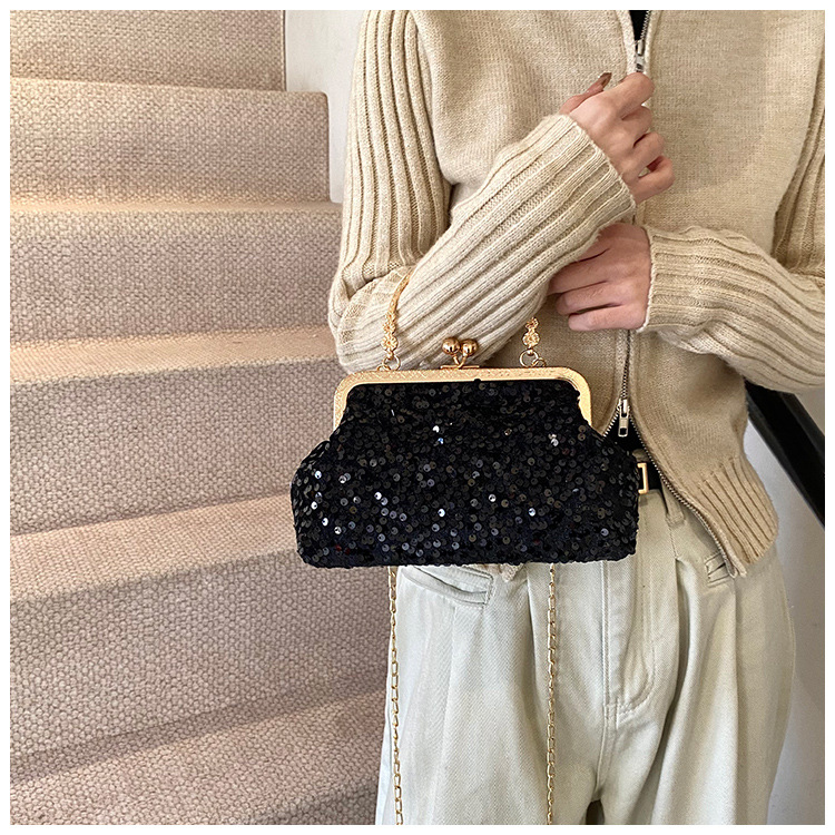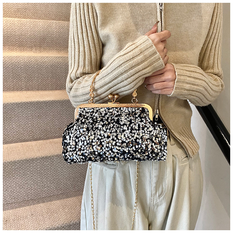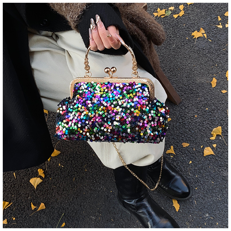 Bolsos de conchas de sequillas 2024 invierno nuevo estilo de moda brillante bolso de mano de celebridad estilo extranjero elegante mochila de hombro