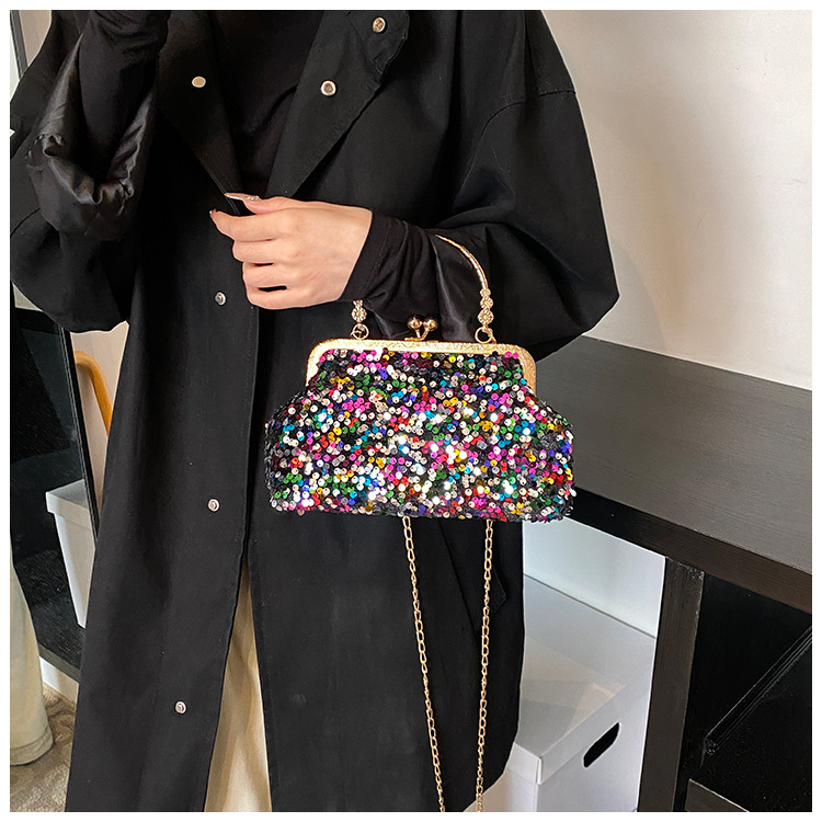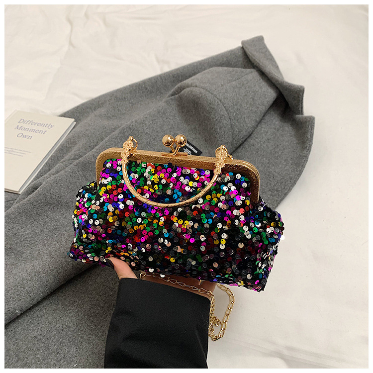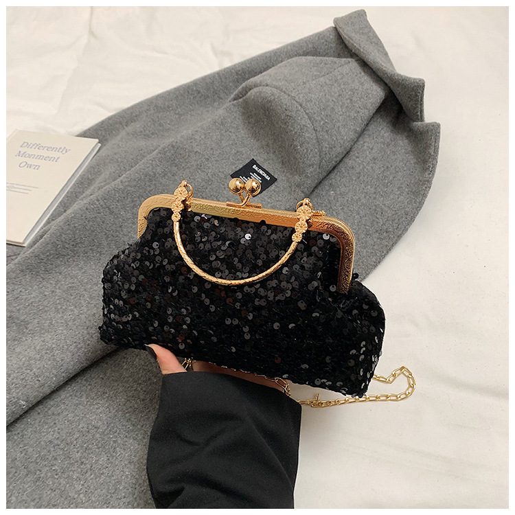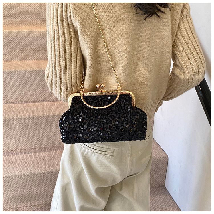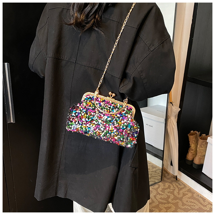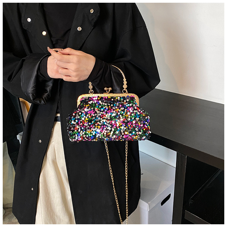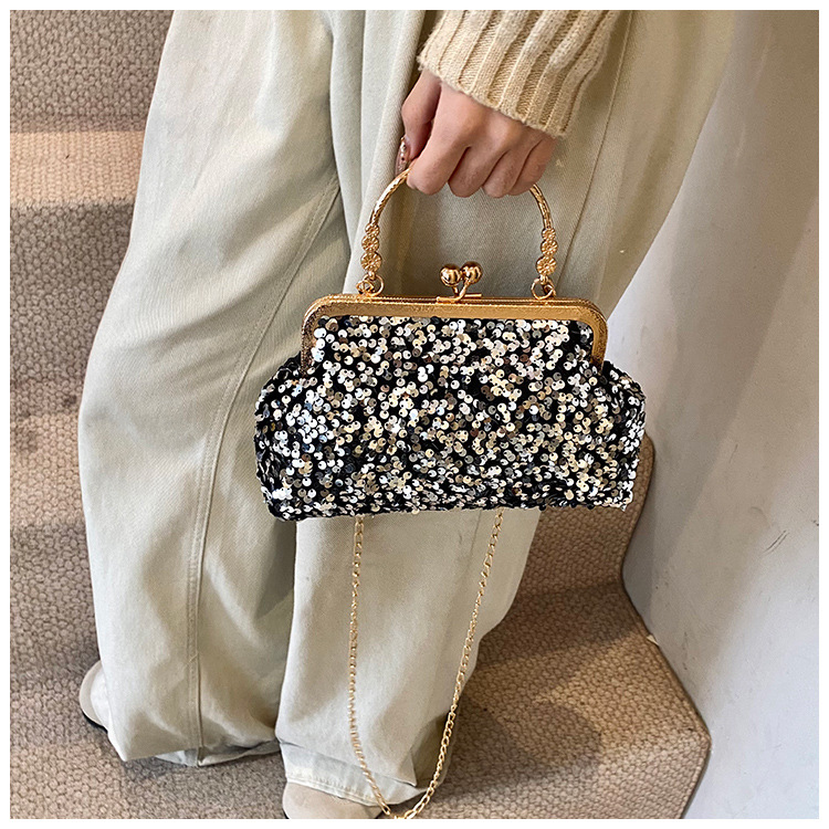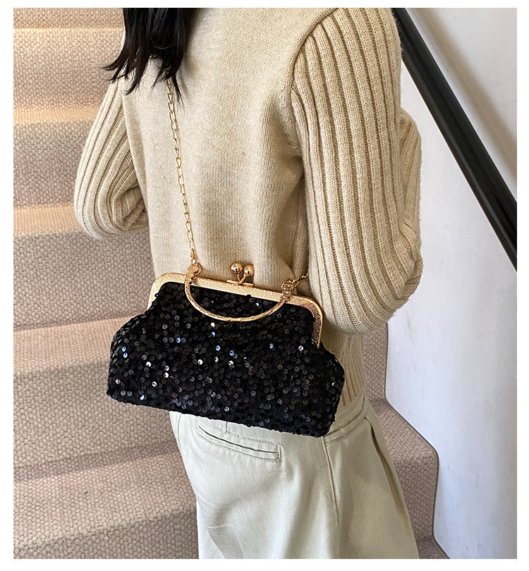Bolsos de conchas de sequillas 2024 invierno nuevo estilo de moda brillante bolso de mano de celebridad estilo extranjero elegante mochila de hombro