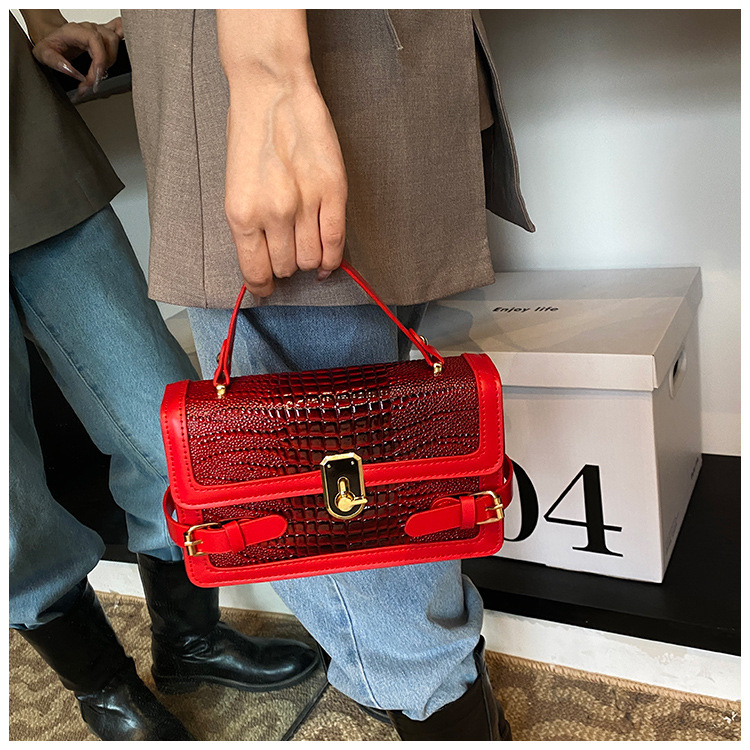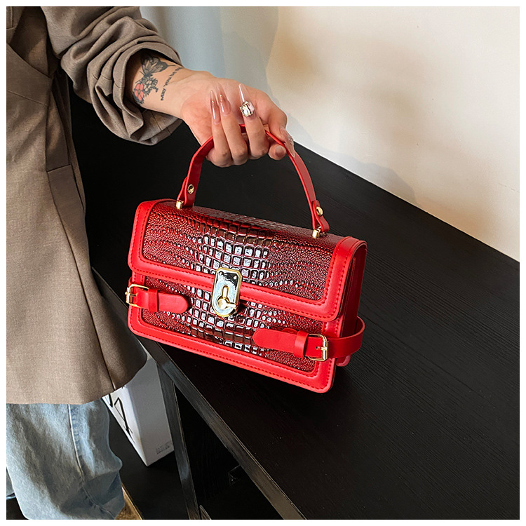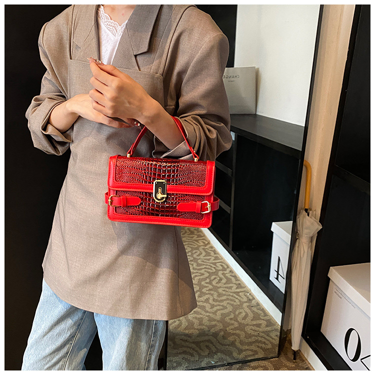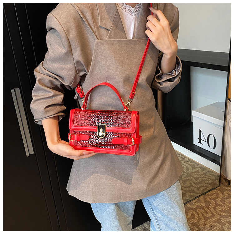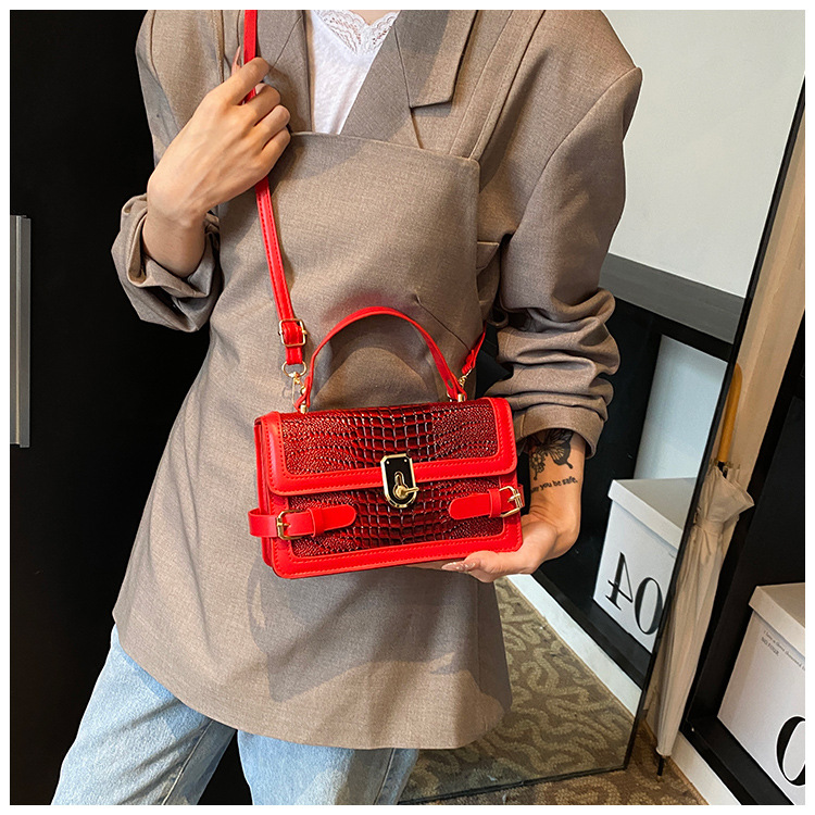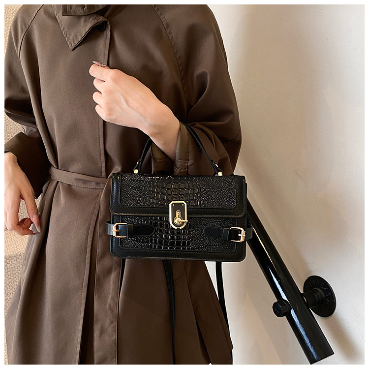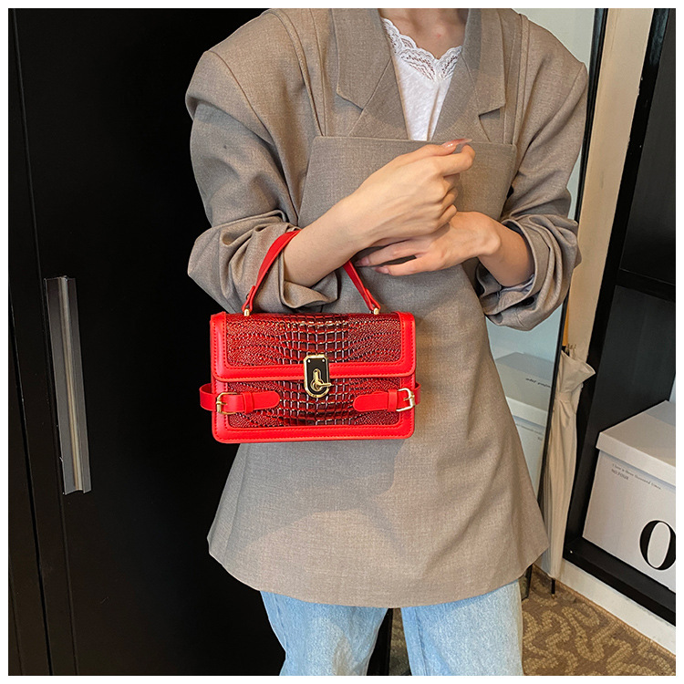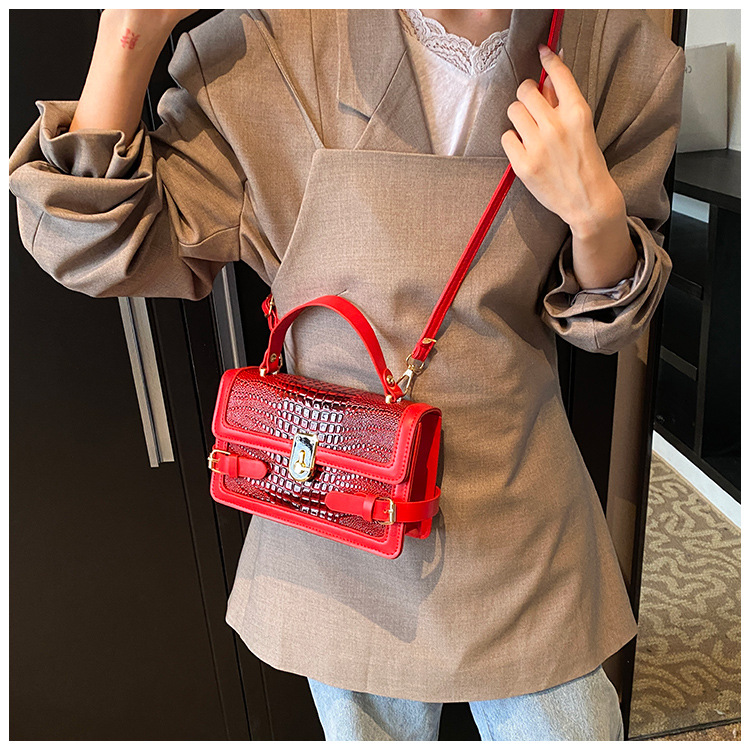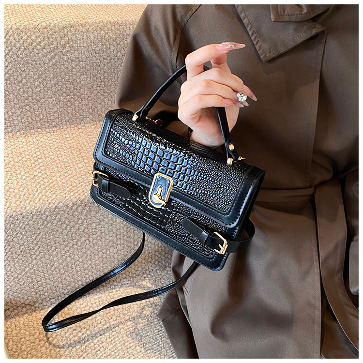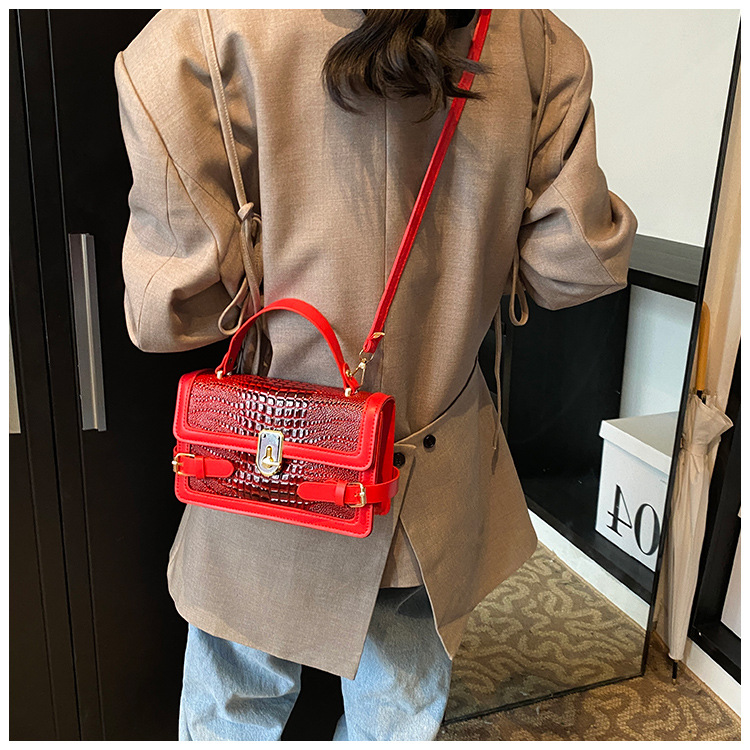 Bolso de hombro de estilo occidental Bolso de mujer de PU Bolso cuadrado pequeño de mensajero simple de moda Bolso de patrón de cocodrilo de todo fósforo de tendencia casual