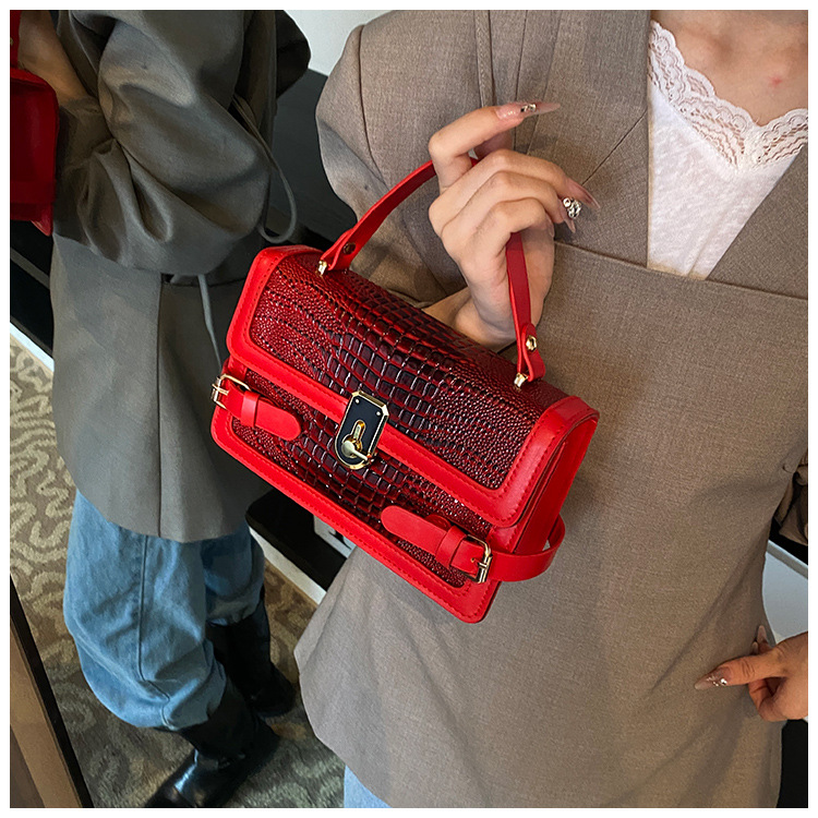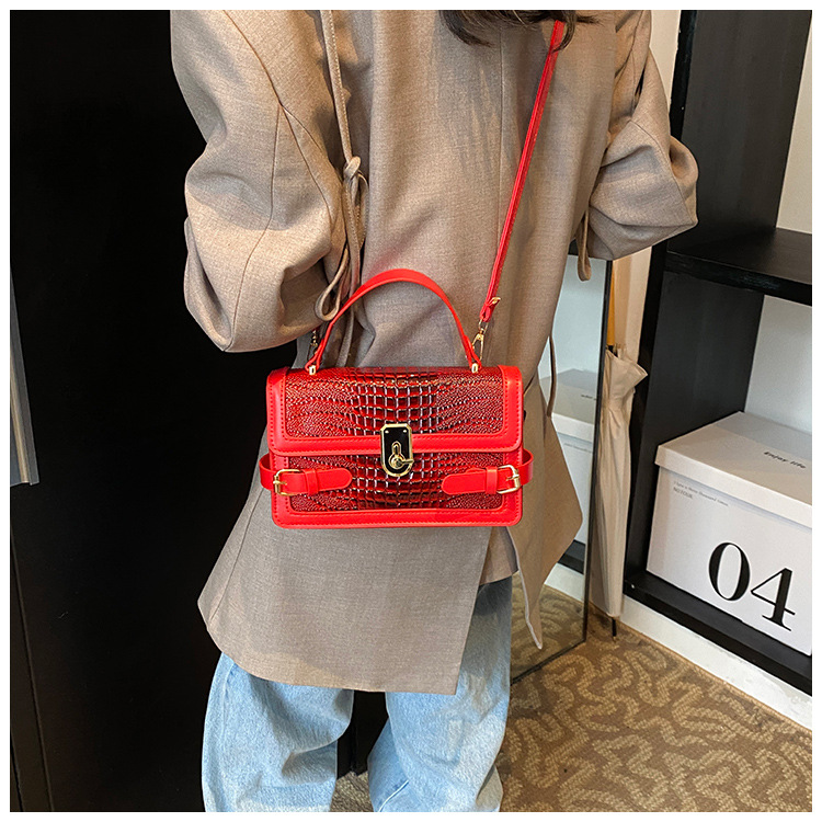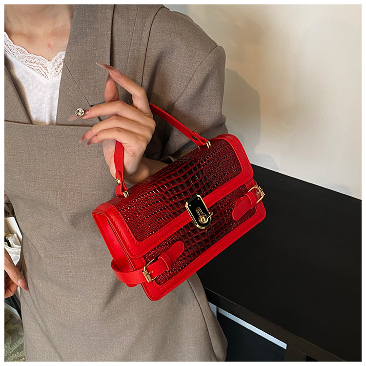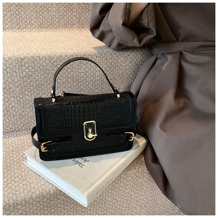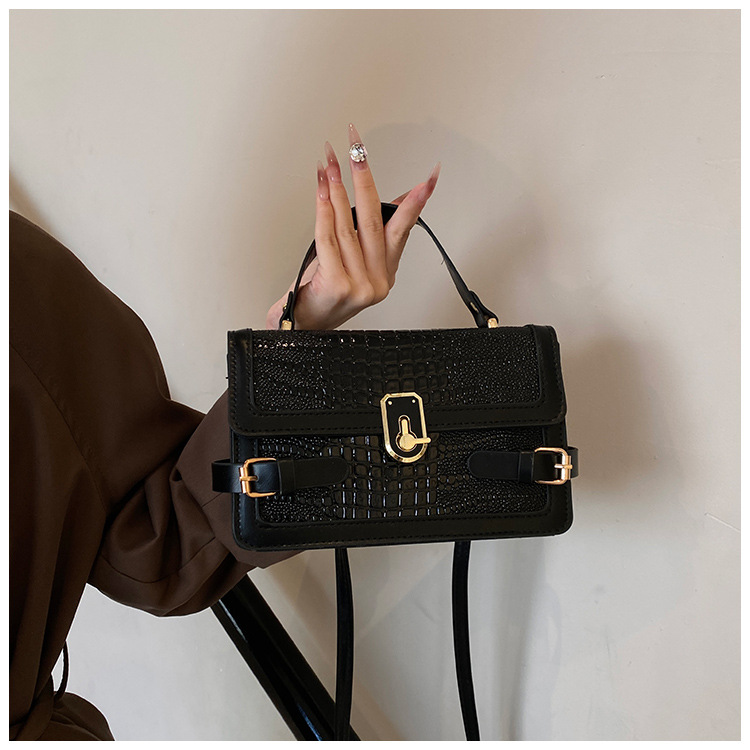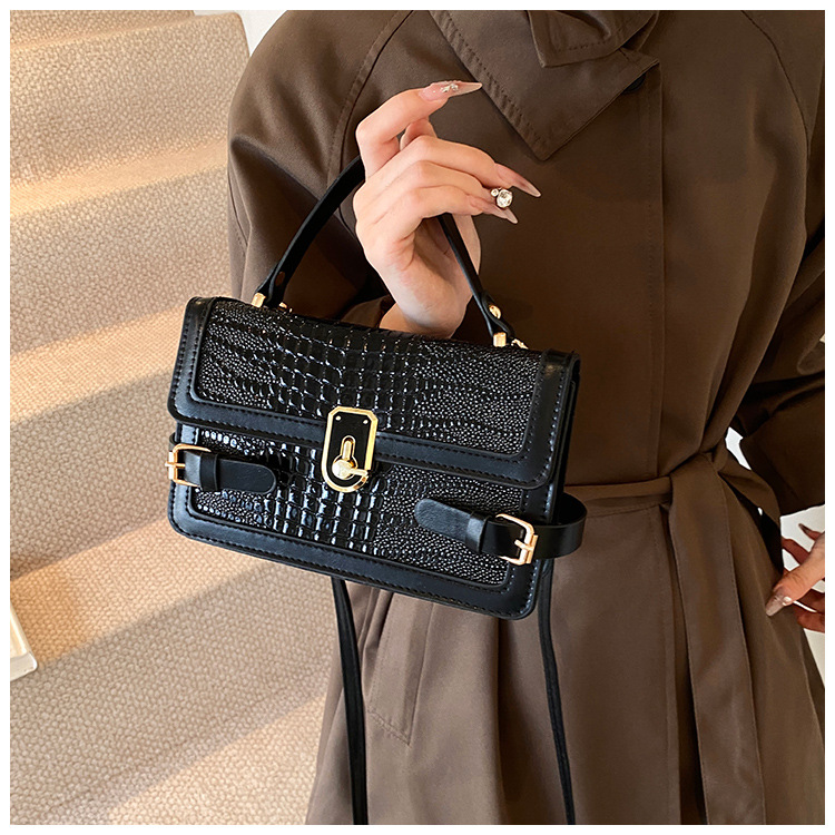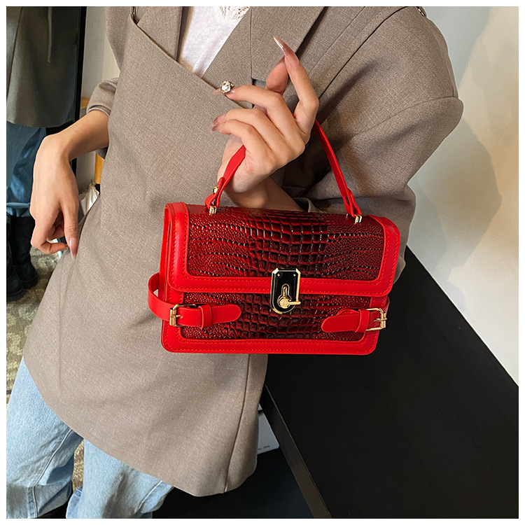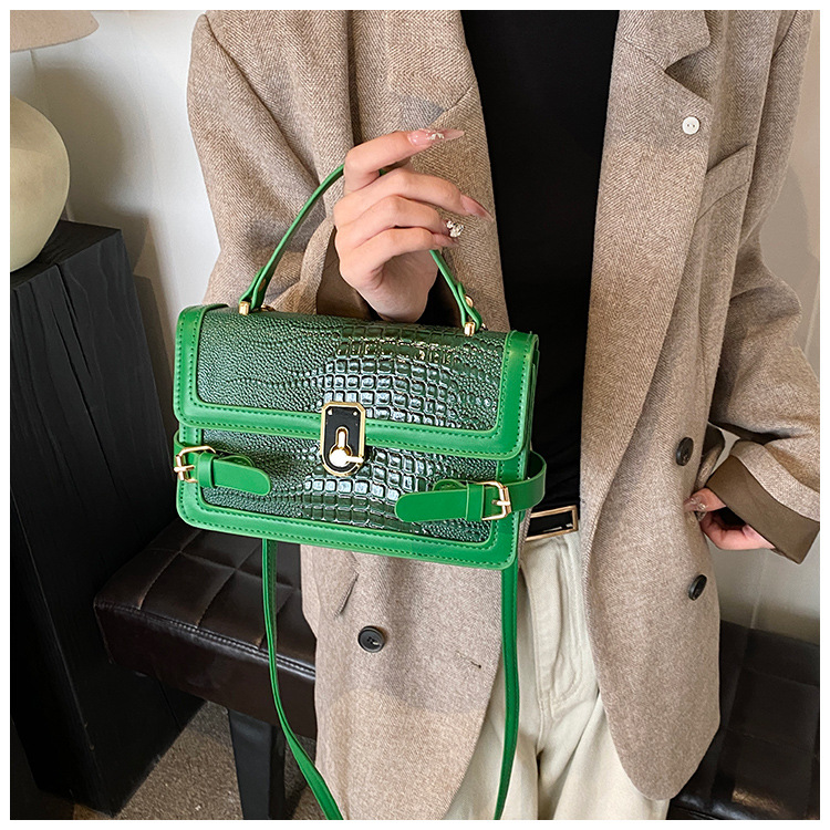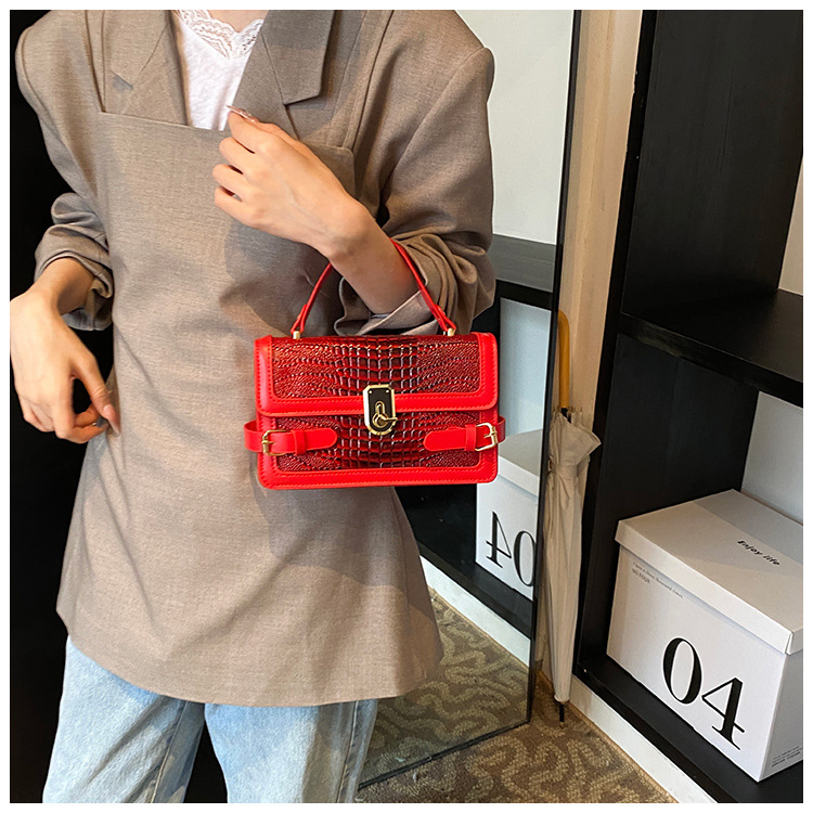 Bolso de hombro de estilo occidental Bolso de mujer de PU Bolso cuadrado pequeño de mensajero simple de moda Bolso de patrón de cocodrilo de todo fósforo de tendencia casual