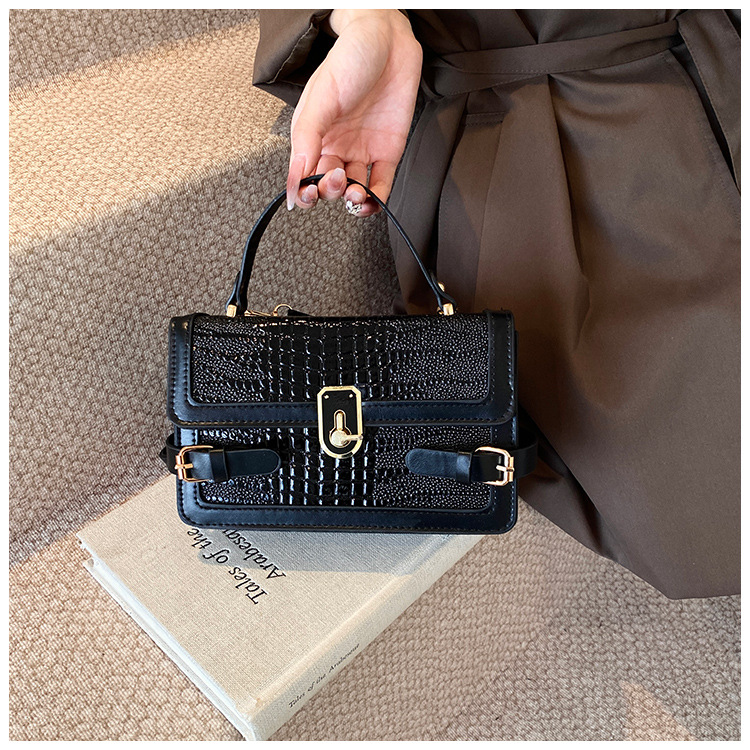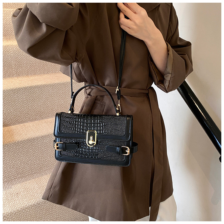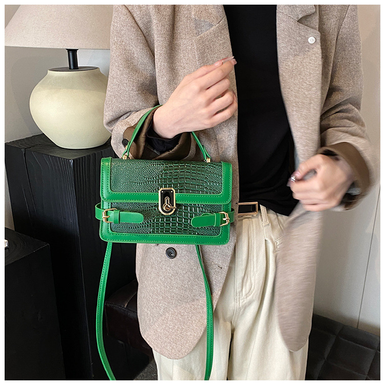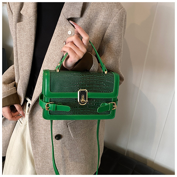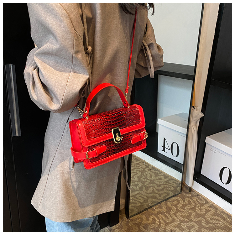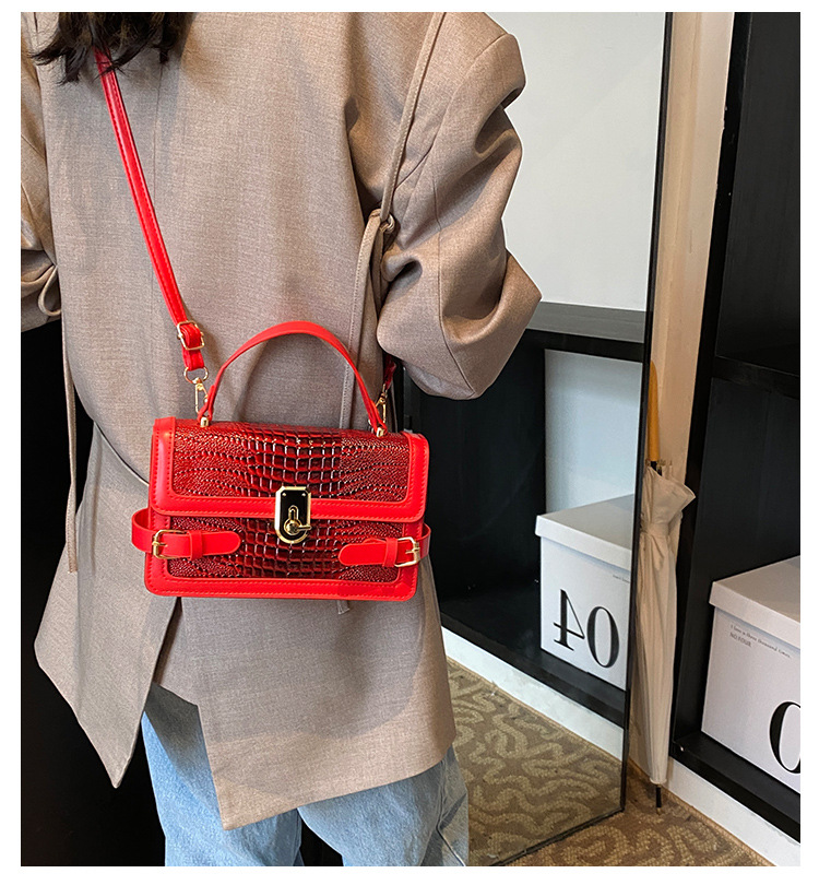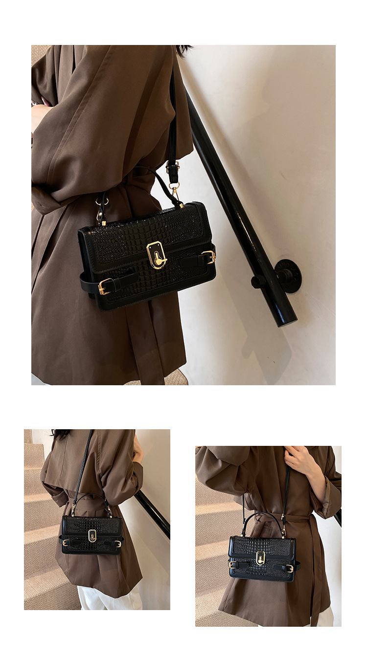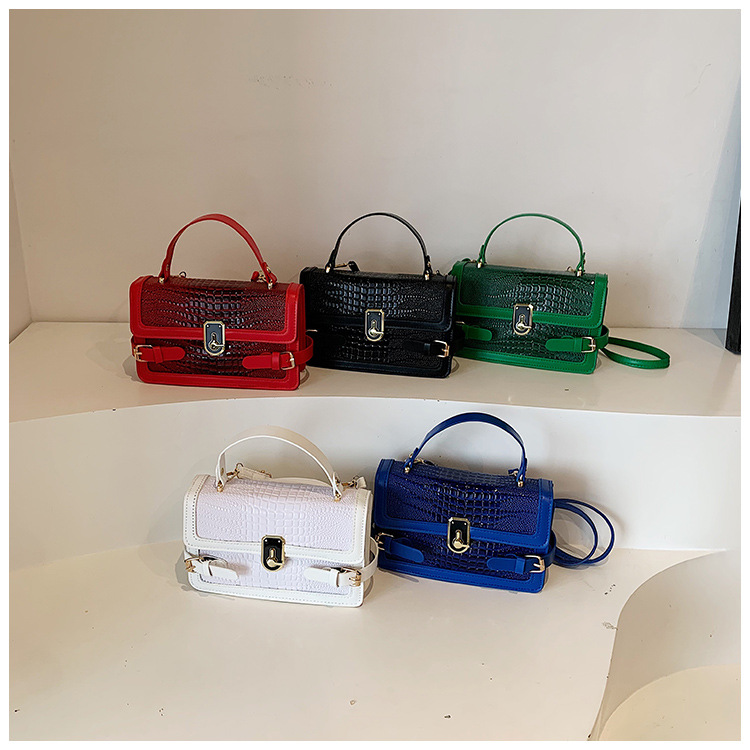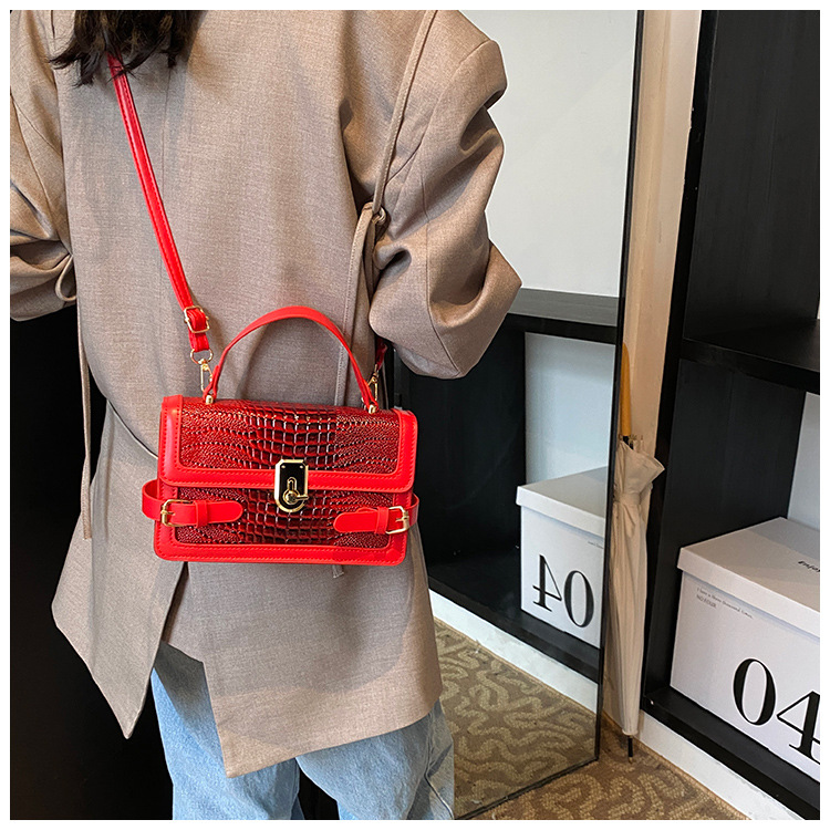 Bolso de hombro de estilo occidental Bolso de mujer de PU Bolso cuadrado pequeño de mensajero simple de moda Bolso de patrón de cocodrilo de todo fósforo de tendencia casual