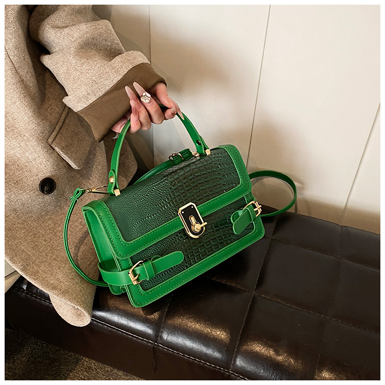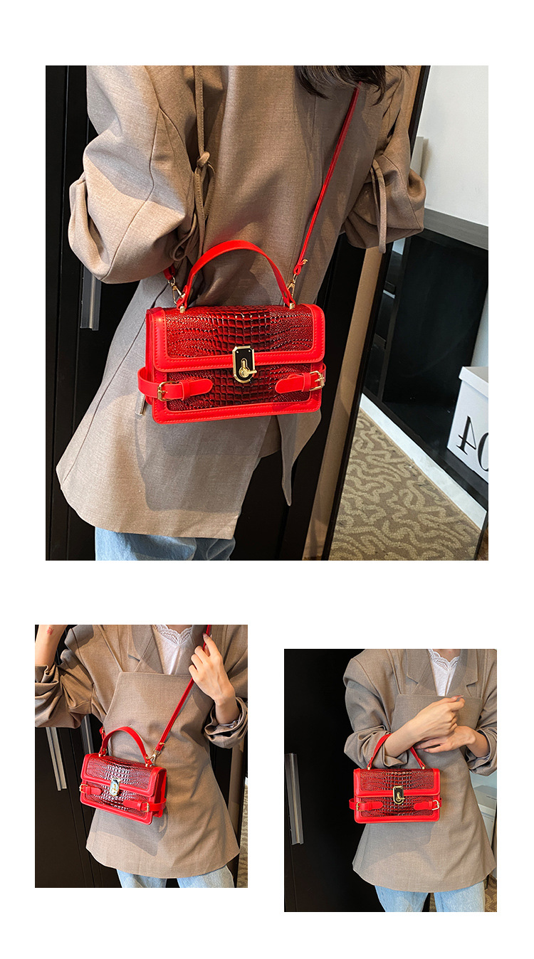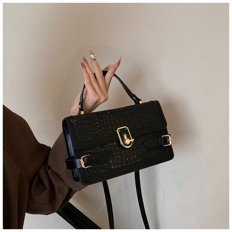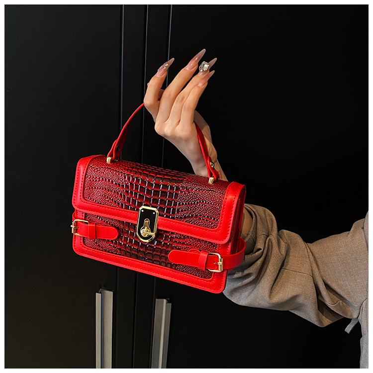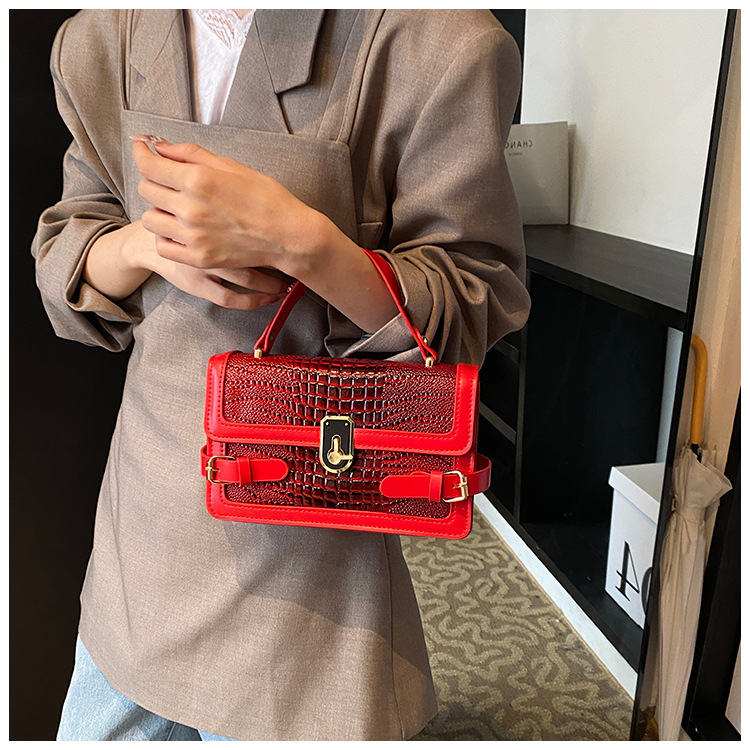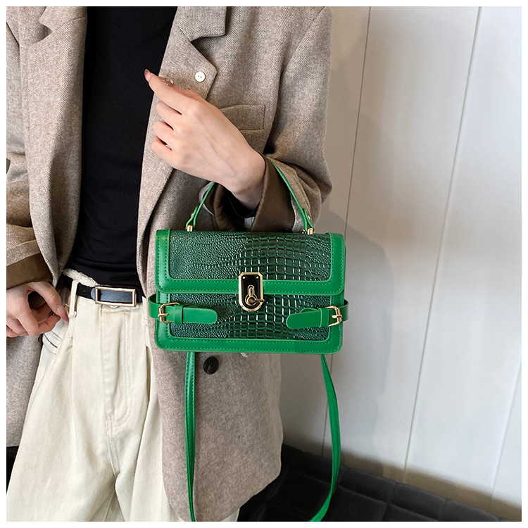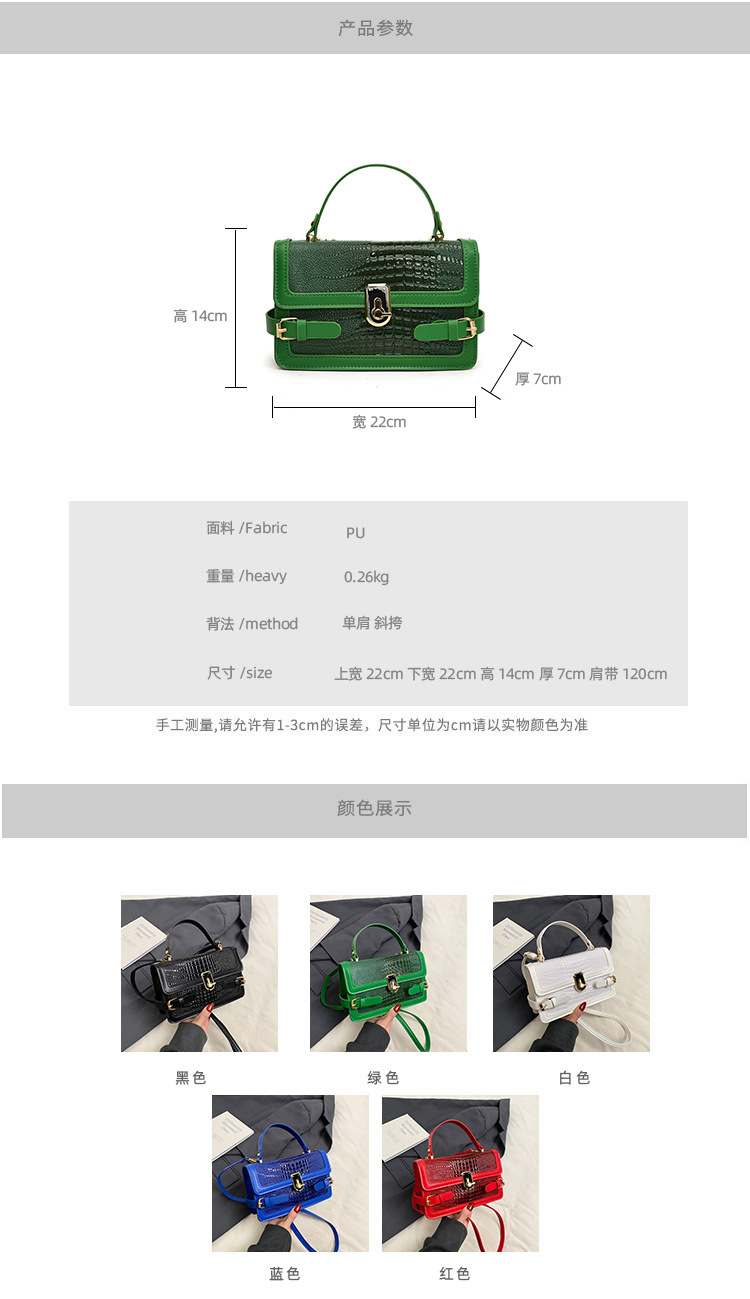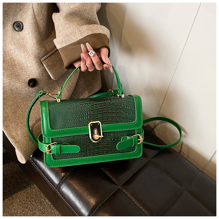 Bolso de hombro de estilo occidental Bolso de mujer de PU Bolso cuadrado pequeño de mensajero simple de moda Bolso de patrón de cocodrilo de todo fósforo de tendencia casual