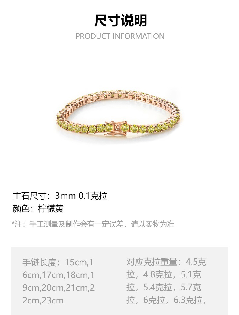 3mm limón amarillo nuevo moissanite color moissanite probado diamante pluma con GRA Super Flash fuego color tenis pulsera
