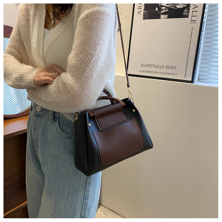 Nueva primavera estilo coreano costura de moda textura retro bolso cuadrado pequeño de un solo hombro 2024 bolso diagonal portátil de estilo occidental casual