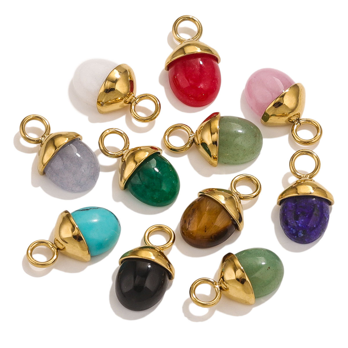 Bolsas de colgante de piedra natural de acero inoxidable en forma de pino DIY accesorios de joyería al por mayor