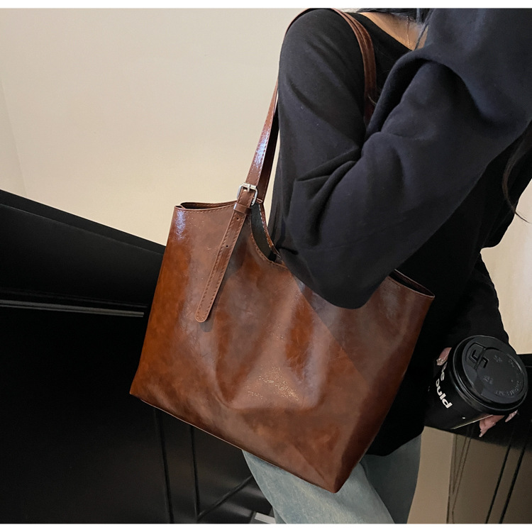 Otoño y invierno nuevo tipo de piel de cera de gran capacidad tote bag para mujeres de alta calidad de viaje al trabajo tote bag para mujeres 2024 tote bag