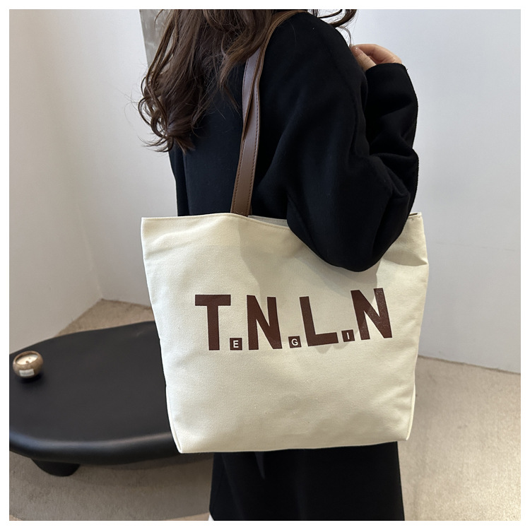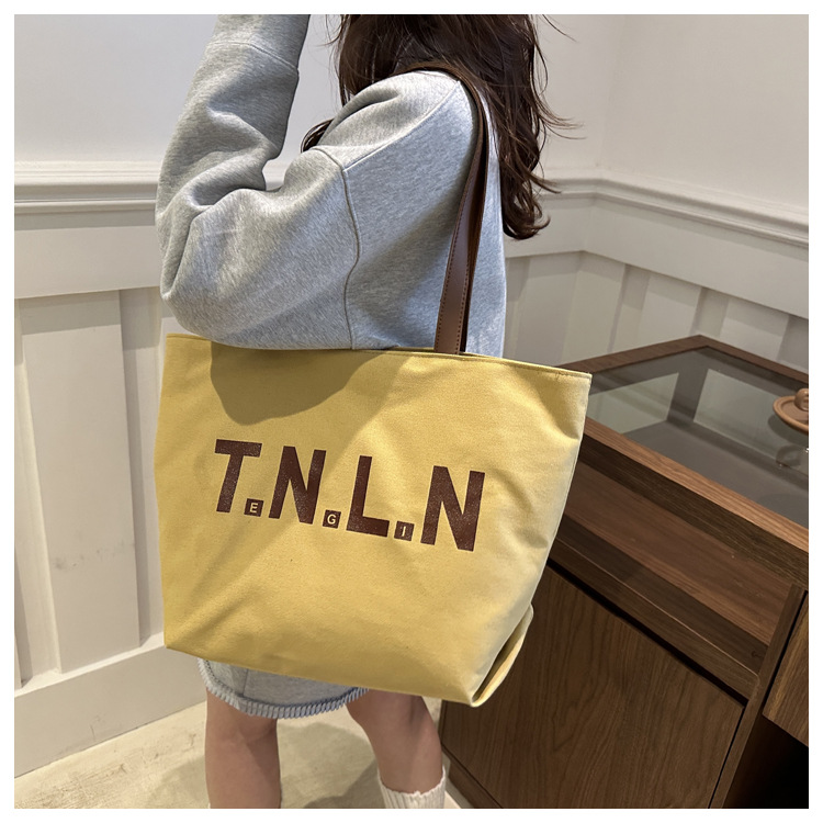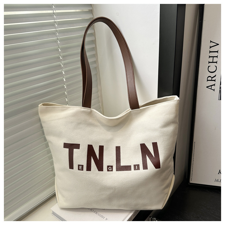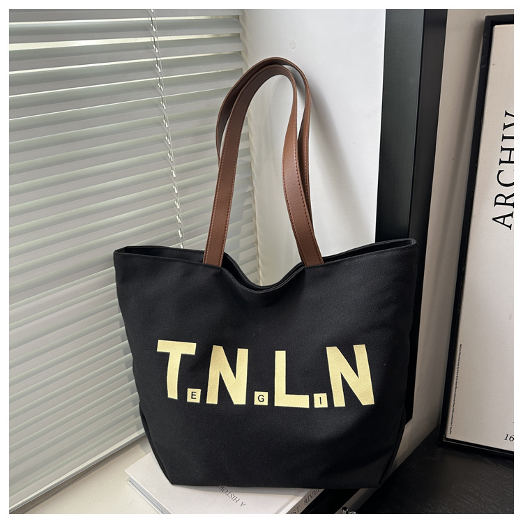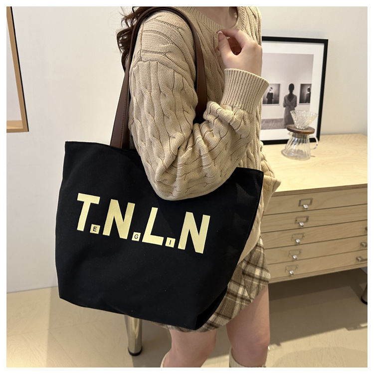 Bolsa de lona de gran capacidad para mujeres otoño / invierno 2024 nuevo estilo coreano letras impresión bolso especial de nicho de viaje bolso de hombro