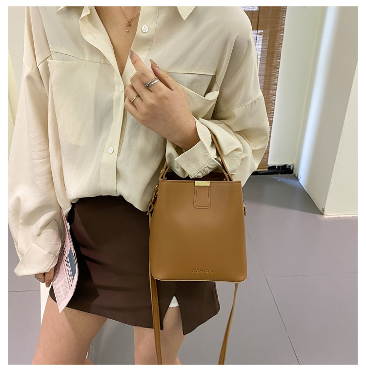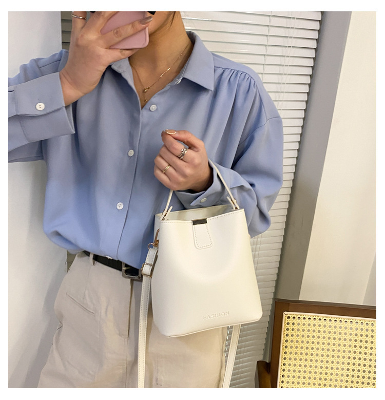 Bolsos pequeños de moda de primavera para mujer 2021 nueva moda coreana simple color sólido moda mensajero bolso de cubo portátil de un solo hombro