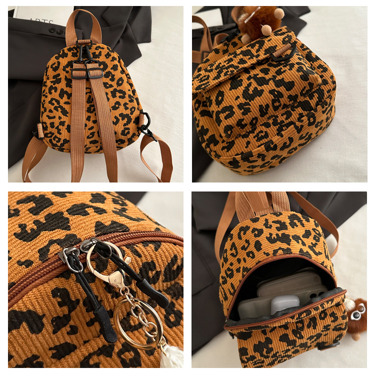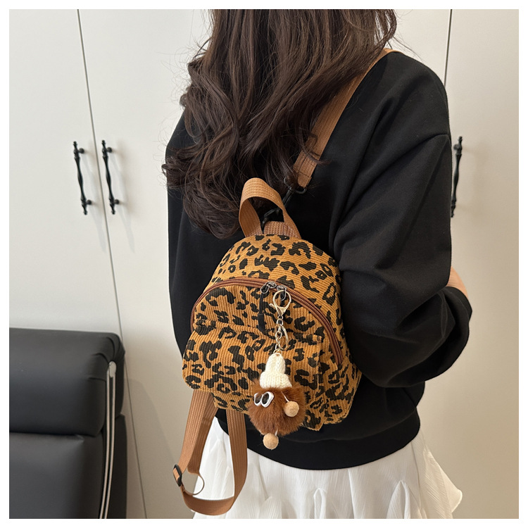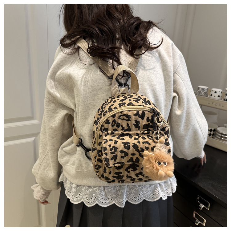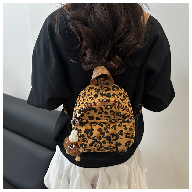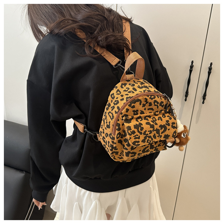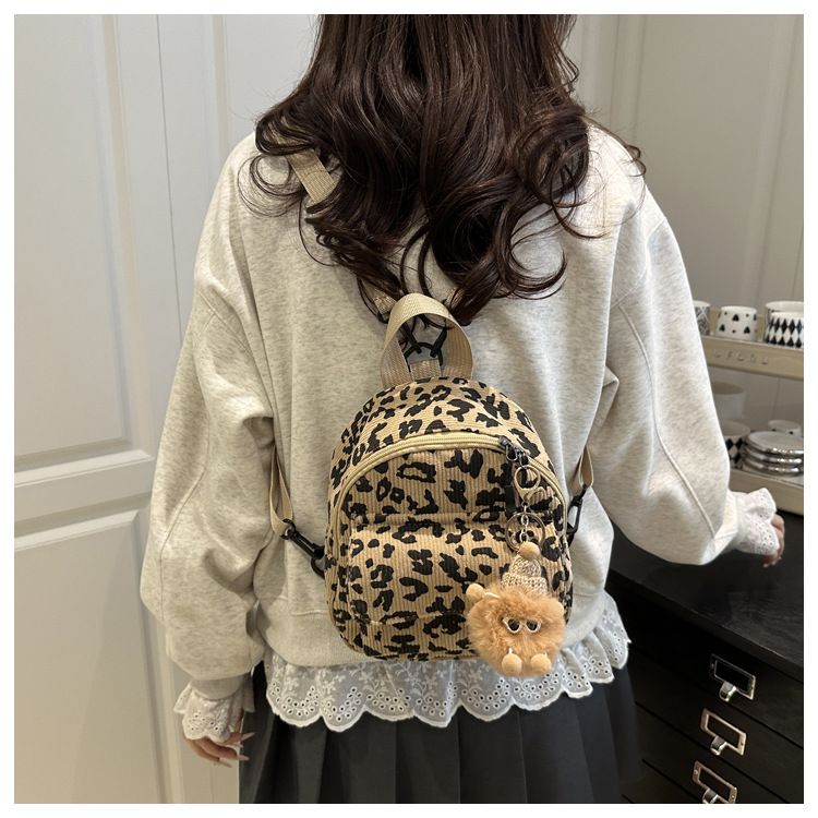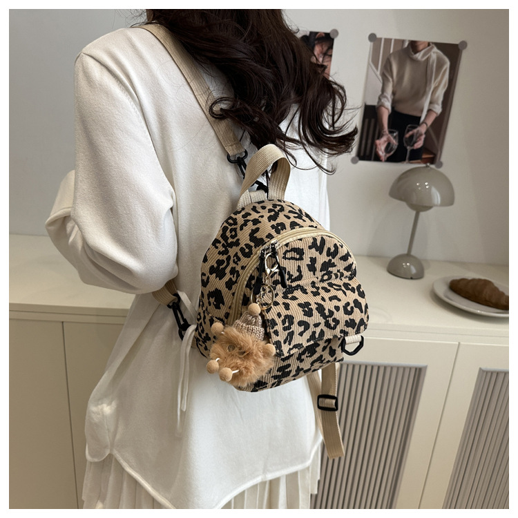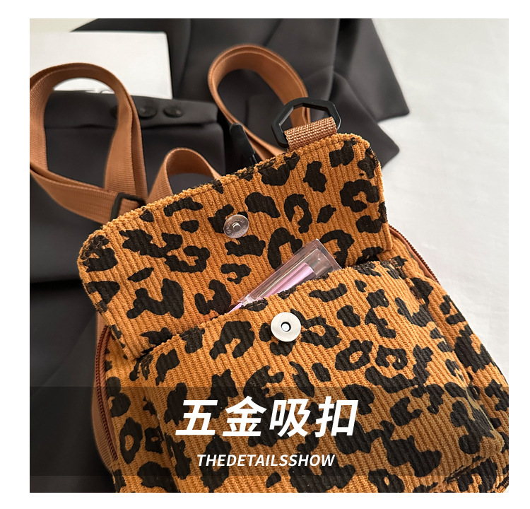 2025 nuevo estilo coreano de moda de terciopelo, leopardo de moda, estilo universitario, ocio, moda, literatura y arte, mochila extranjera.