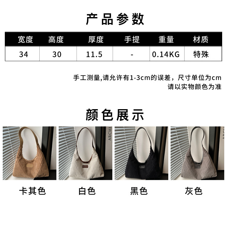 Casual de gran capacidad bolso de terciopelo para mujeres 2024 nuevo otoño invierno versátil bolso de hombro de brazo bolso de mano tote