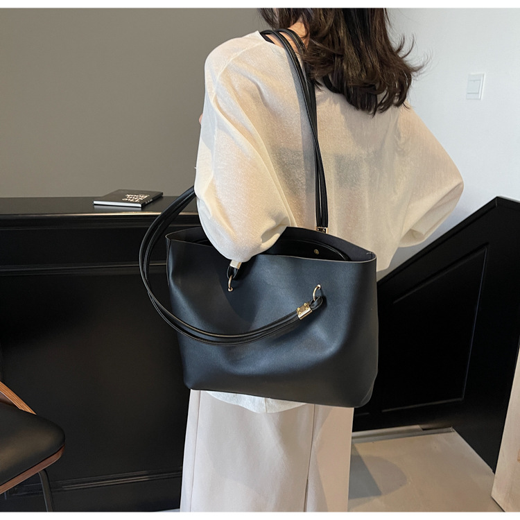 Bolsa de compras relajada para mujeres 2024 nueva moda europea y americana simple atmósfera bolsa de hombro de cuero suave sensación de viaje bolsa