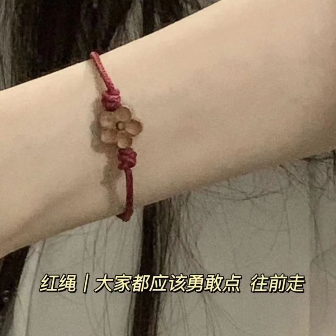 Pequeño libro rojo con madera de melocotón tallado ciruela cuerda de mano cuerda de mano tejida cuerda de la suerte para dar regalo a una amiga