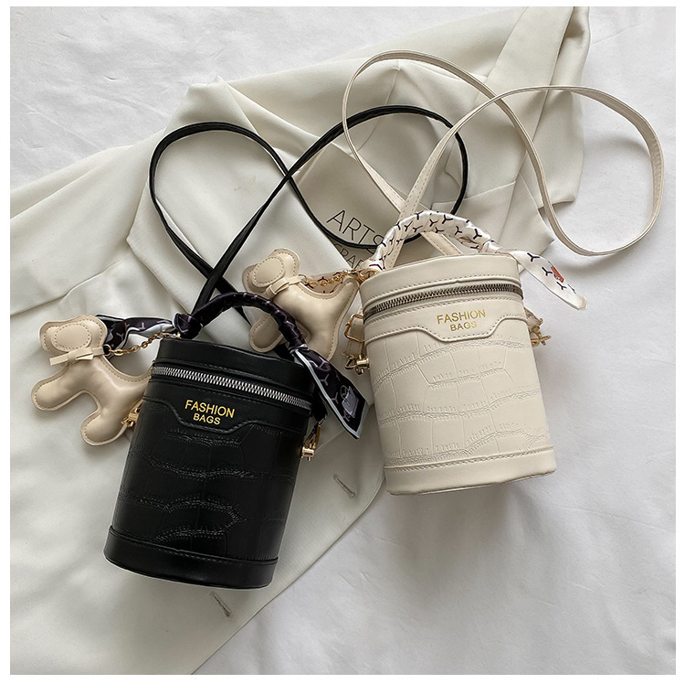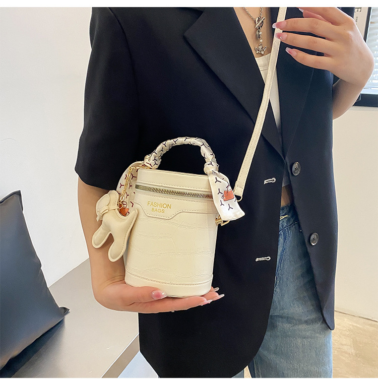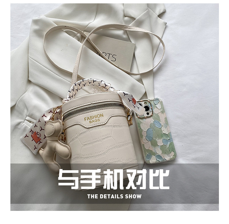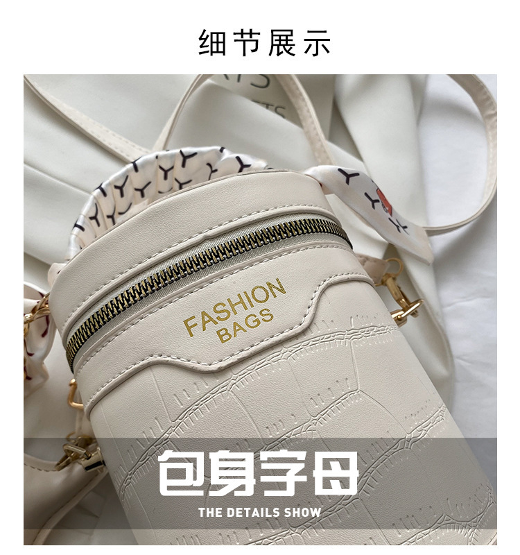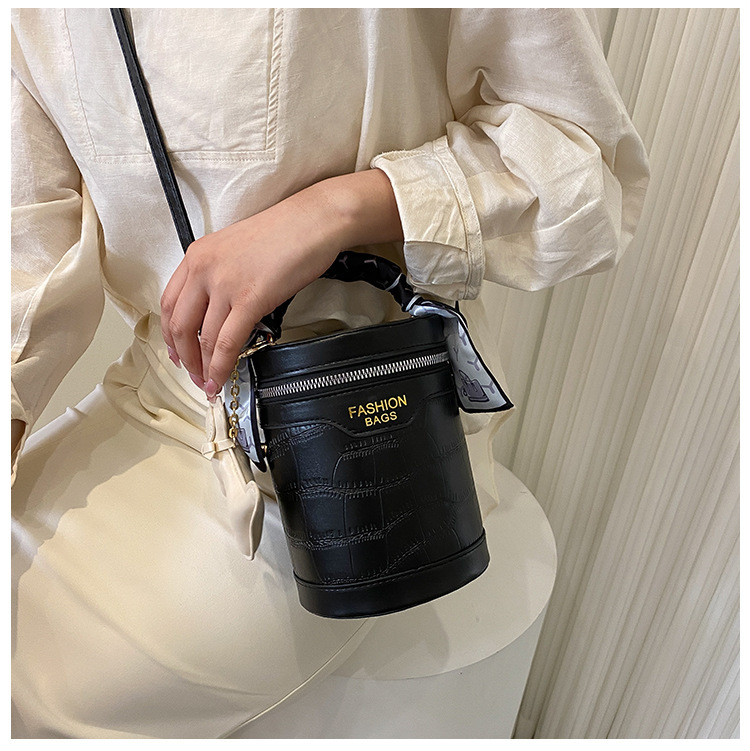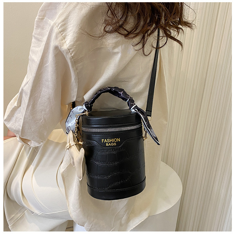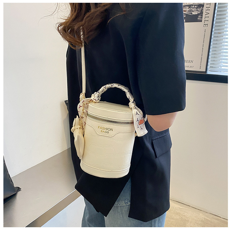 Bolso cilíndrico pequeño femenino 2022 nuevo patrón de cocodrilo moda simple bolso de mano personalizado coreano bufanda de seda bolso de mensajero