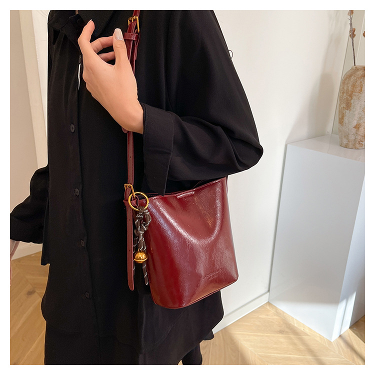 Bolso de balde de moda coreana para mujeres 2024 nuevo invierno ins retro versátil bolso de transporte de nicho bolso de viaje
