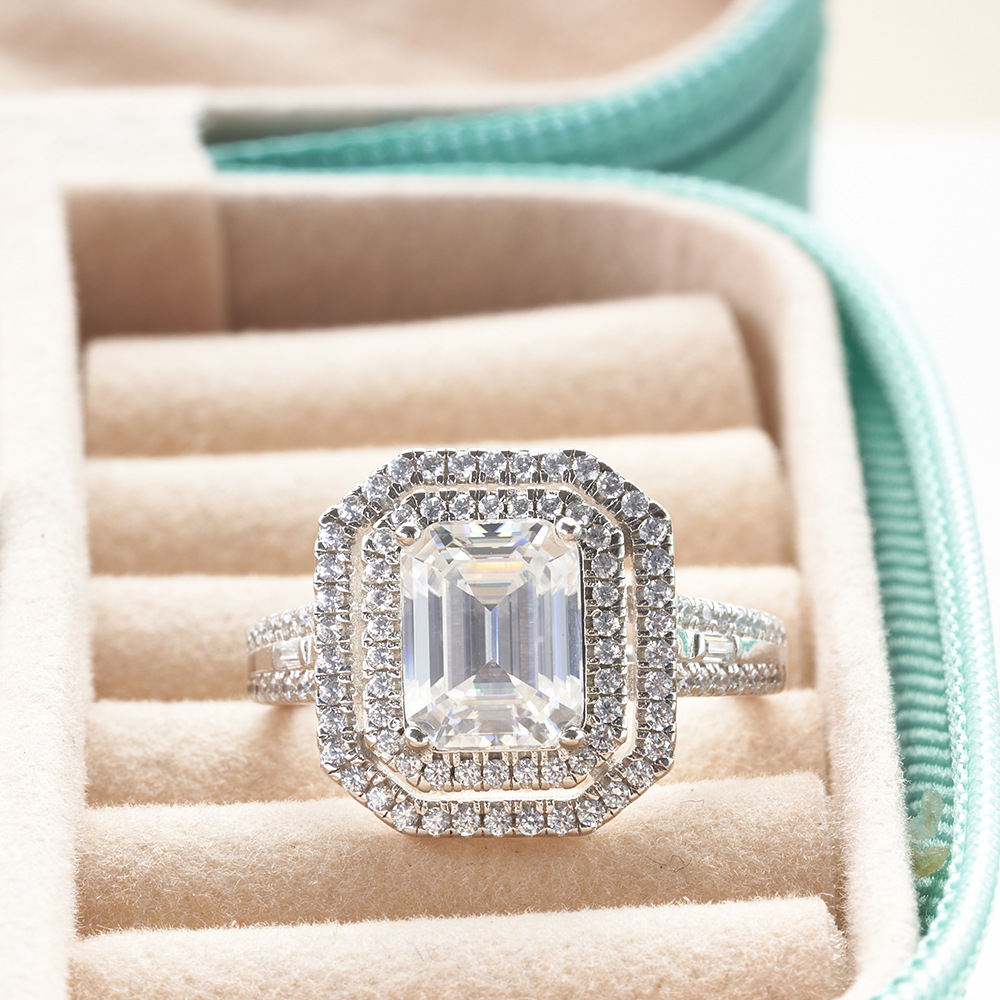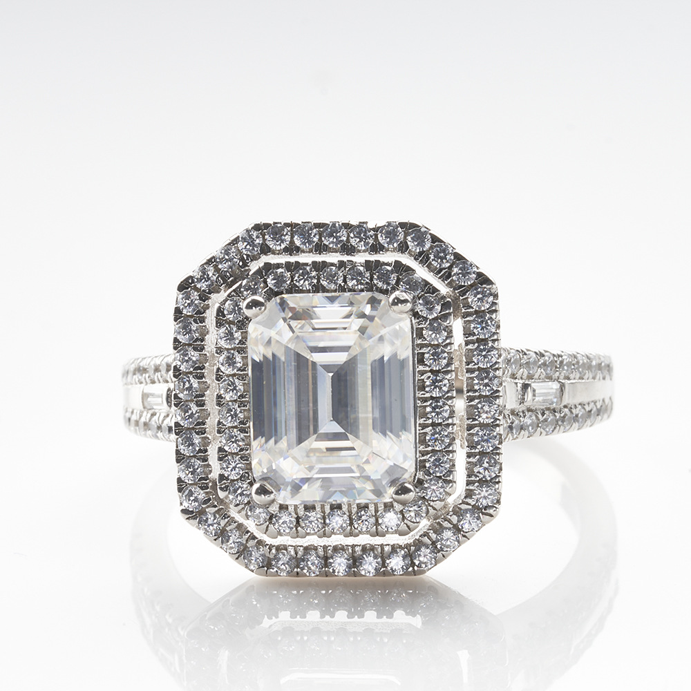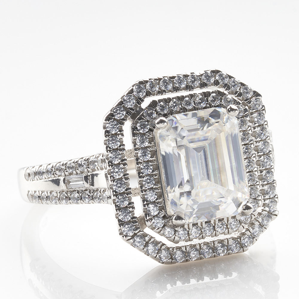 Europa y los Estados Unidos 3 quilates 7X9MM plata esterlina anillo de moissanita anillo de moissanita TK transmisión en vivo