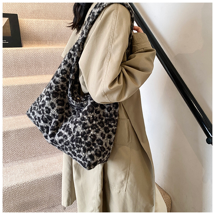 Bolsa de lana de gran capacidad para mujeres 2024 nuevo otoño e invierno casual bolso de hombro estriado multifuncional bolsa de viaje de clase