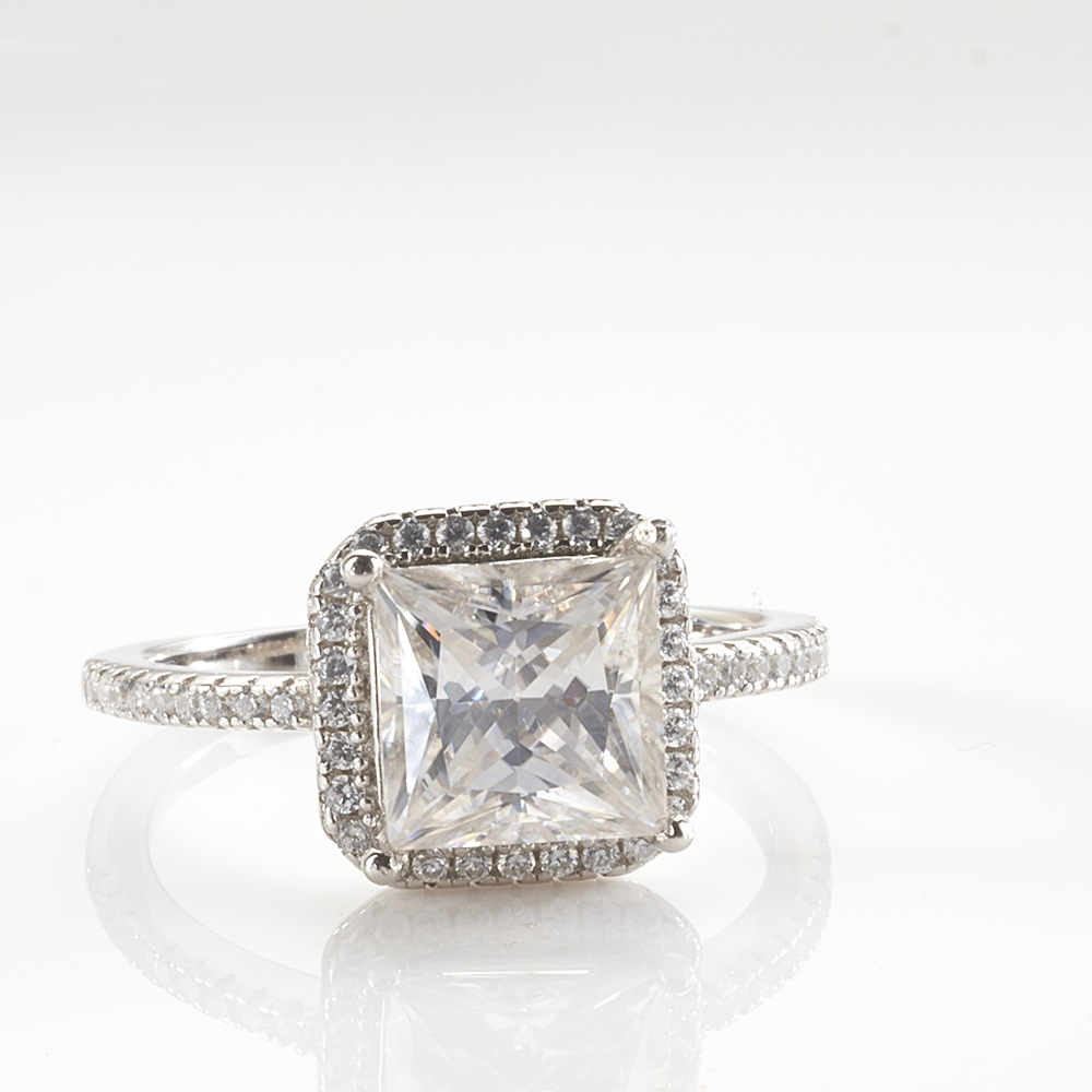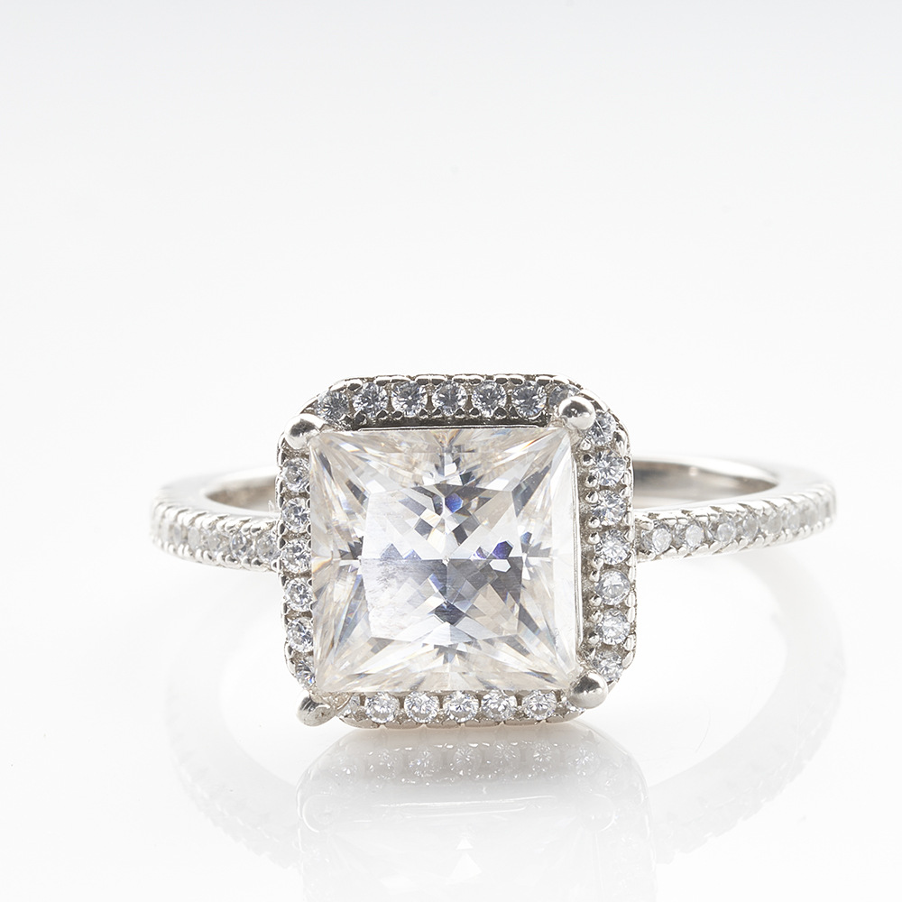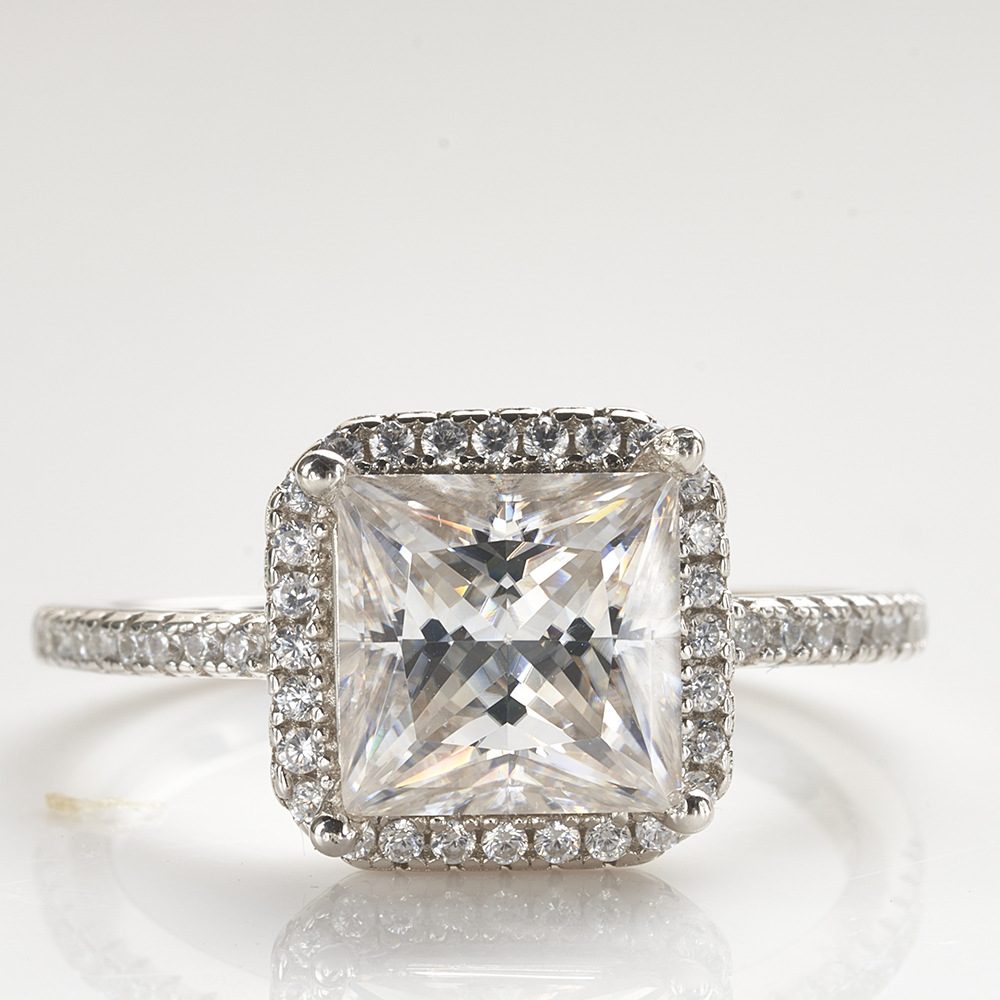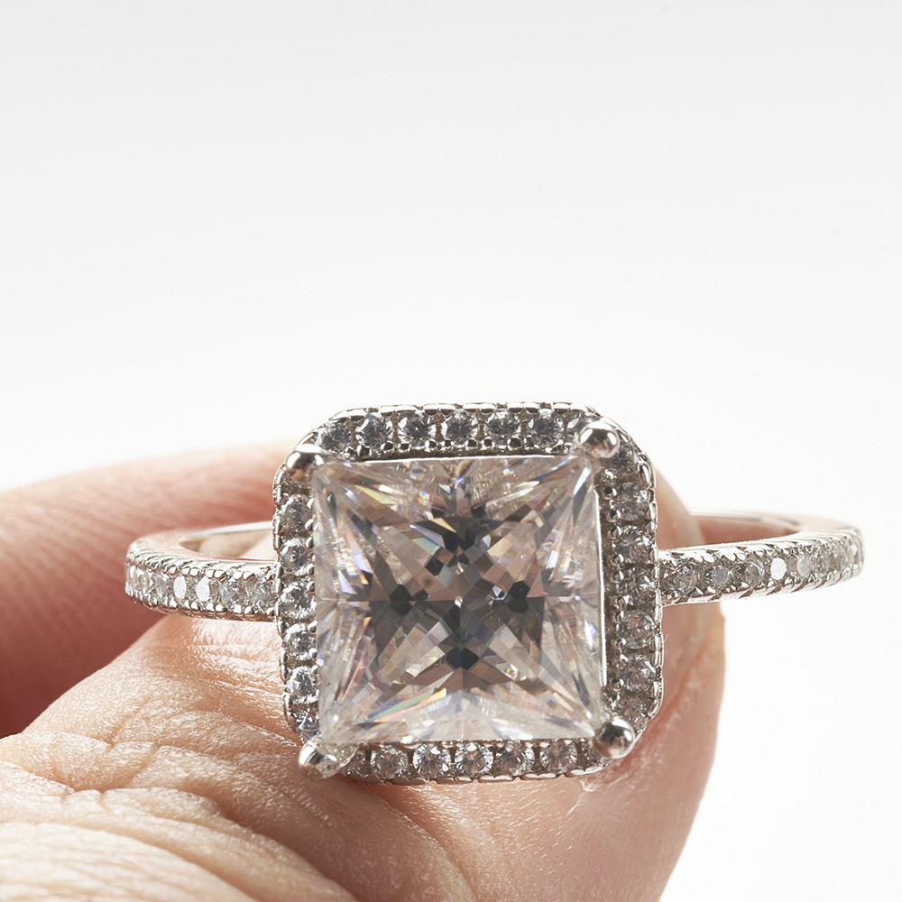 3 quilates princesa anillo de piedra de mosaico de plata esterlina 925 incrustado color D VVS3ex corte certificado de correa de mosaico transfronterizo