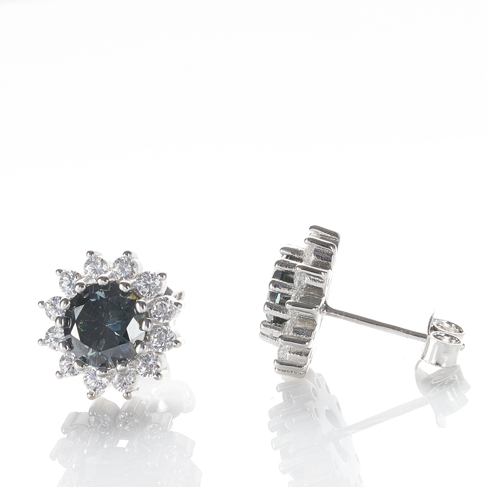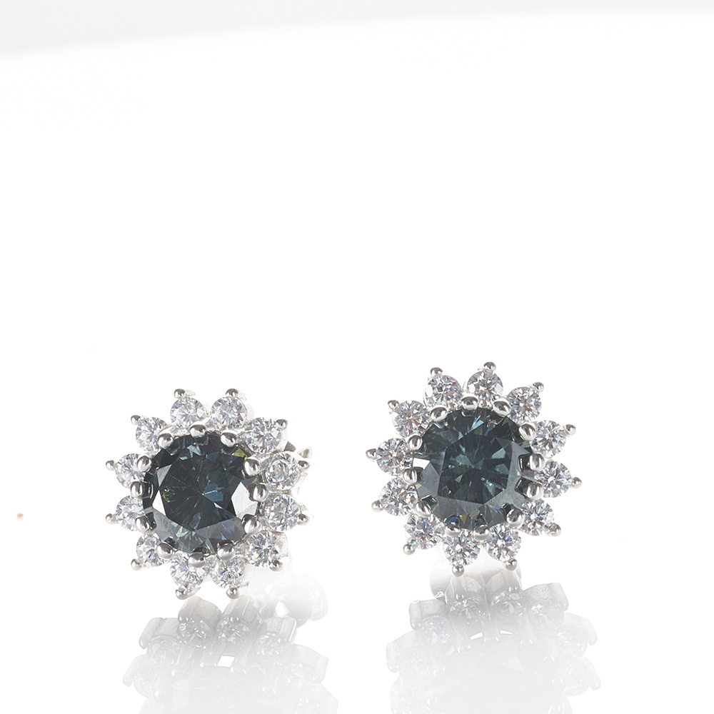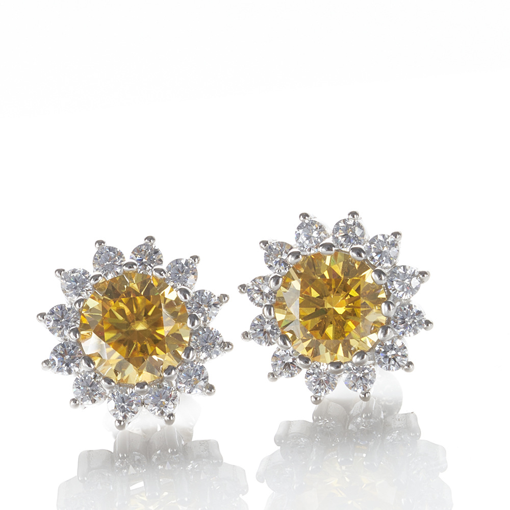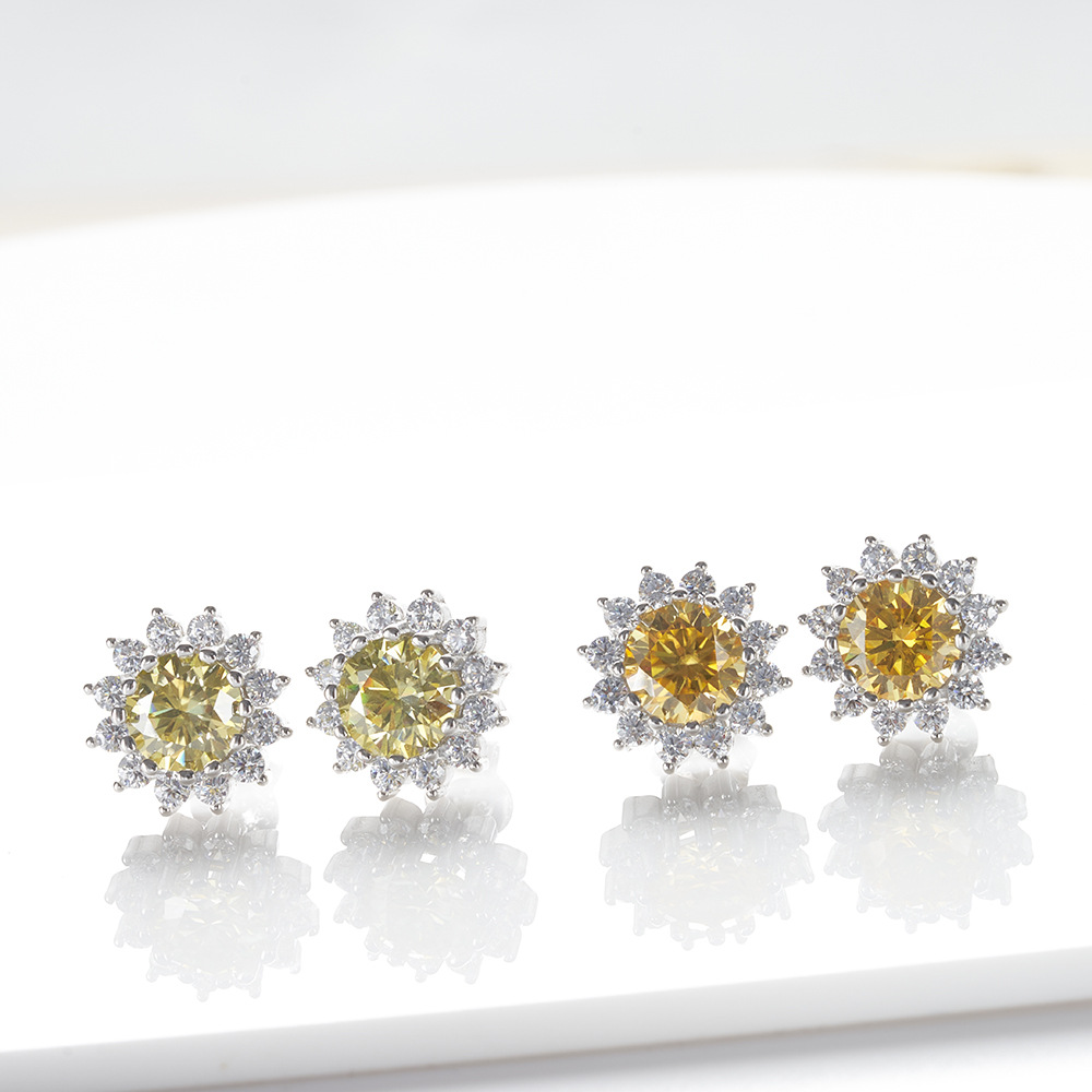 S925 plata esterlina diamante moissan pendientes 1 quilate 6.5mmX2 flores de sol redondas rosa color moissanita pendientes