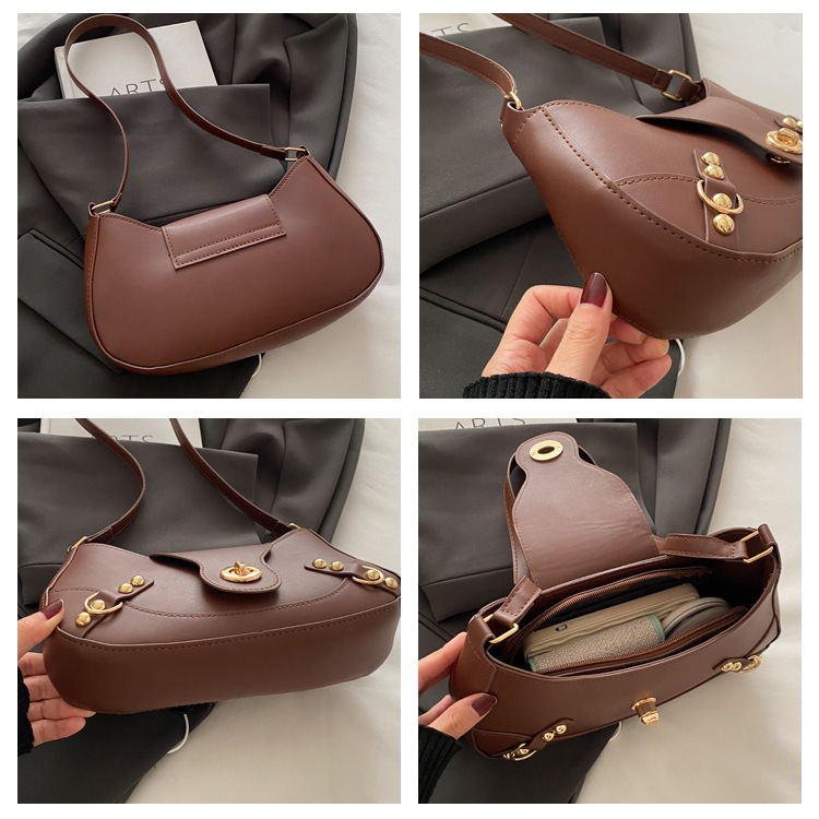 Bolsa de bolinillos retro chica caliente un hombro bolso de mochila para mujeres 2025 nuevo diseño locomotora de cierre de viento bolso de brazo