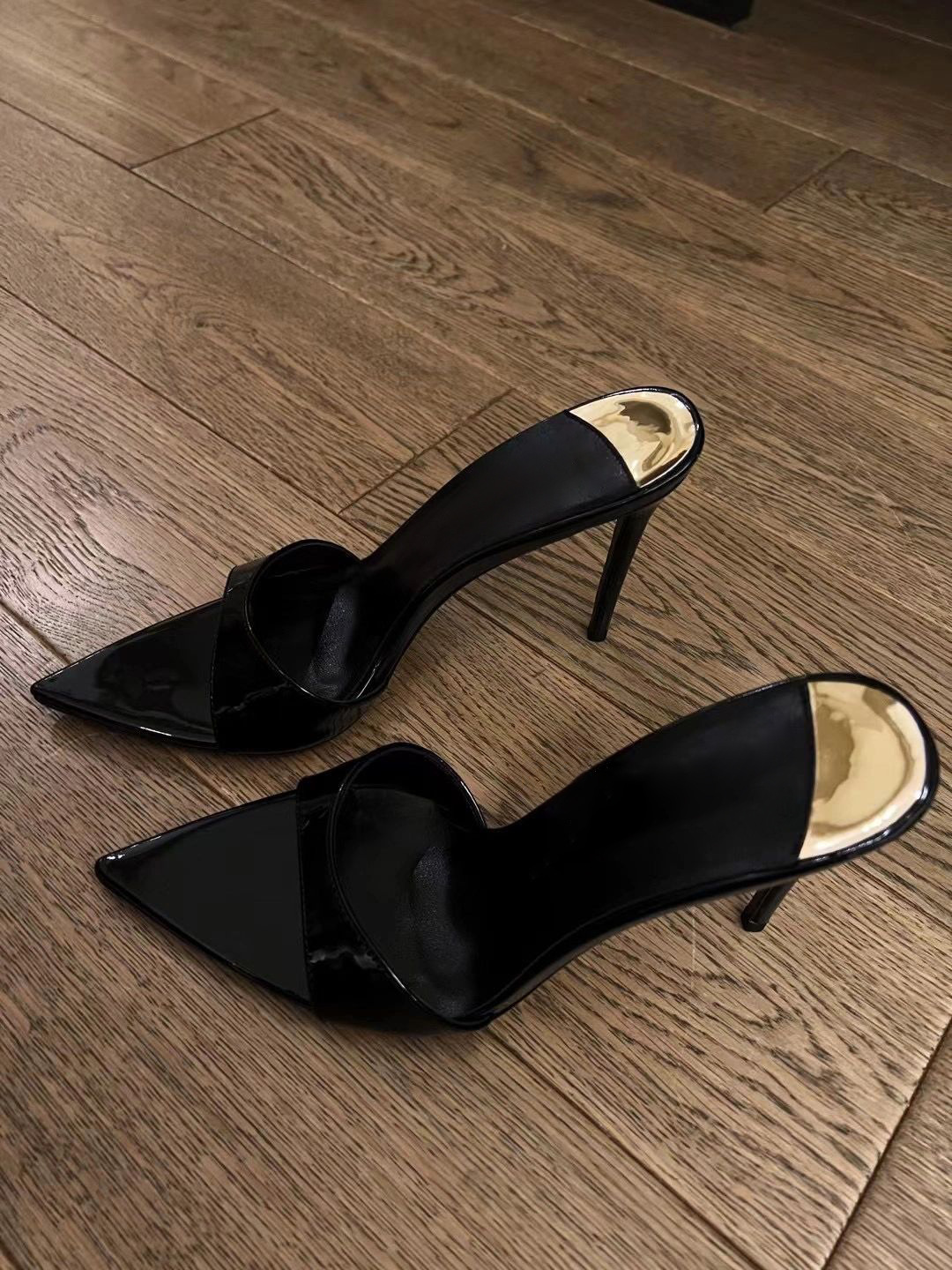 Versión de piel de vaca ~ Hermosos sandalias de tacón alto puntiagudas de cuero para mujer, tacones altos con boca de pez, sandalias de tacón alto