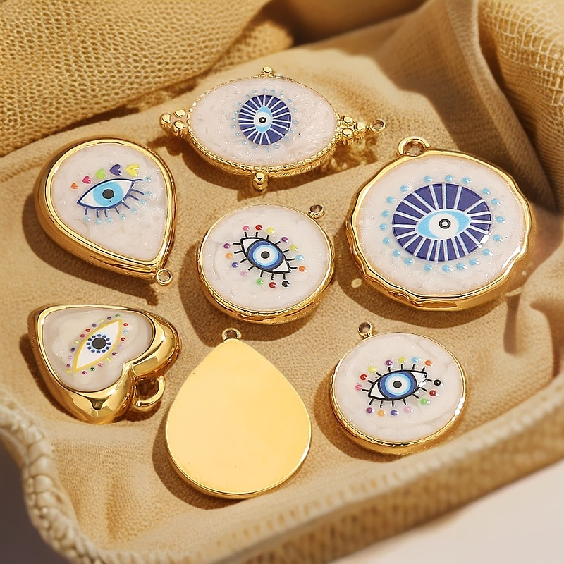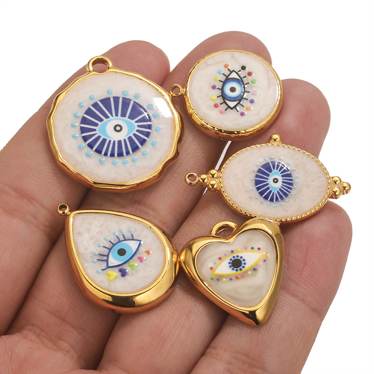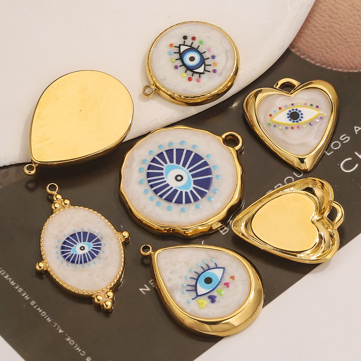 Acero inoxidable retro redondo colgante de ojos azules DIY goteo de aceite ojo del demonio pulsera collar llavero accesorios joyas