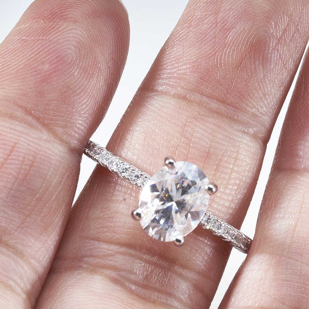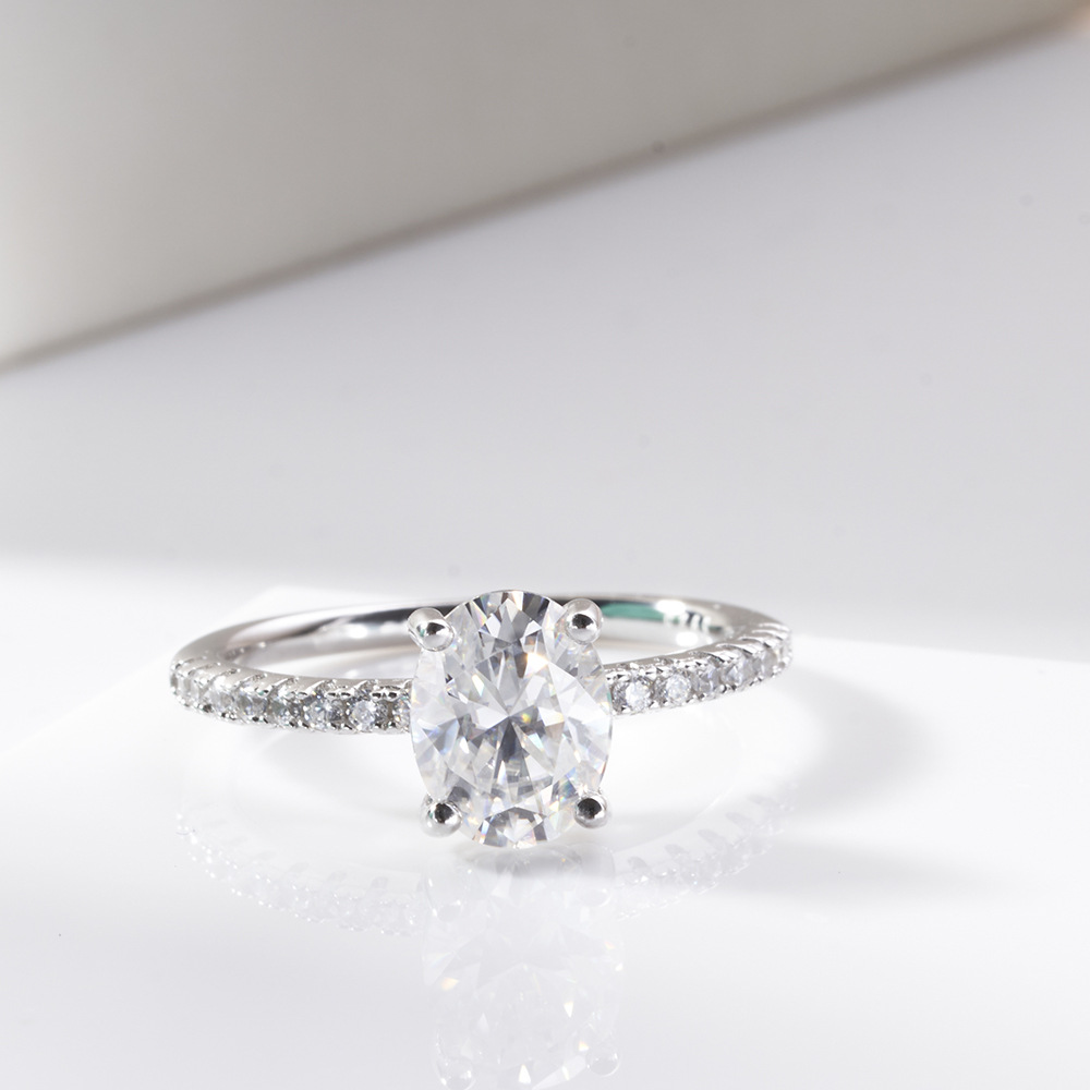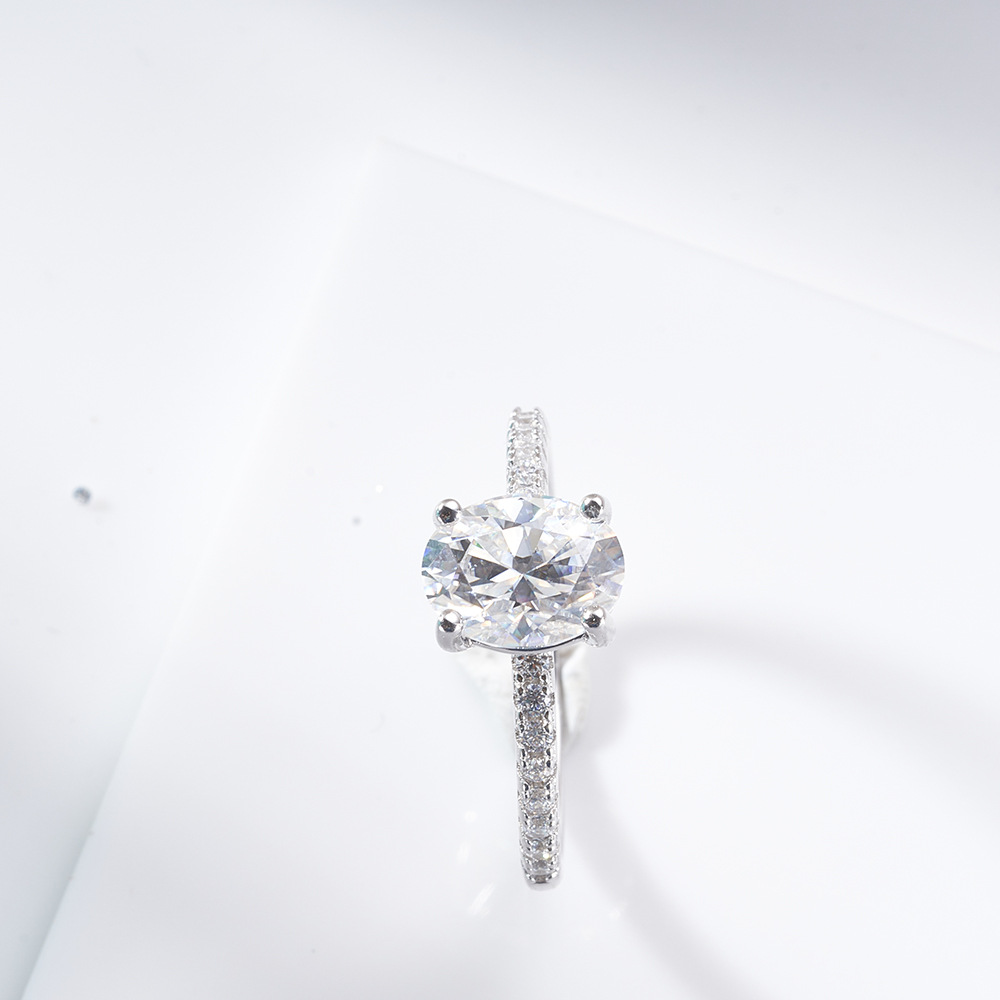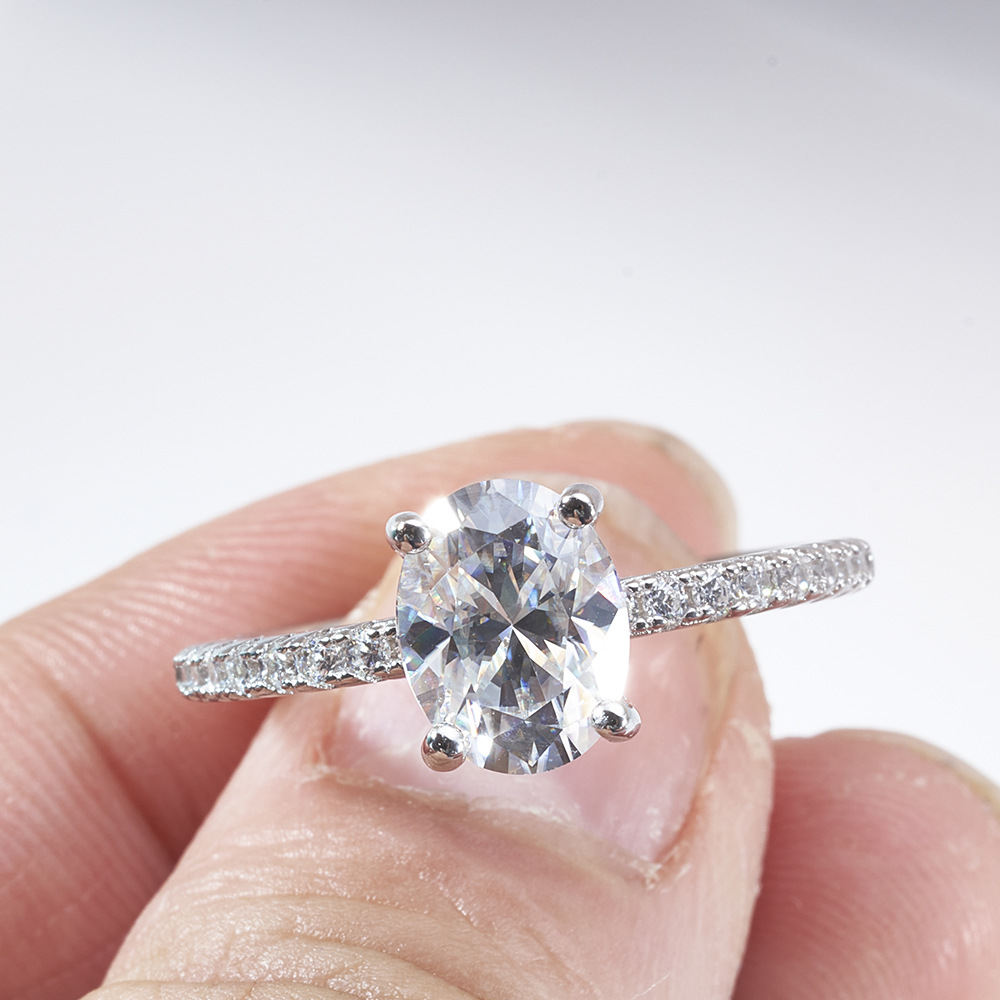 2 quilates de corte oval blanco D color VVS anillo de moissanita de forma especial con certificado de penetración transfronteriza