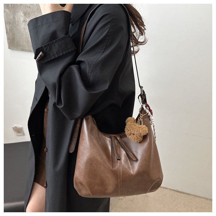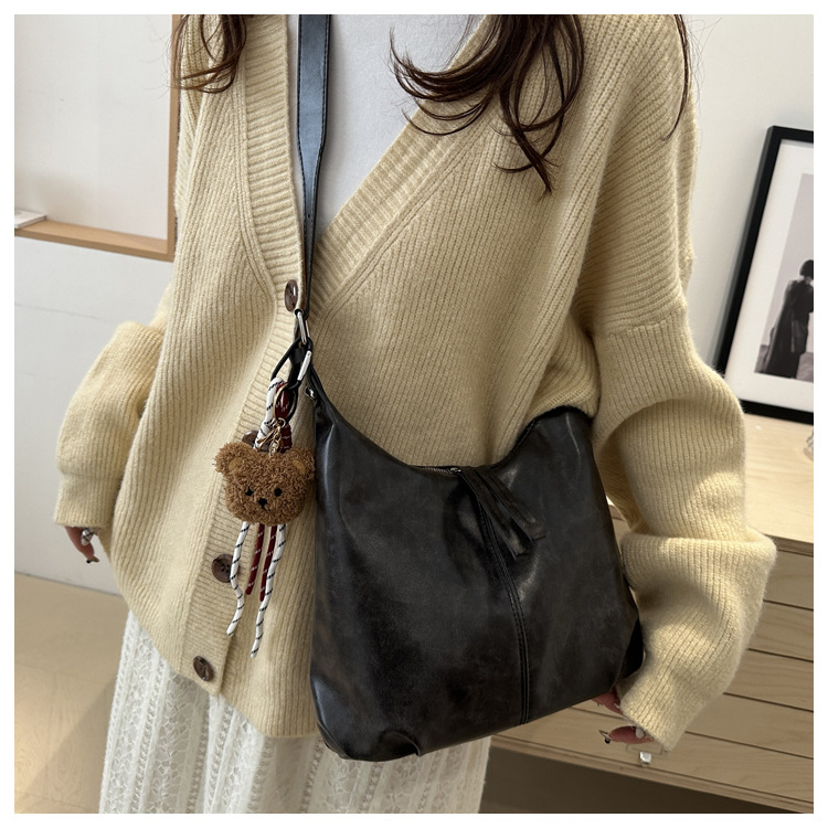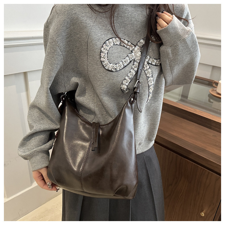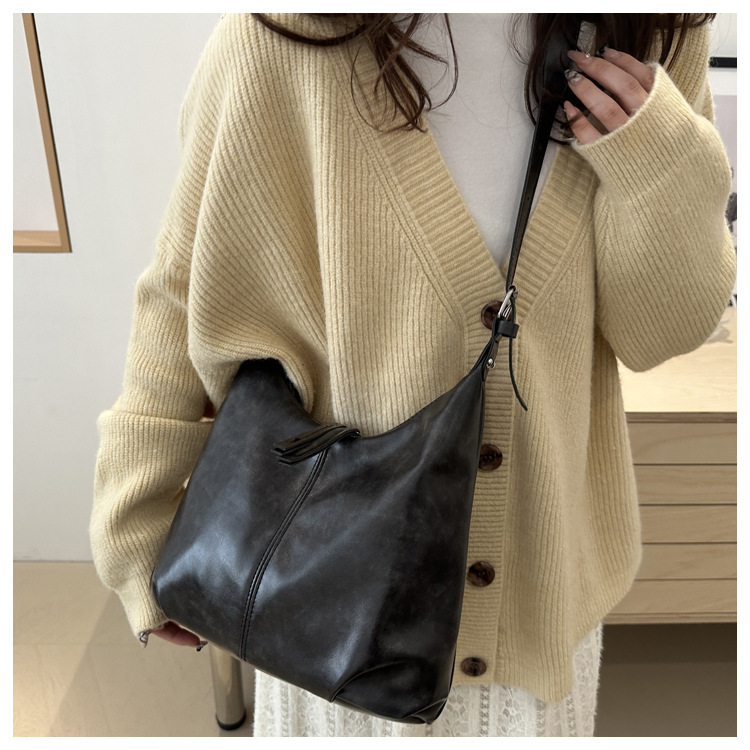 Coreano ancho cinturón de hombro bolso de mujer 2024 nueva gran capacidad retro versátil bolso de hombro bolso de viaje