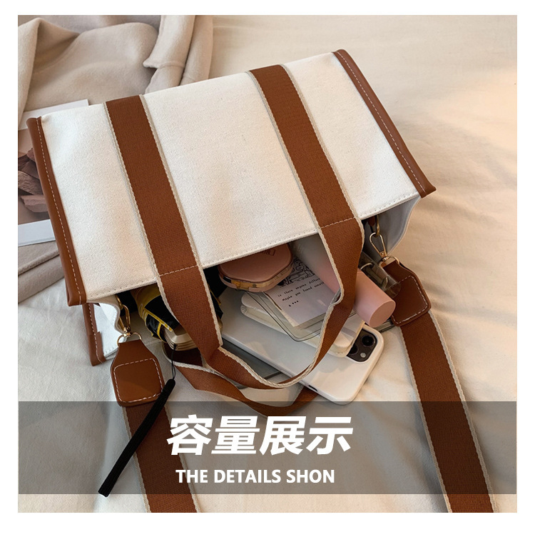 2024 verano nuevo bolso de lona de moda versión coreana ins bolso de gran capacidad mensajero de un solo hombro para mujer