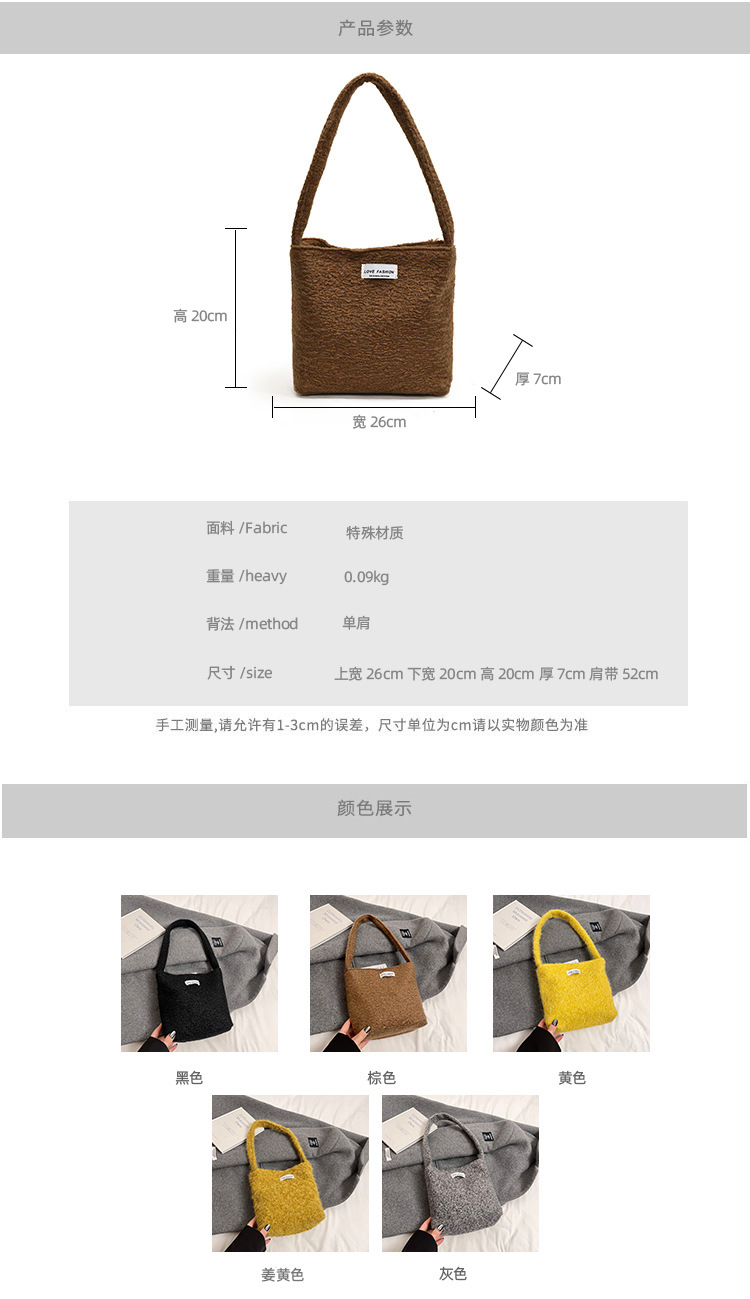 Invierno lana coreana 2024 nueva moda alta sensación de lujo ligero bolso brazo bolso de hombro bolso de mujer