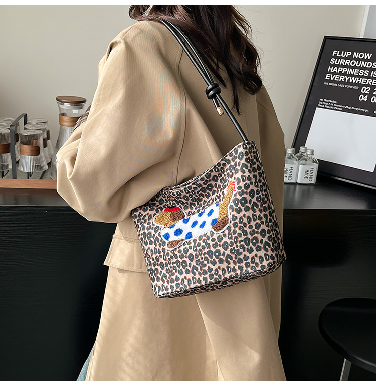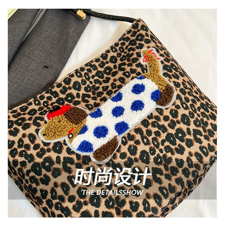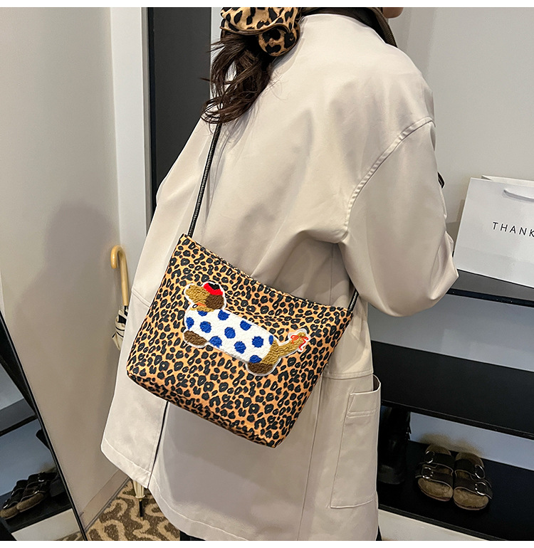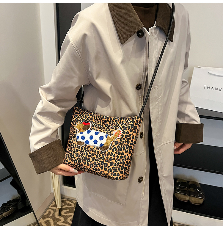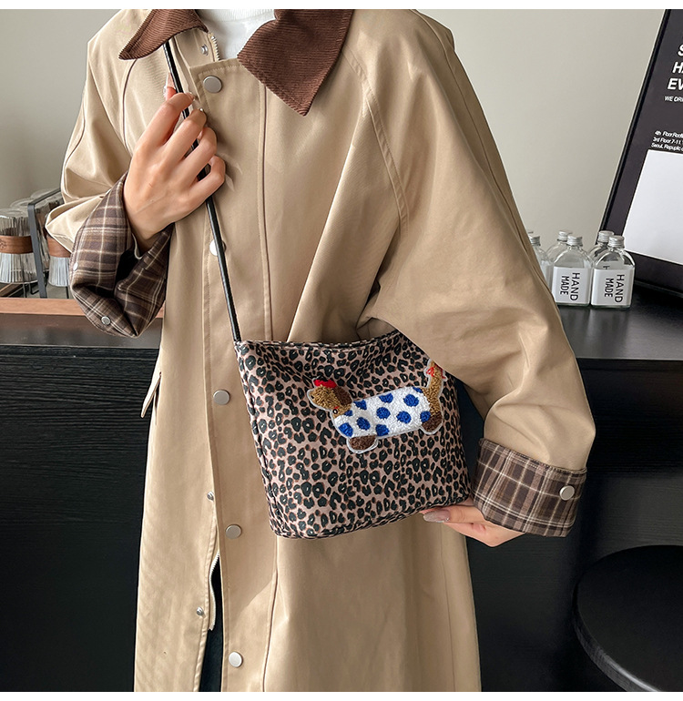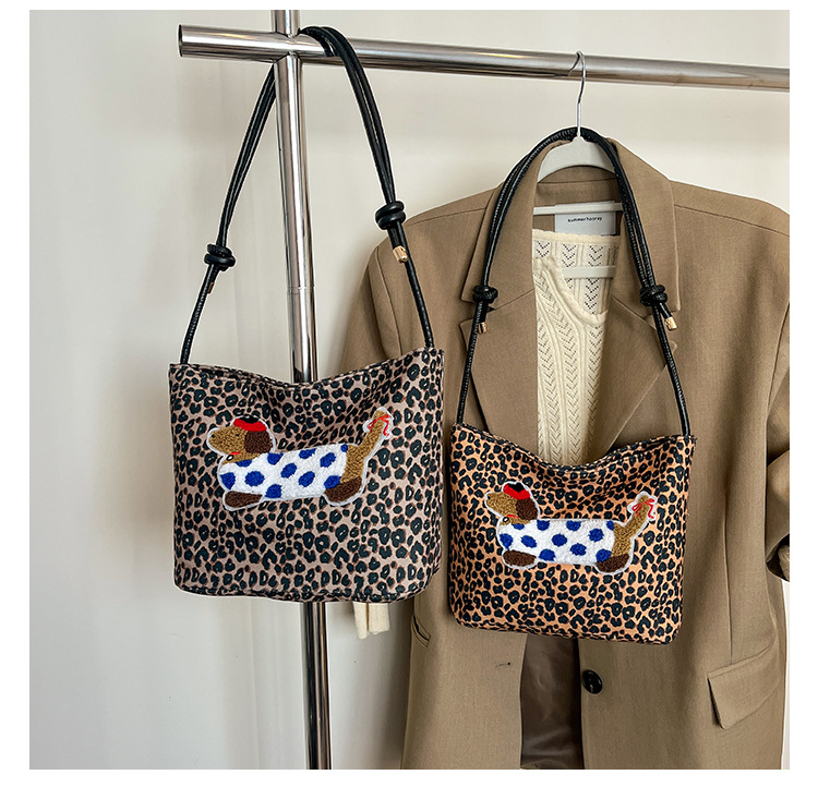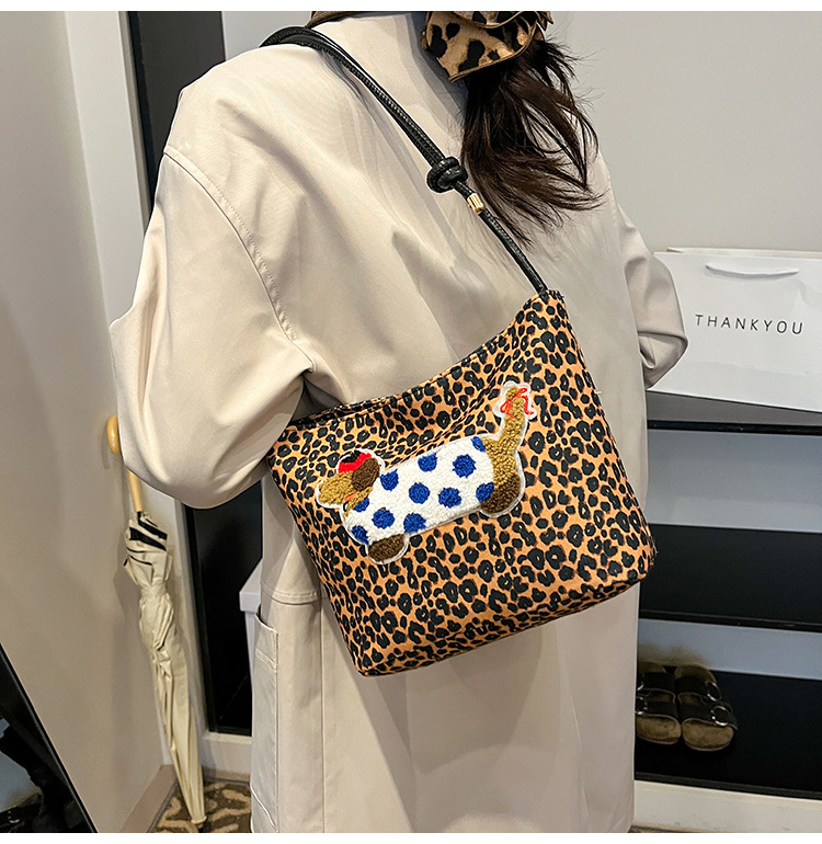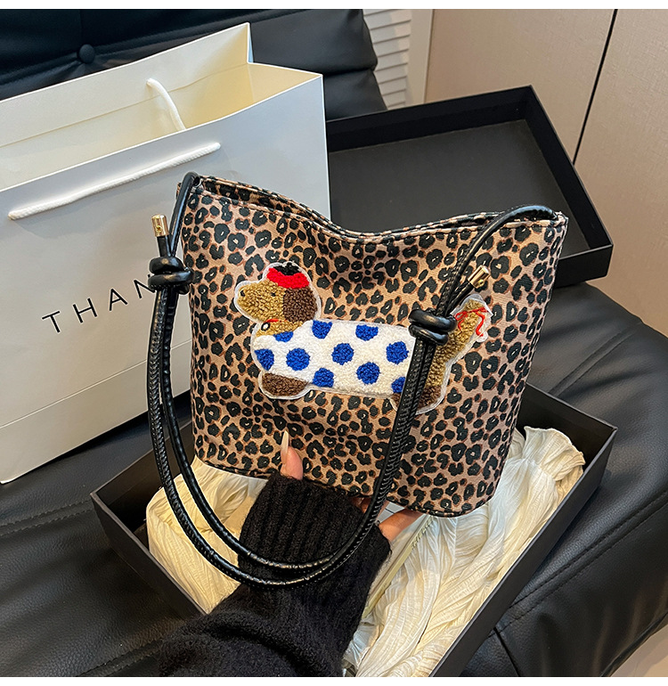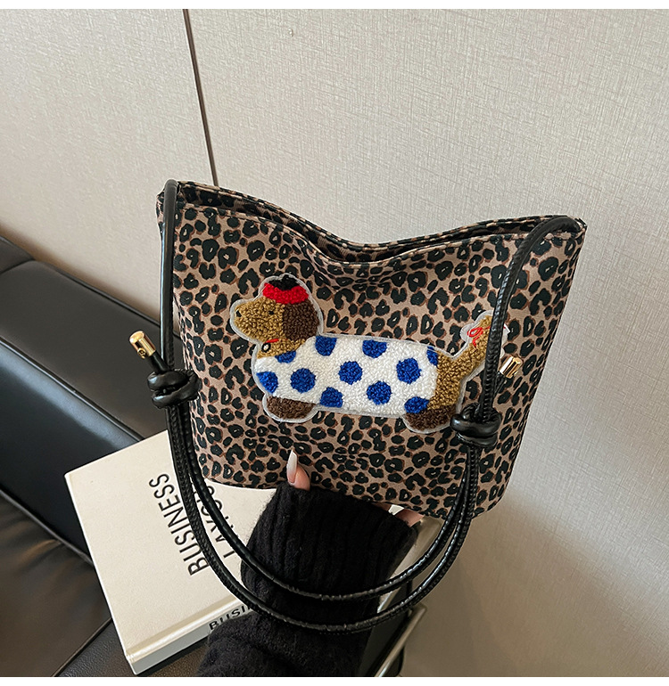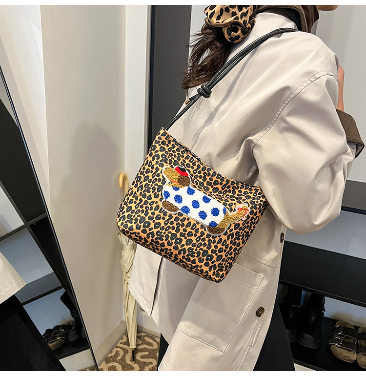 Leopardo salchicha bolsa de perro mujer 2024 otoño invierno nuevo hombro brazo bolso de diseño sensación retro bolso de balde de agua