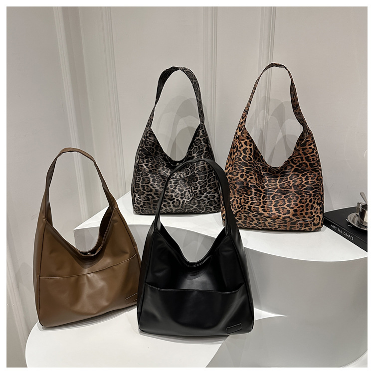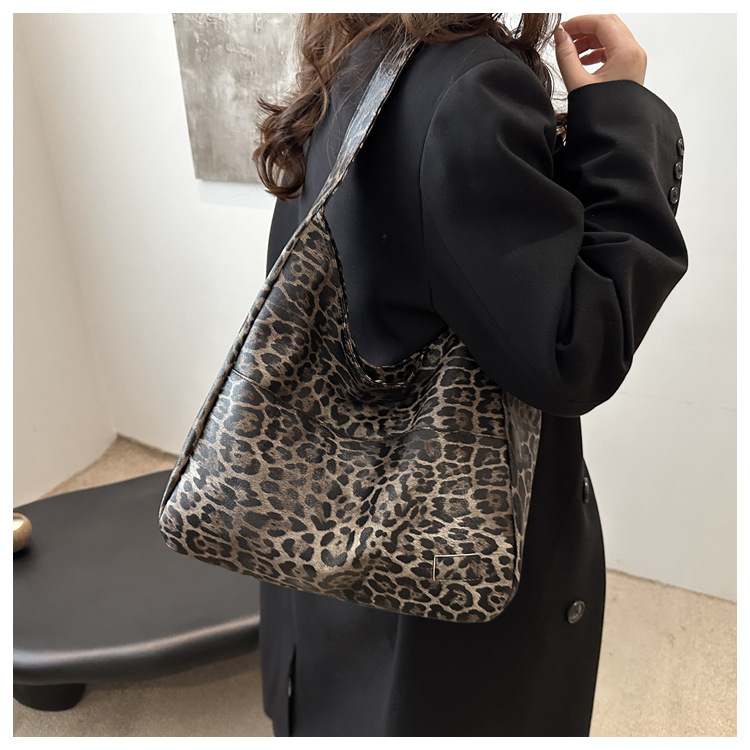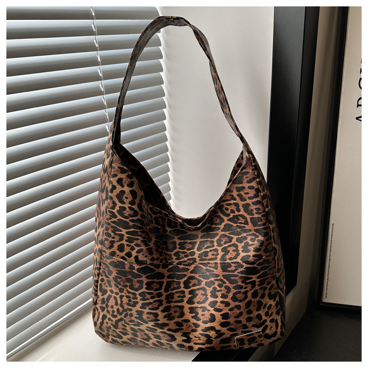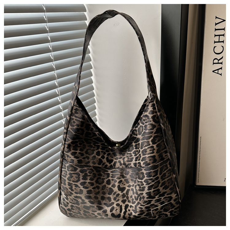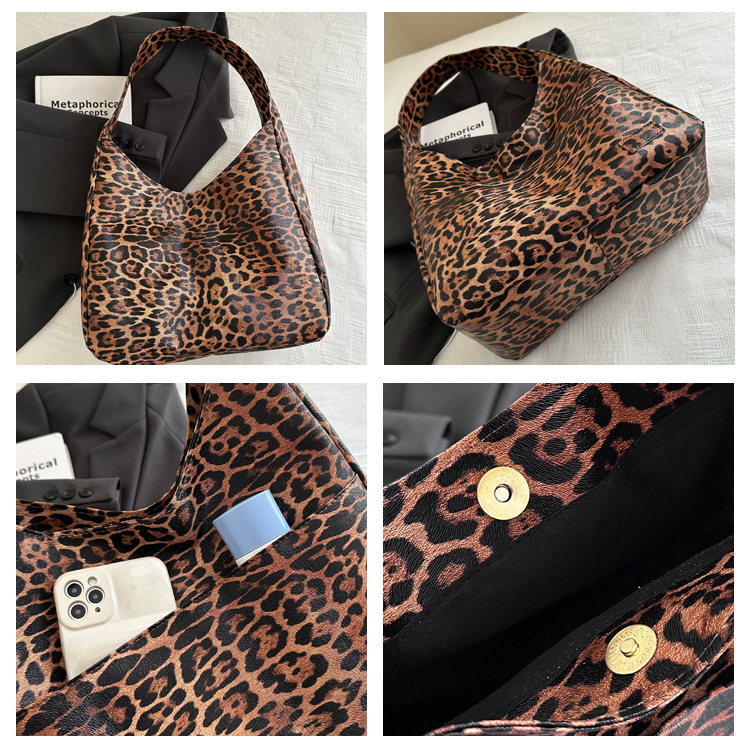 2024 nuevo estilo de moda extranjero estampado leopardo de gran capacidad bolsa de tote personalidad casual perezosa estilo de hombro bolso axilar