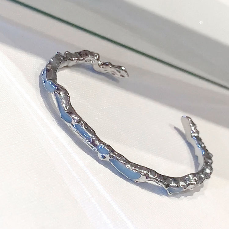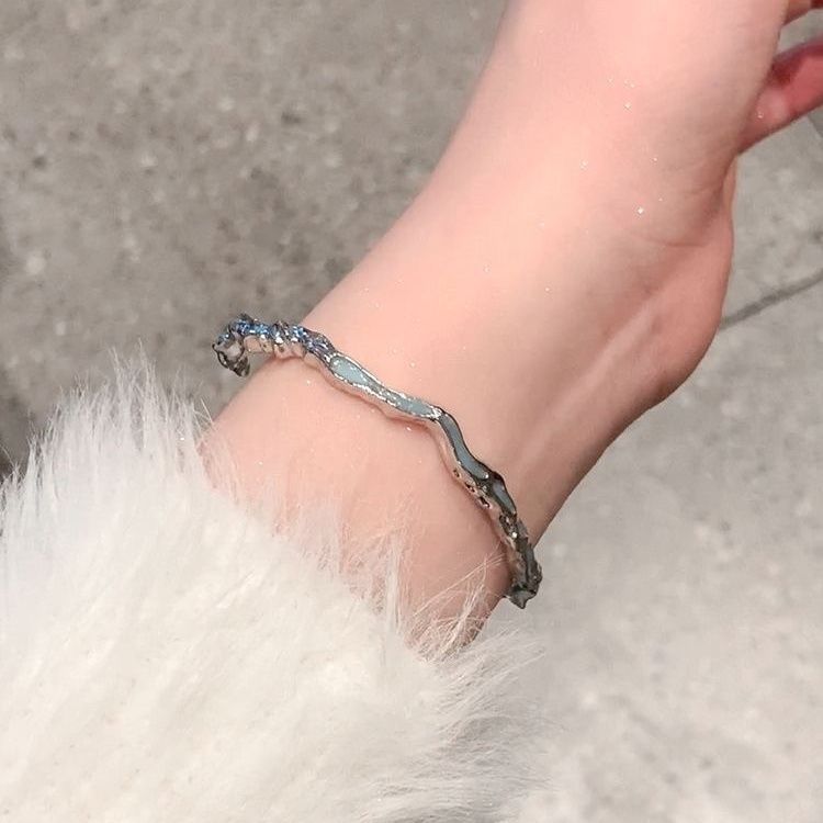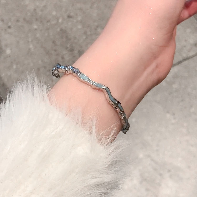 "Oceano azul de hielo" pulsera azul ondas irregulares pulsera anillo de diseño ligero lujoso nicho regalo de joyas