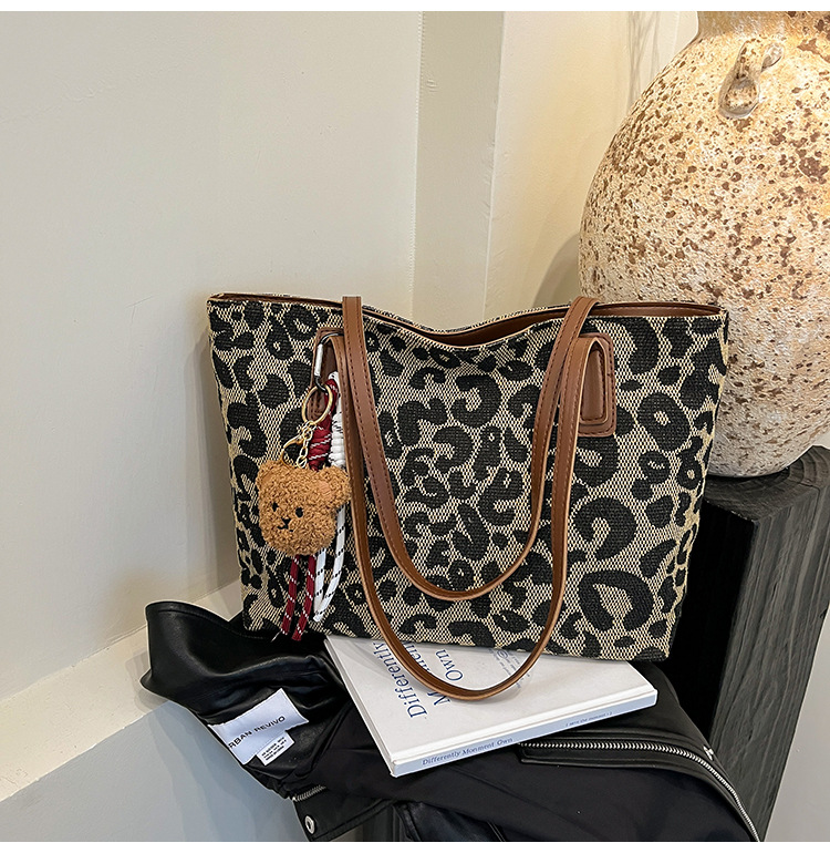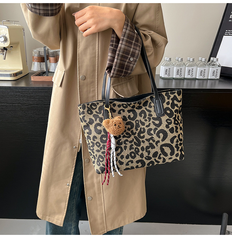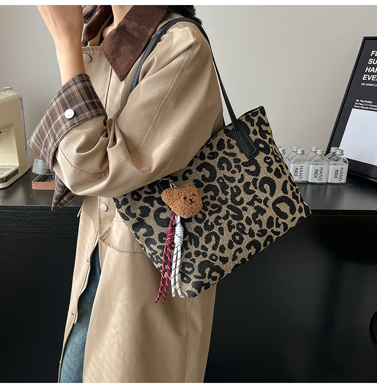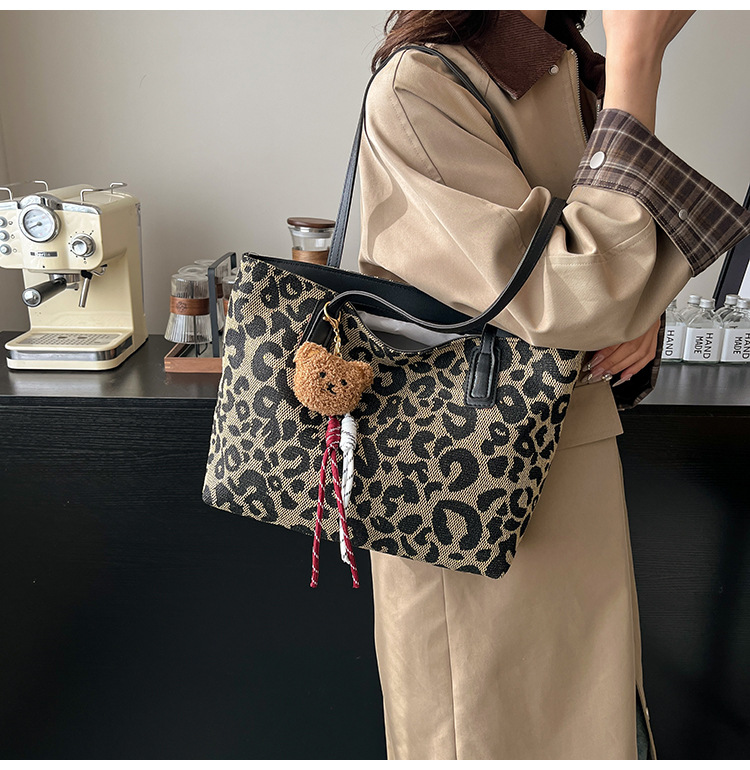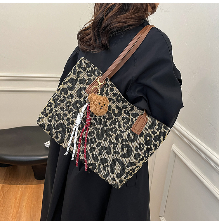 Este año popular bolsa de invierno de gran capacidad para mujeres 2024 nuevo nicho de leopardo bolso de hombro portátil