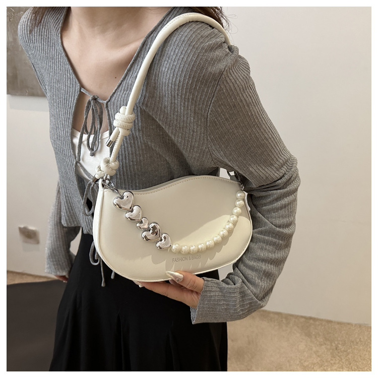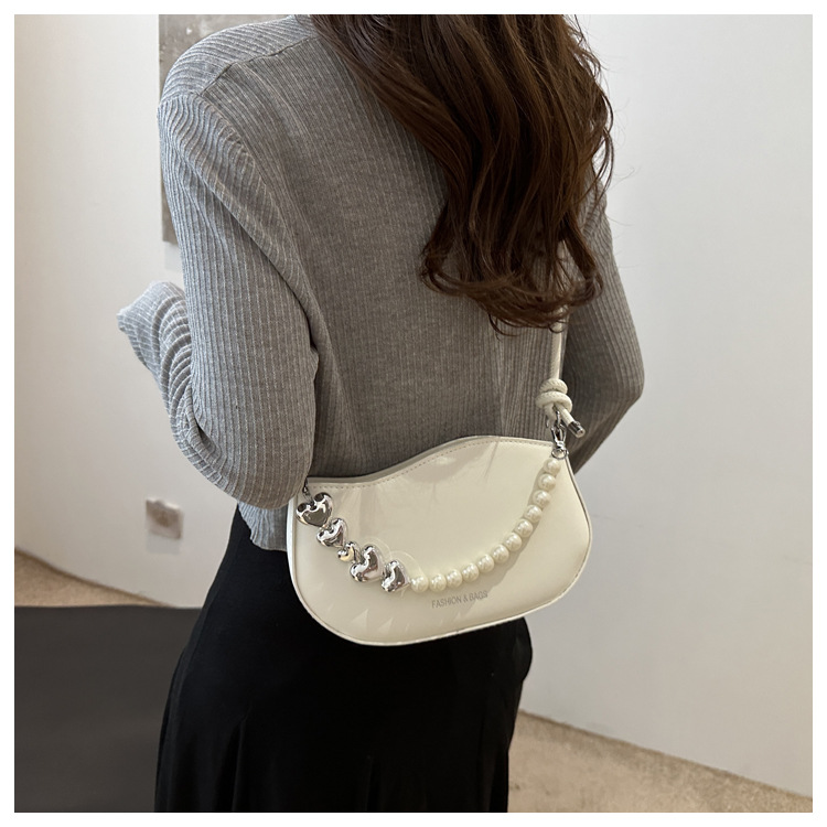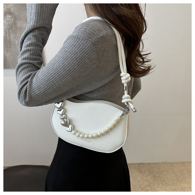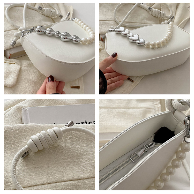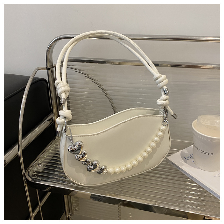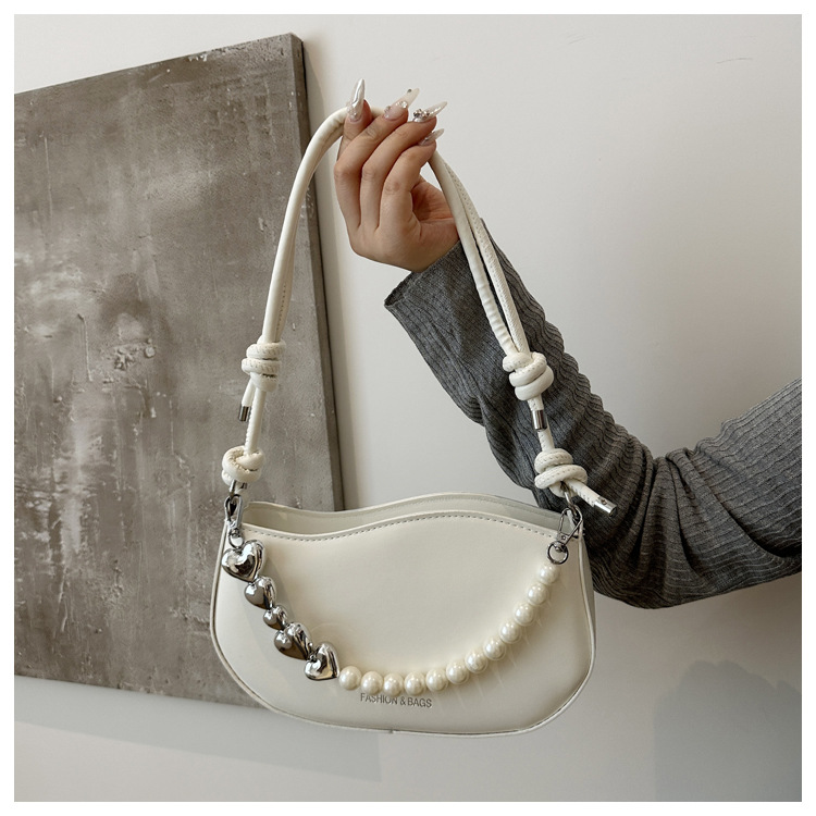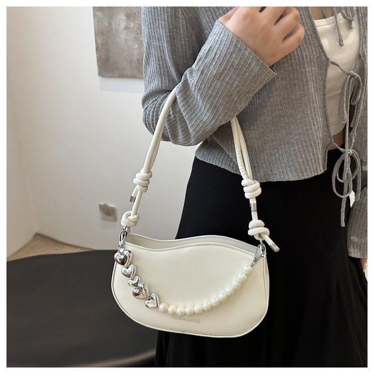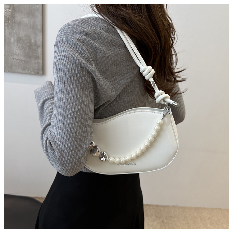 Tendencia de este año 2024 nueva tendencia de perla de viaje de hombro simple moda europea y americana bolso de mano para mujeres