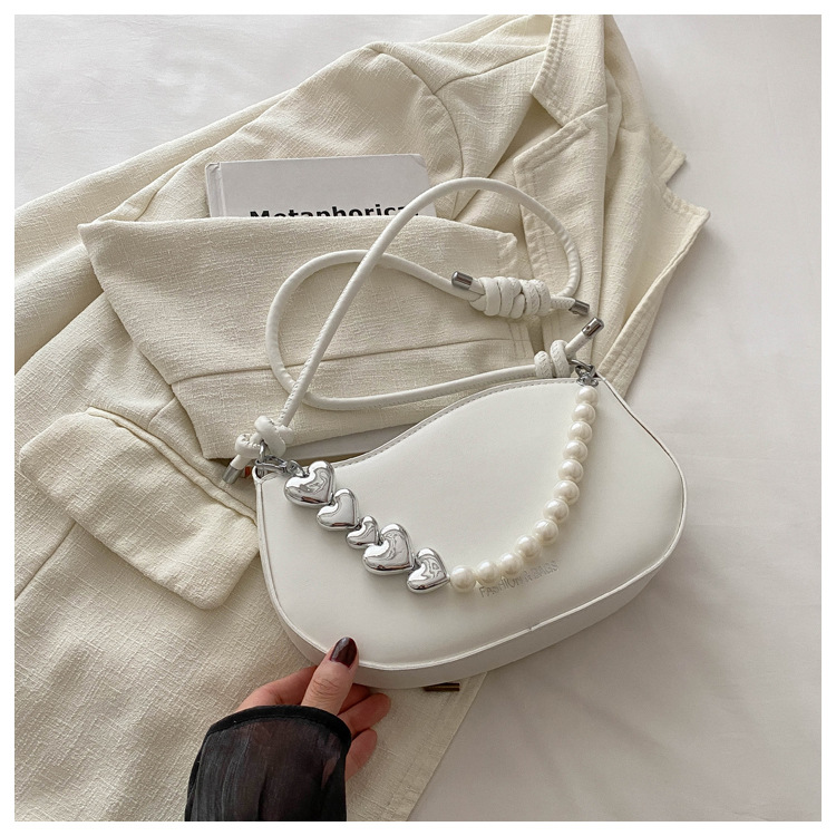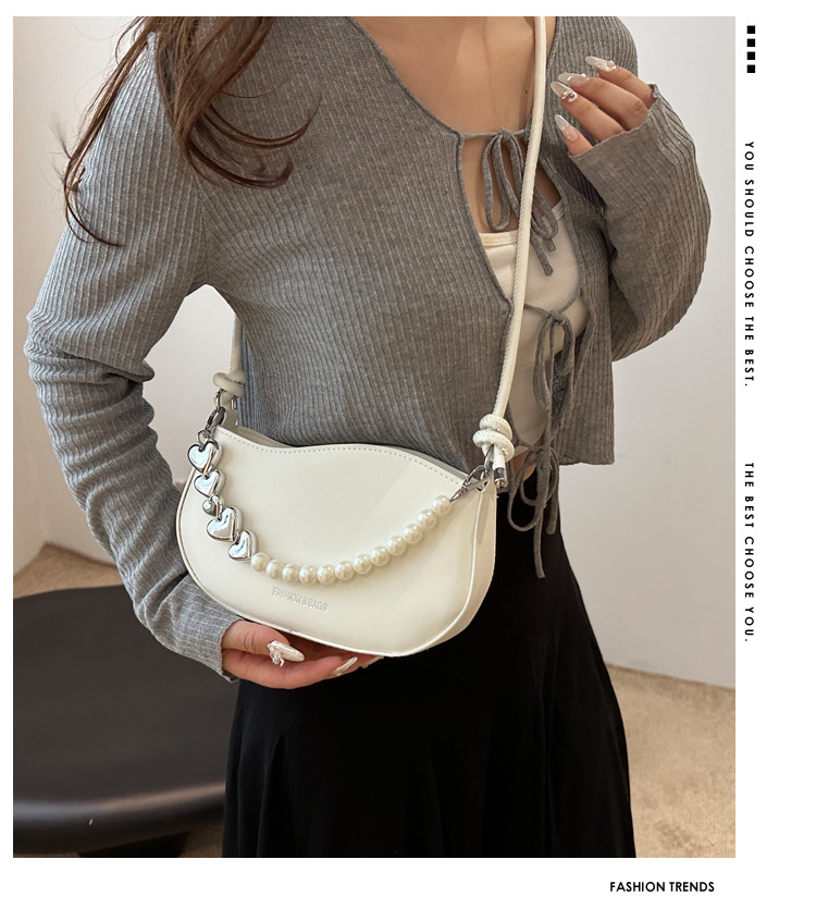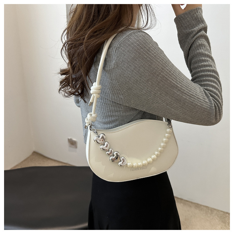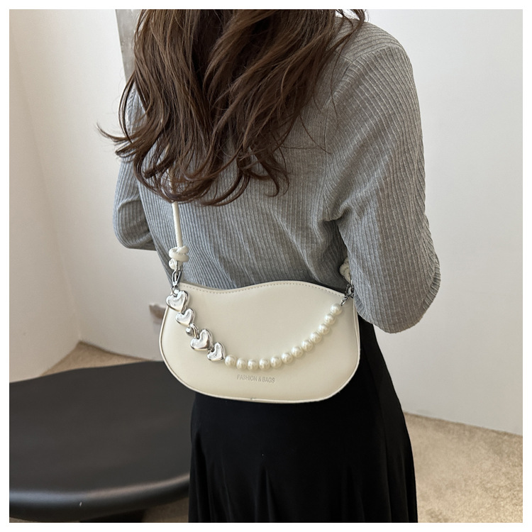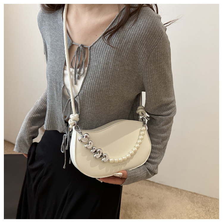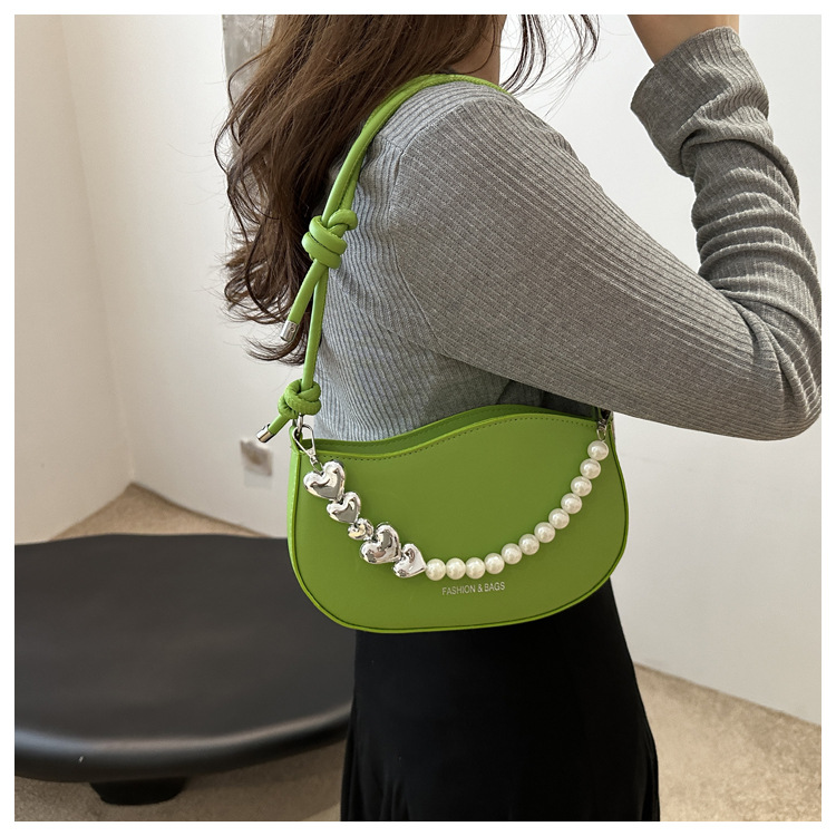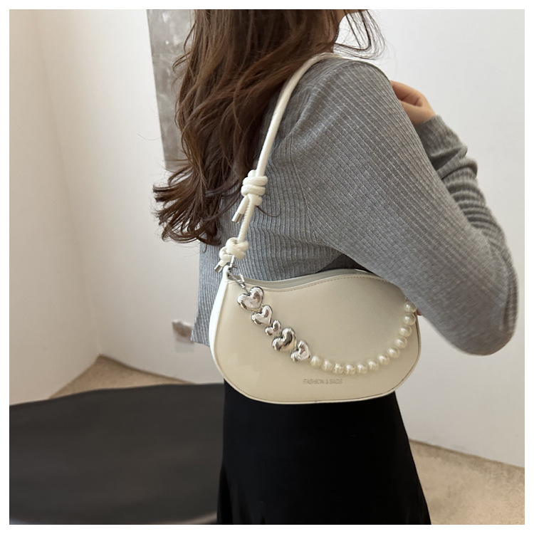 Tendencia de este año 2024 nueva tendencia de perla de viaje de hombro simple moda europea y americana bolso de mano para mujeres