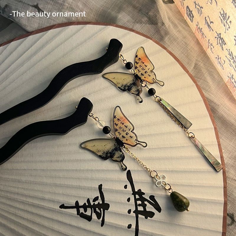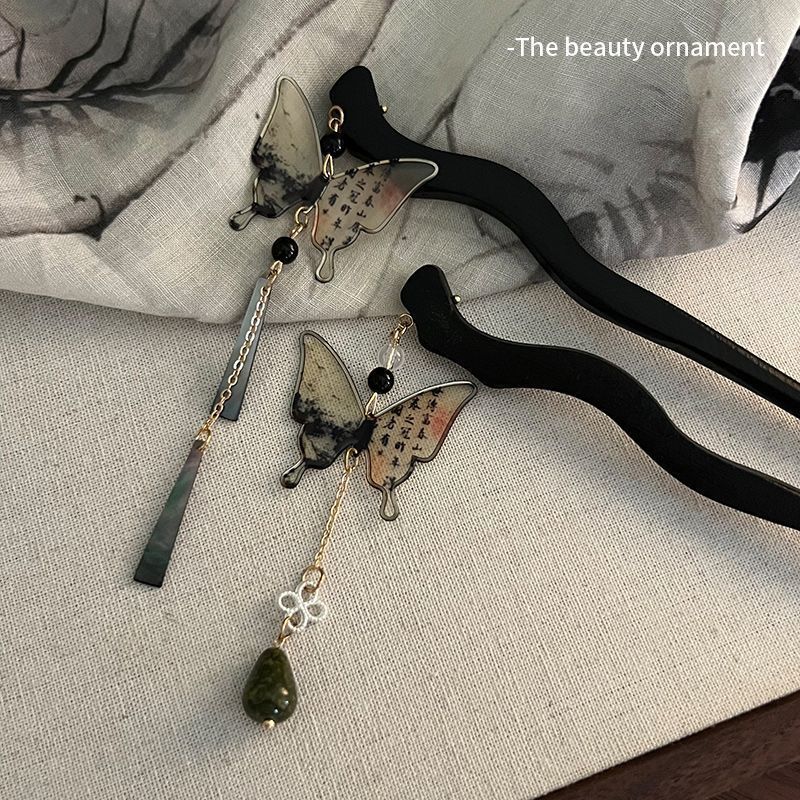 Nueva caligrafía china mariposa borla horquilla femenina estilo antiguo Tenedor de cabello Cabeza trasera updo horquilla de cabello estilo nacional horquilla de cabello accesorios de cabeza