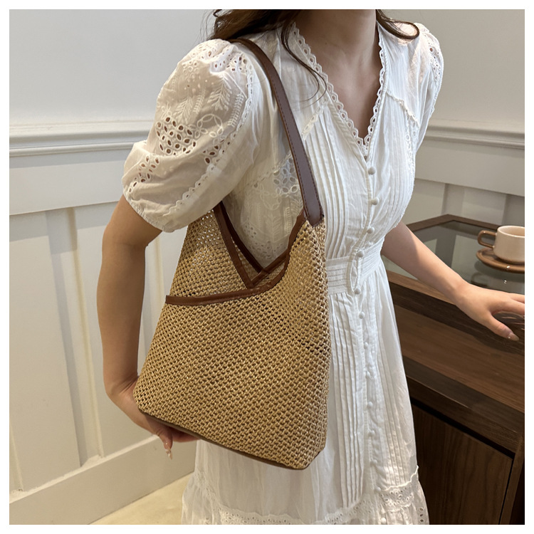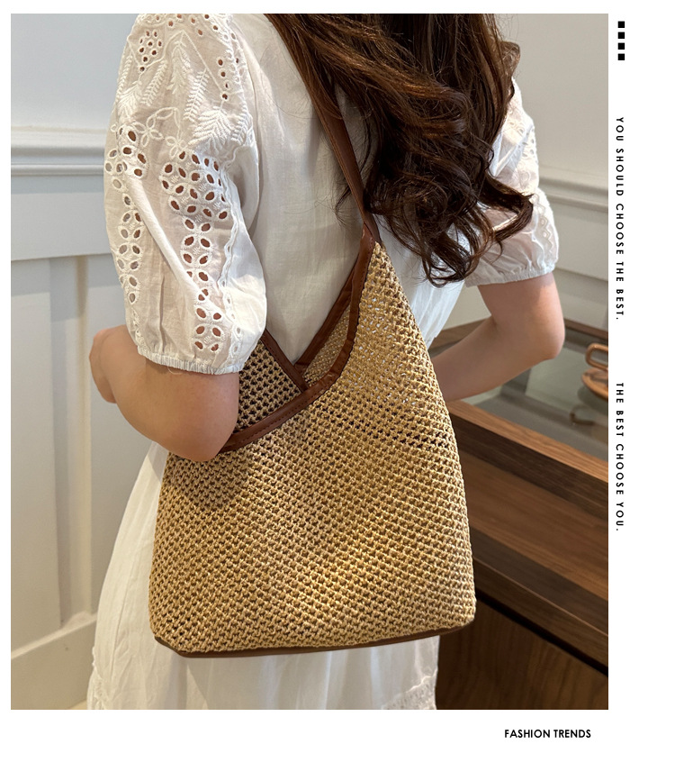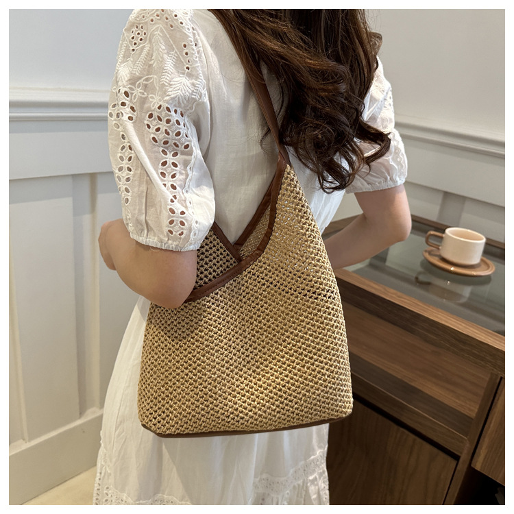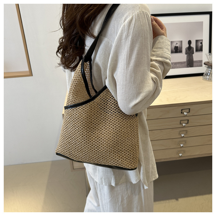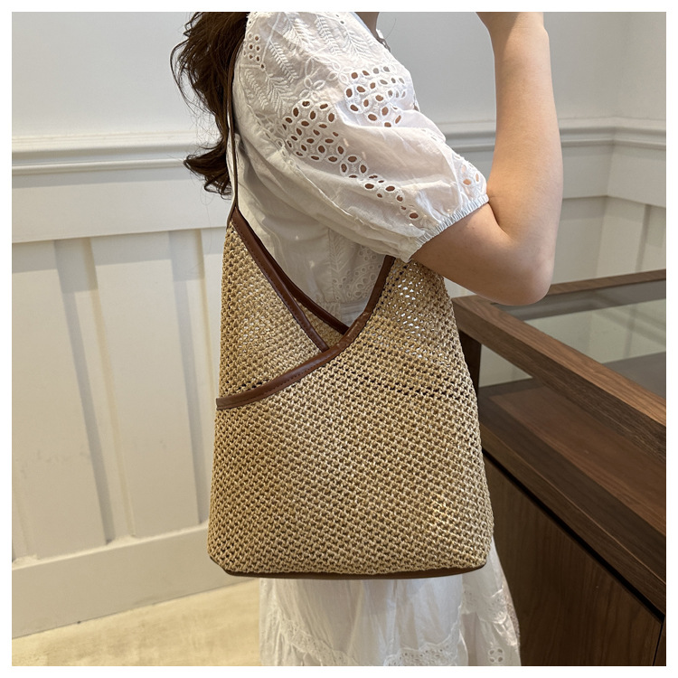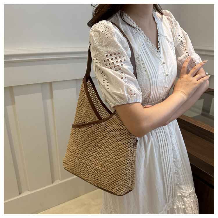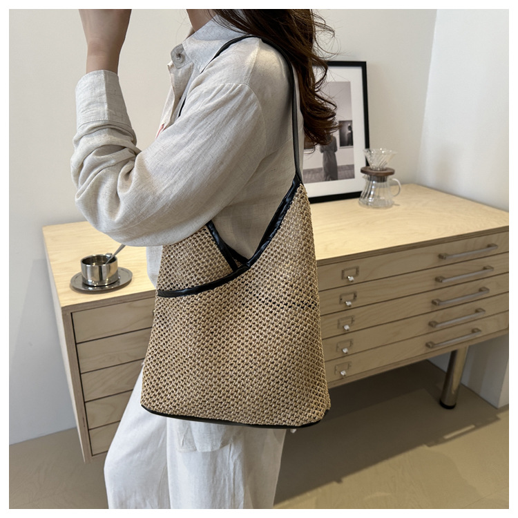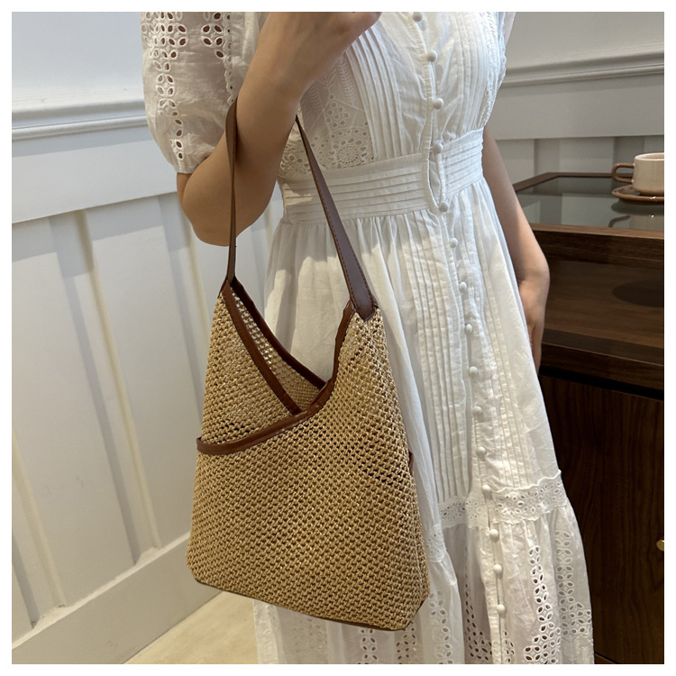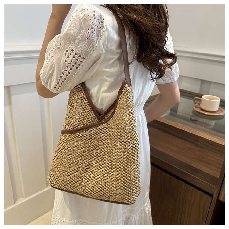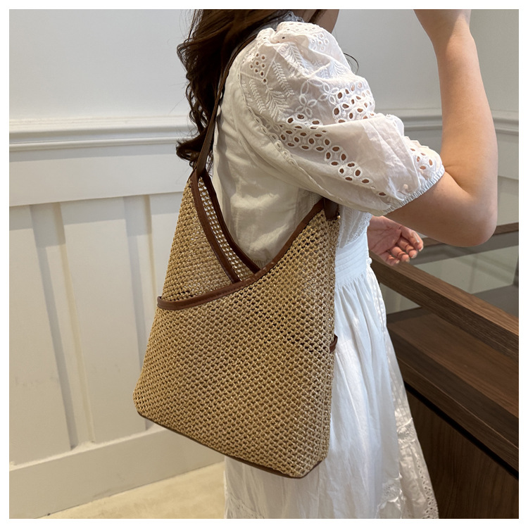 Bolsas de tejido a mano para mujeres 2024 nueva moda retro bolsas de balde de moda vacaciones bolsas de paja de moda bolsas de hombro