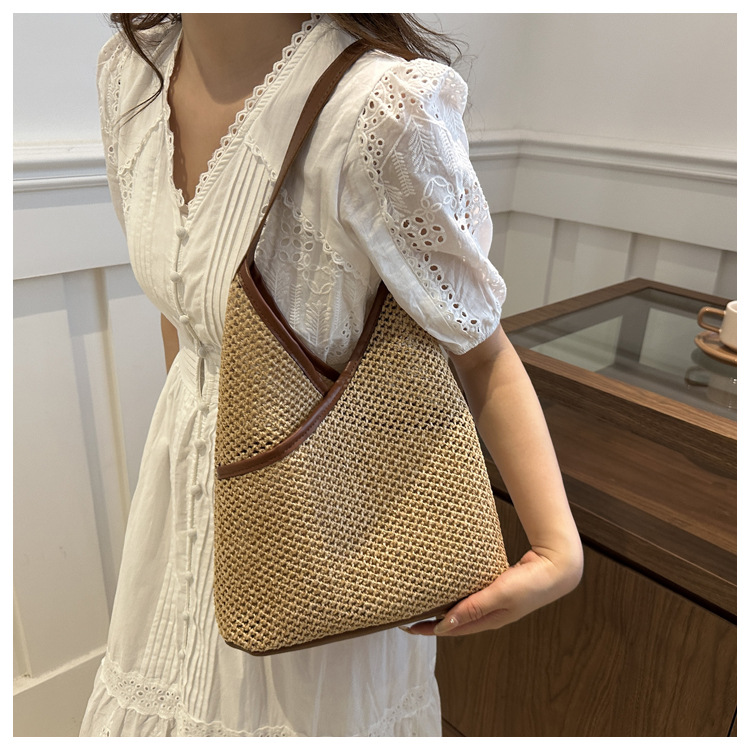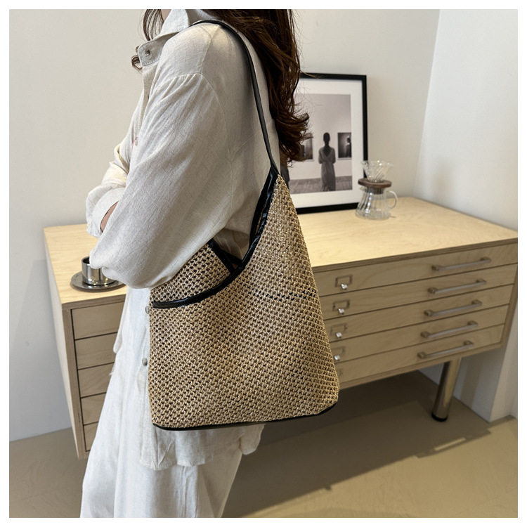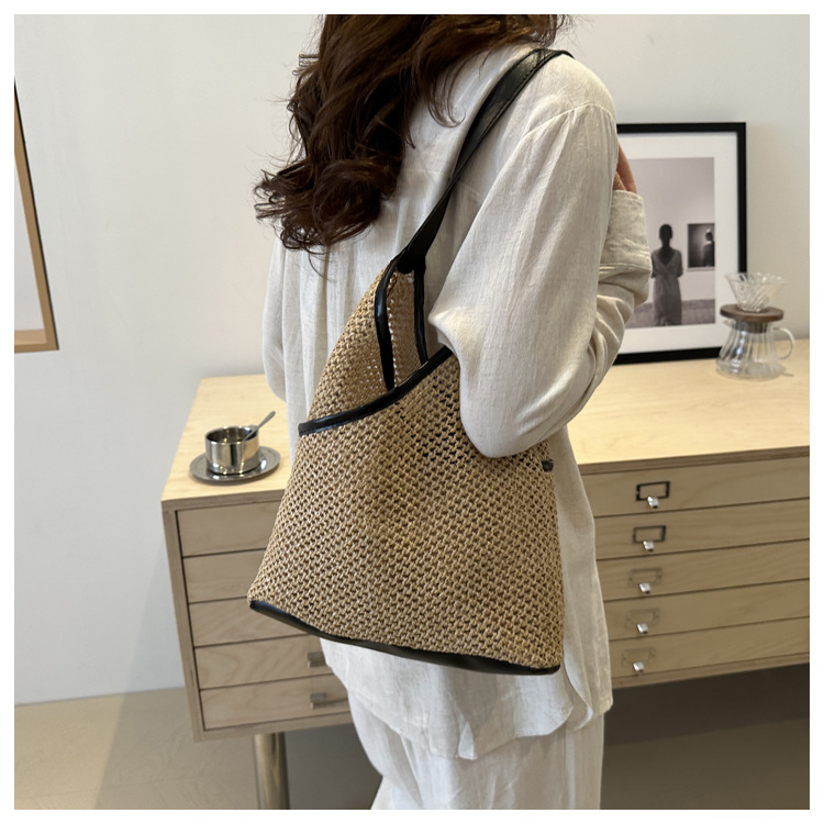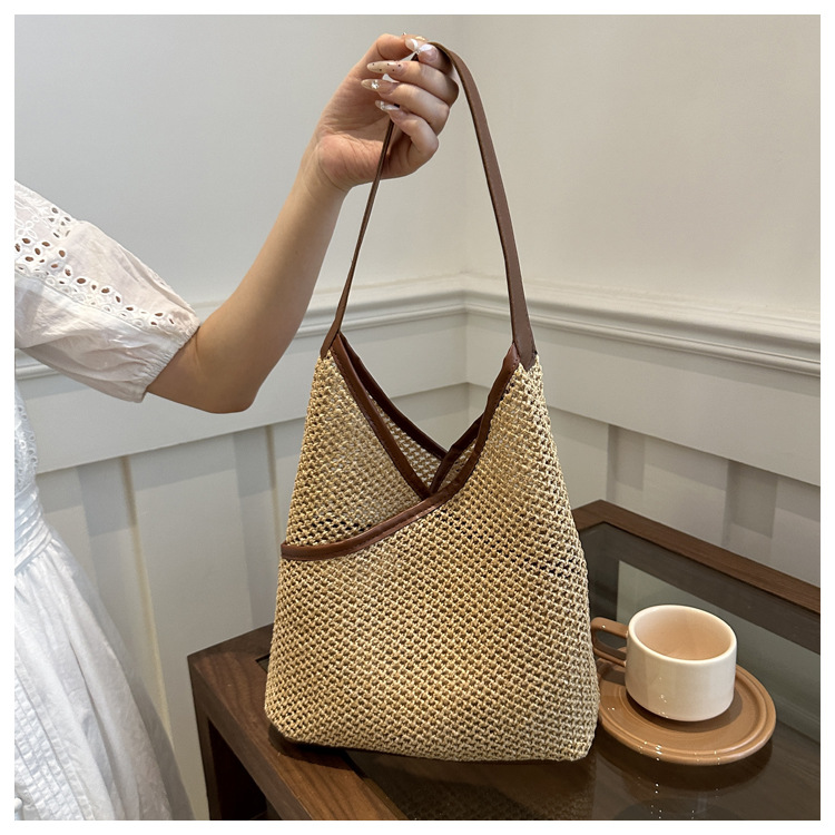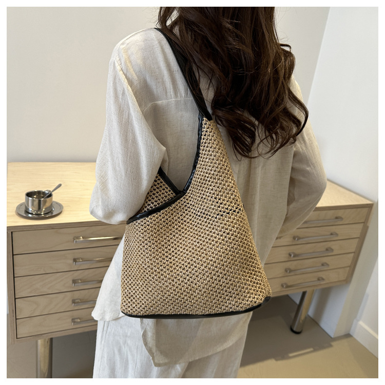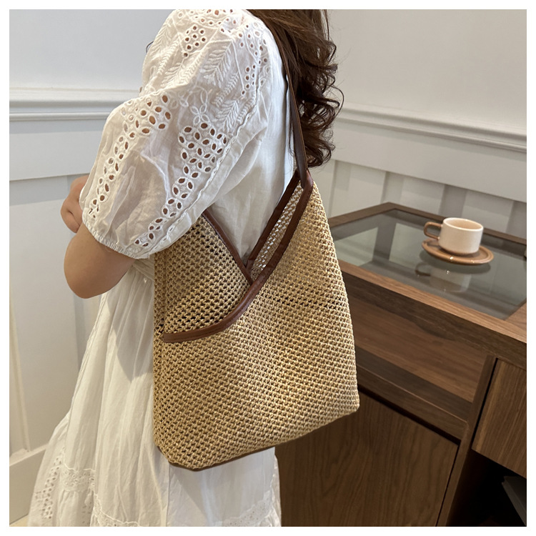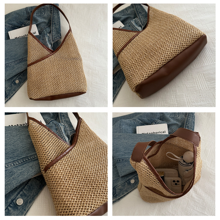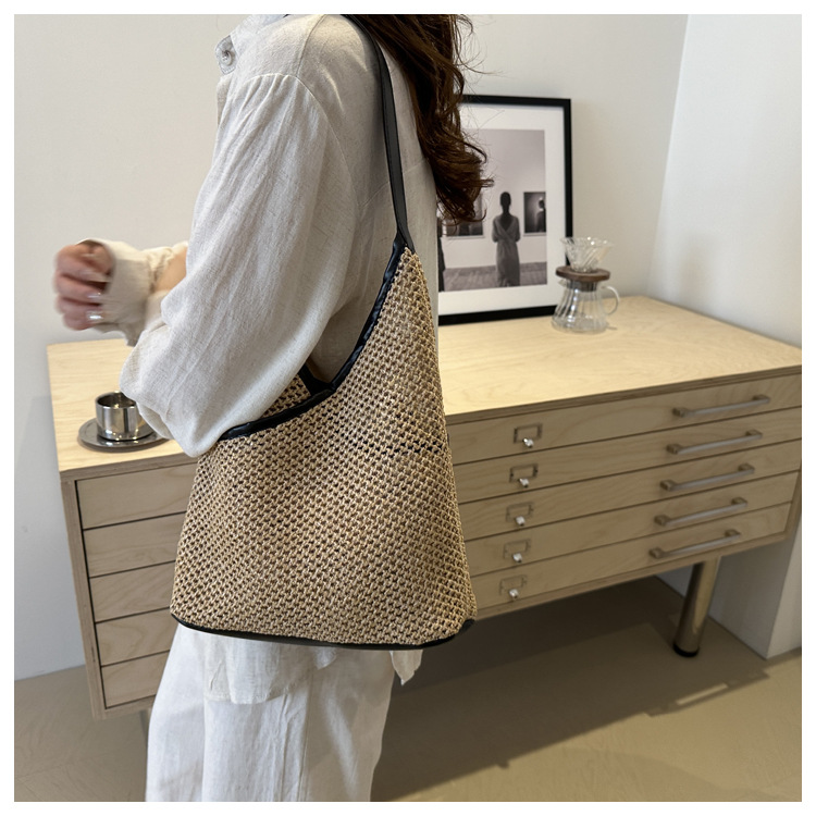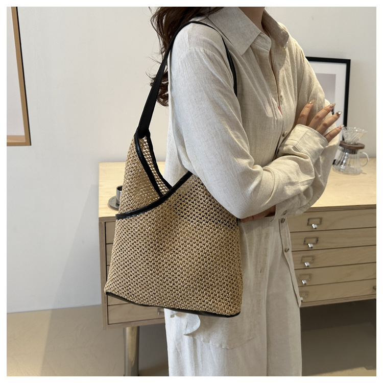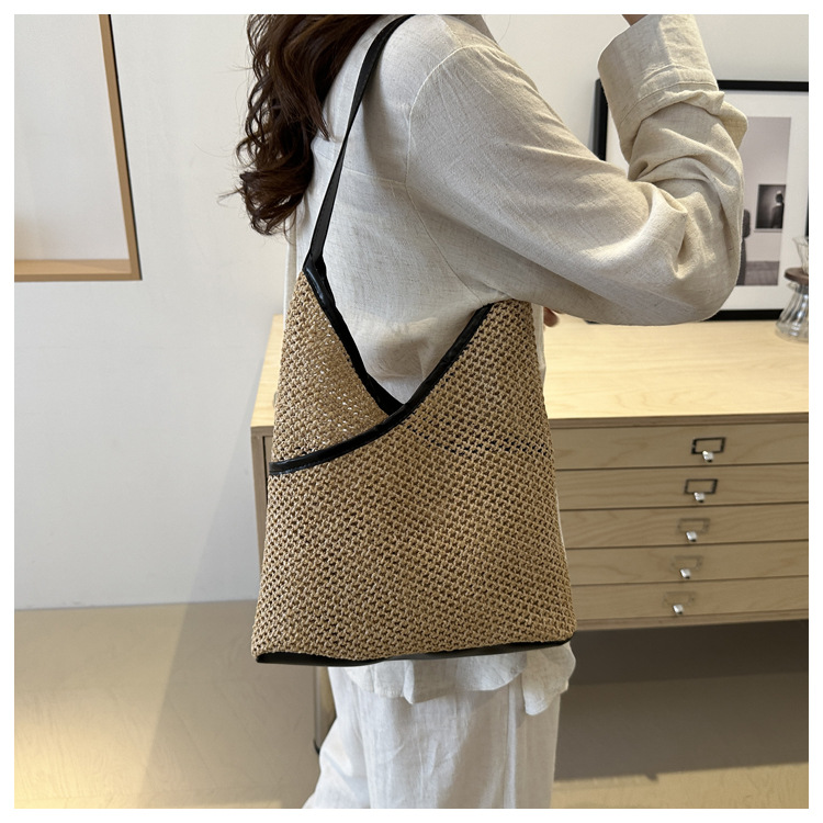 Bolsas de tejido a mano para mujeres 2024 nueva moda retro bolsas de balde de moda vacaciones bolsas de paja de moda bolsas de hombro