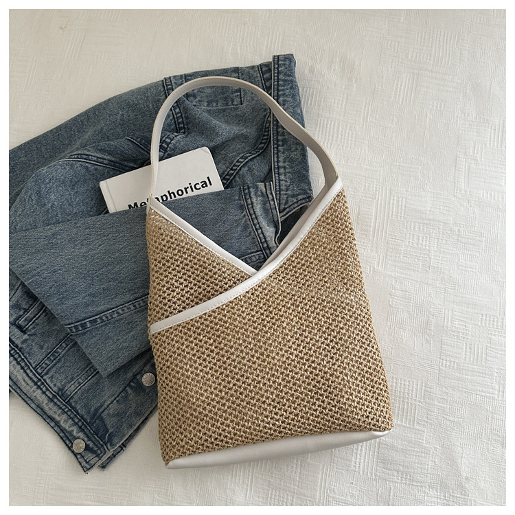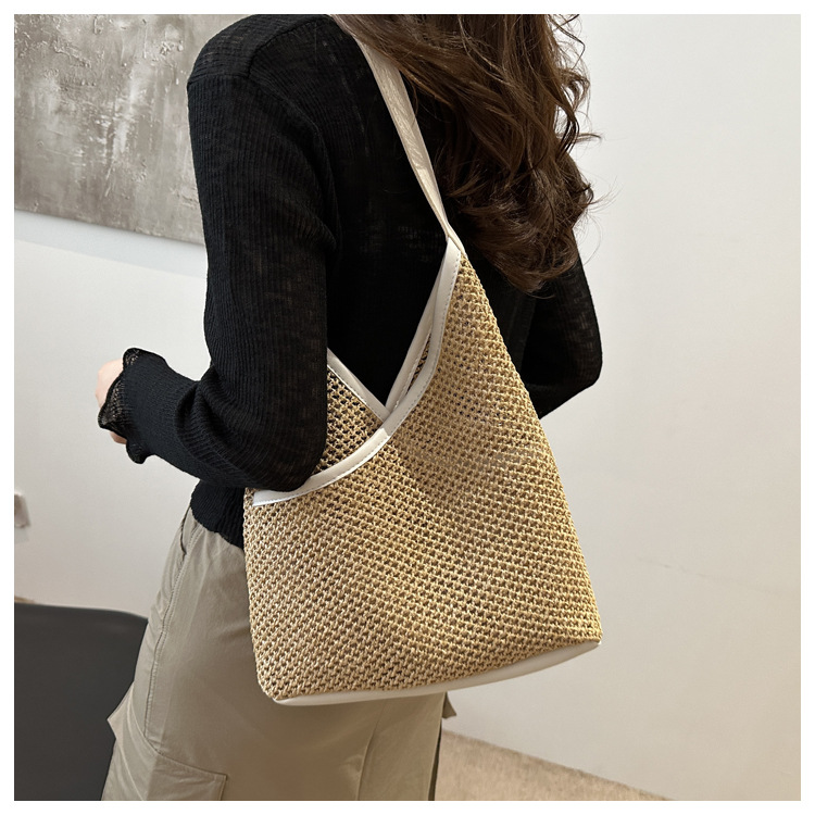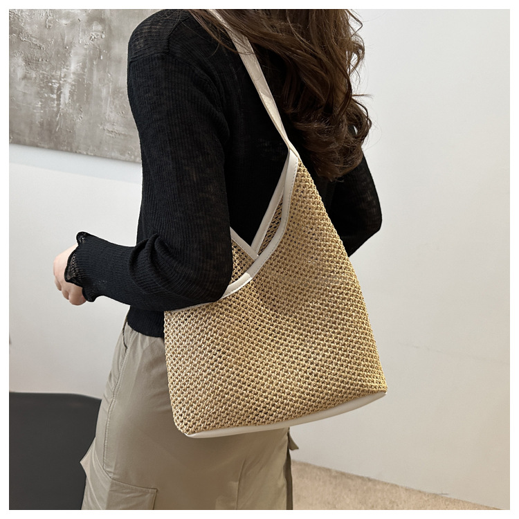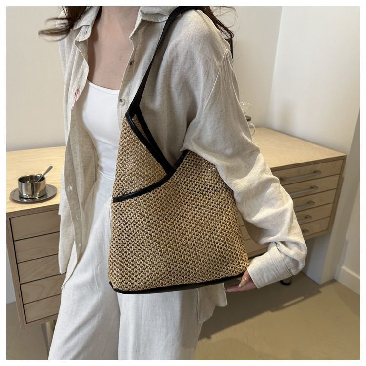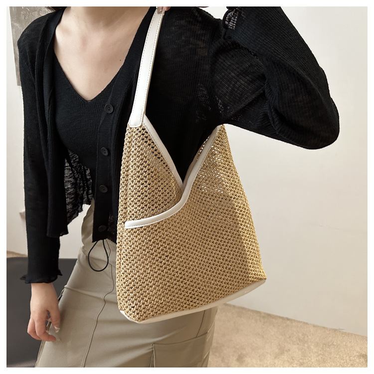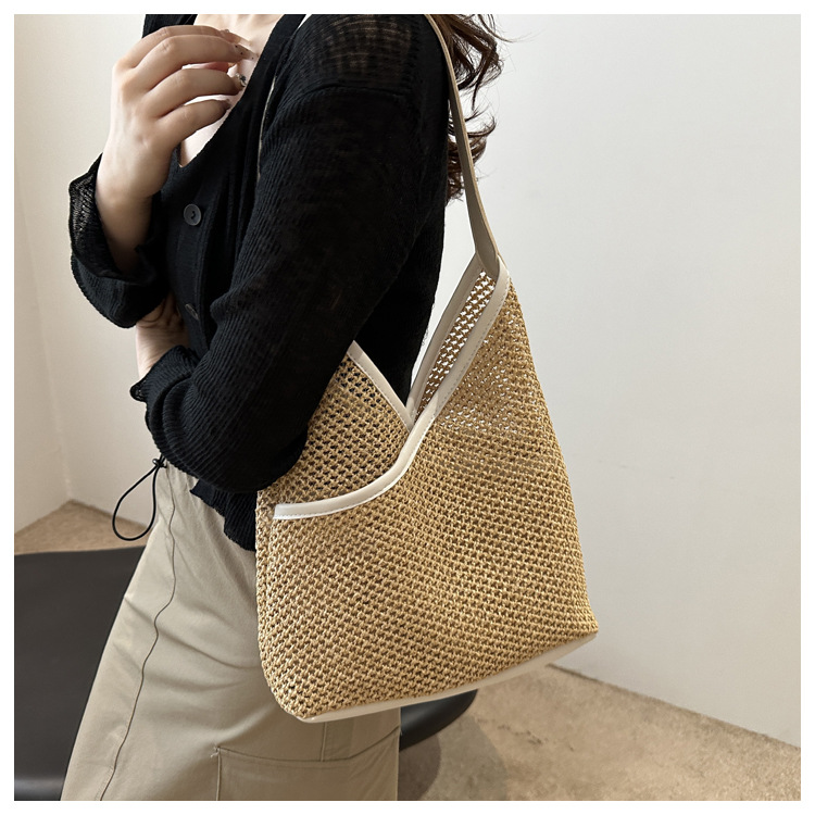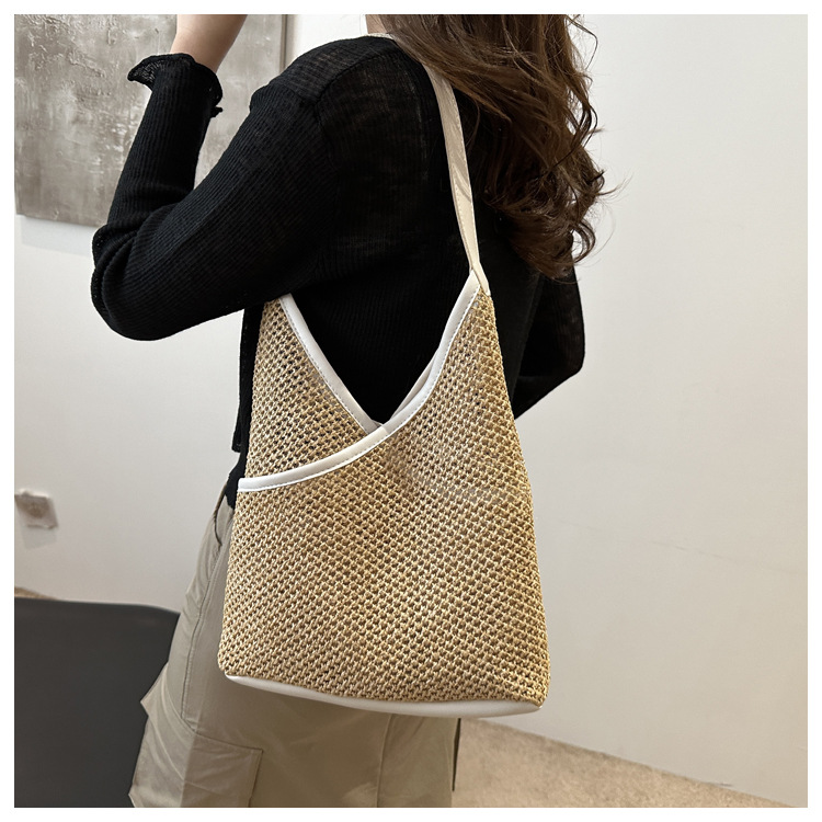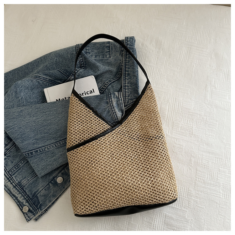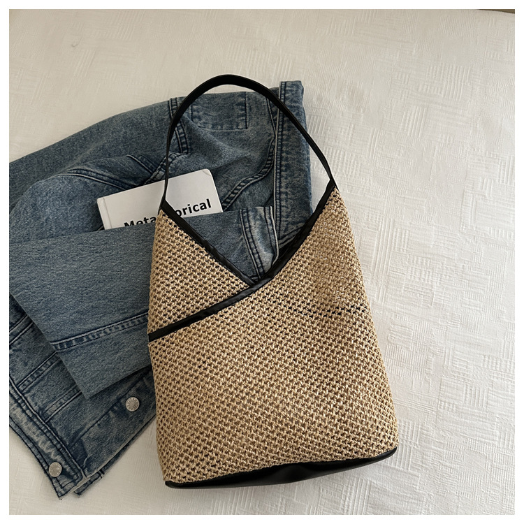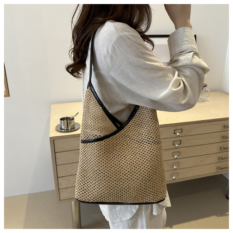 Bolsas de tejido a mano para mujeres 2024 nueva moda retro bolsas de balde de moda vacaciones bolsas de paja de moda bolsas de hombro
