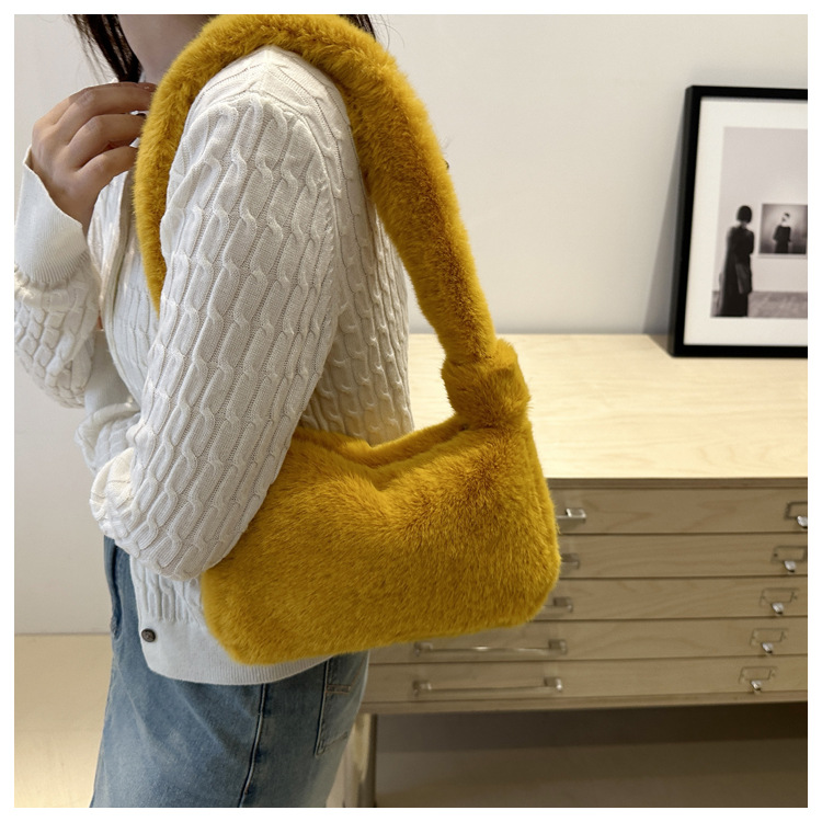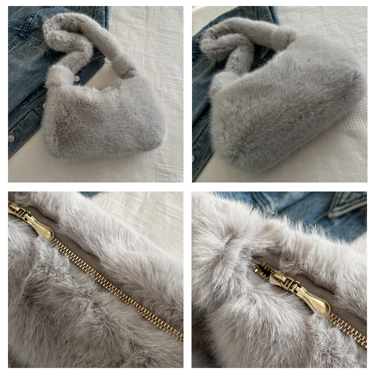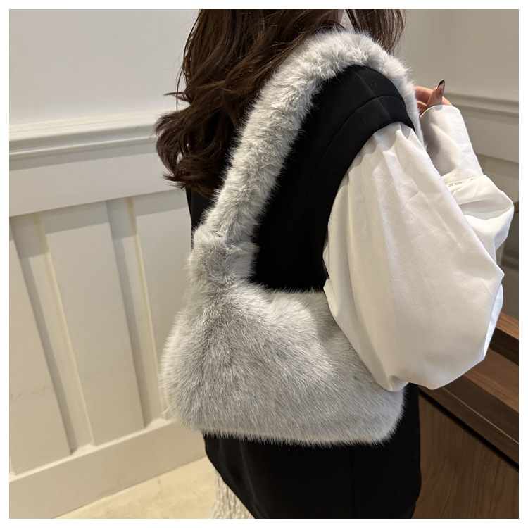 2024 invierno nuevo estilo bolso de axila temperamento bolso de mujer de alto valor felpa estilo occidental bolso de hombro diseño de nicho femenino