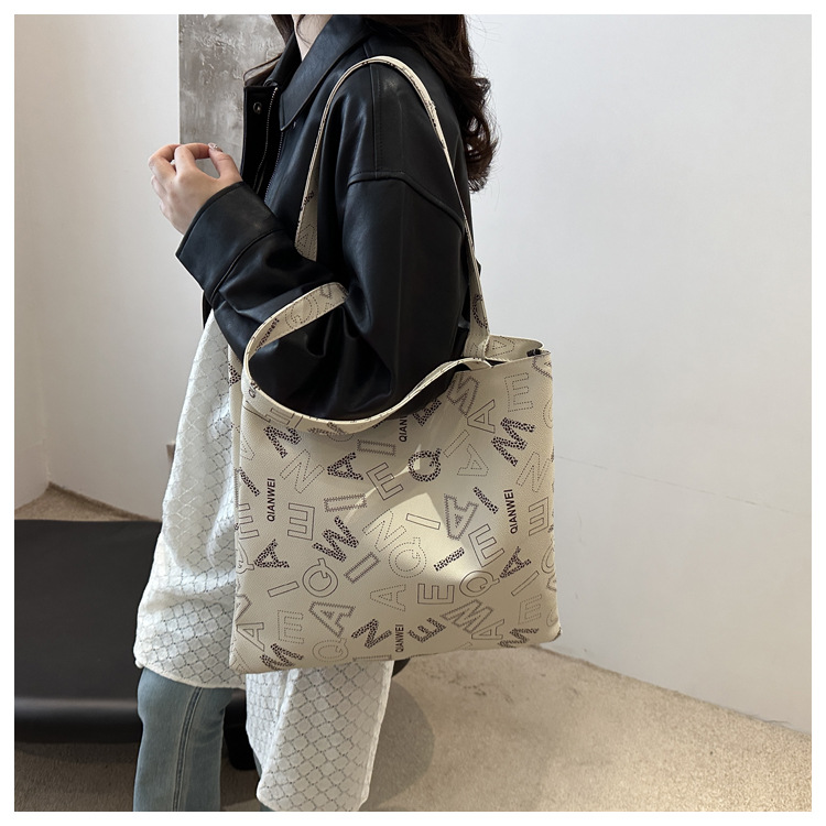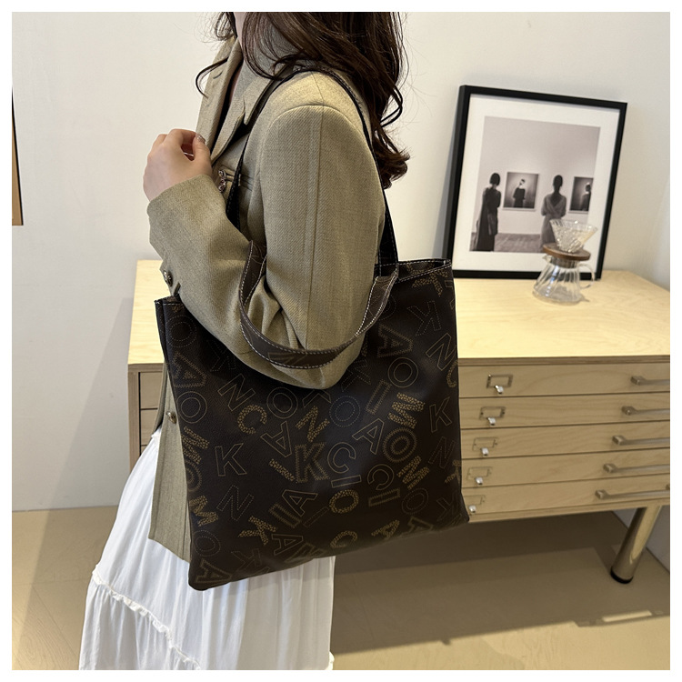 Bolso de mano otoño y invierno nuevo estilo de moda letras impresión bolso de mujer textura bolso de hombro elegante bolso retro europeo y americano