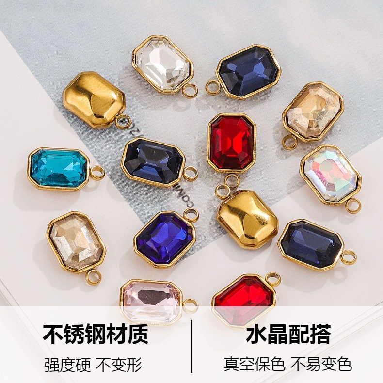 Colgante de acero de titanio DIY cristal de acero inoxidable orejas colgante nicho universal accesorios de collar de piedras preciosas coloridas al por mayor