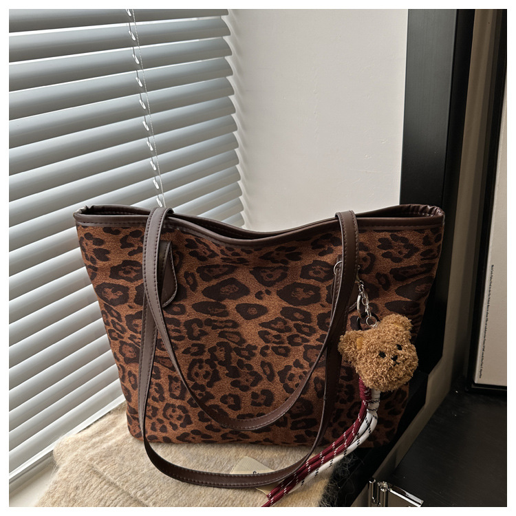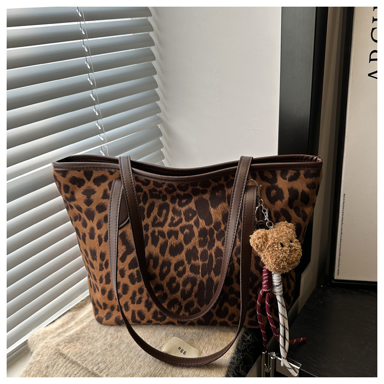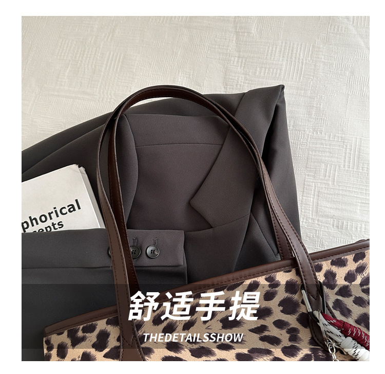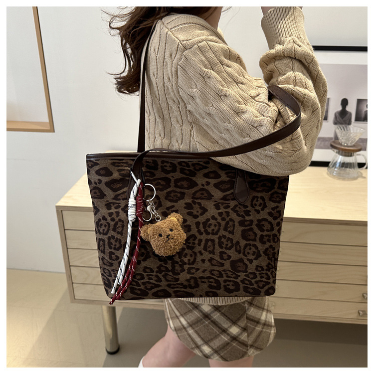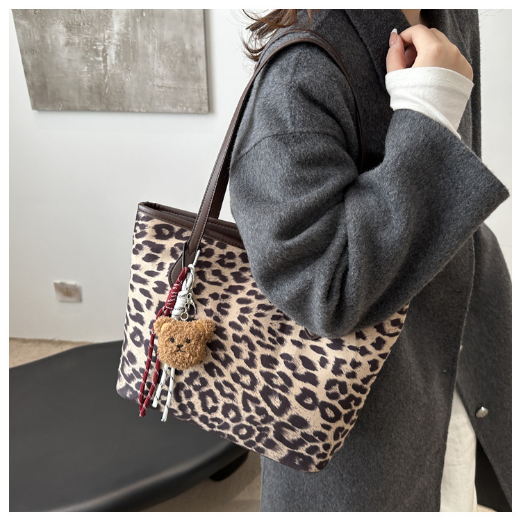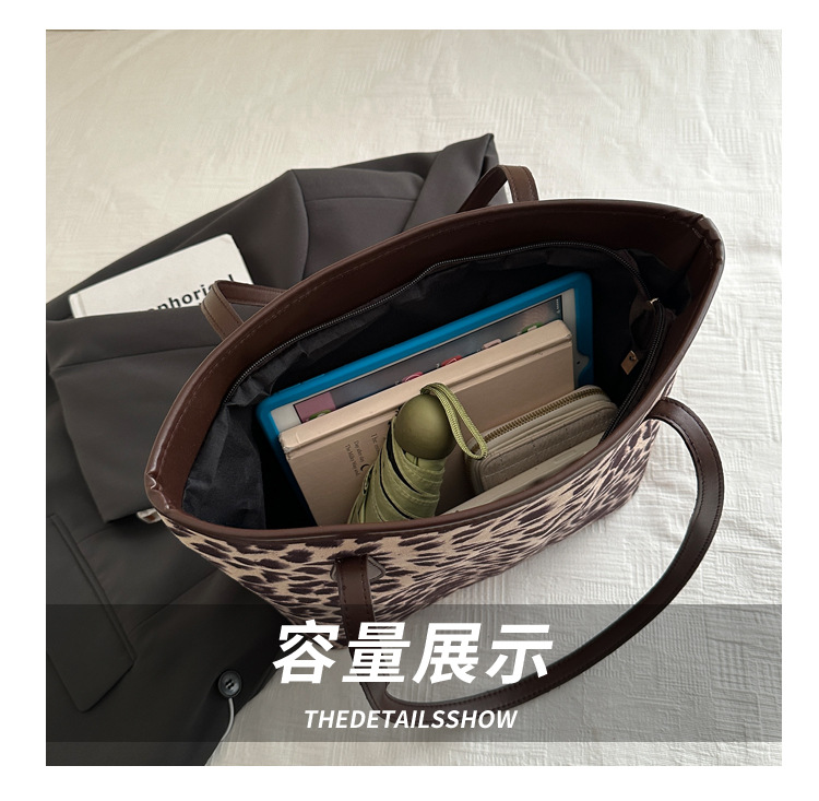 Este año, la popularidad de la bolsa de imprenta de leopardo retro 2024 invierno nuevo estilo simple de gran capacidad bolsa de viaje de trabajo casual mujer