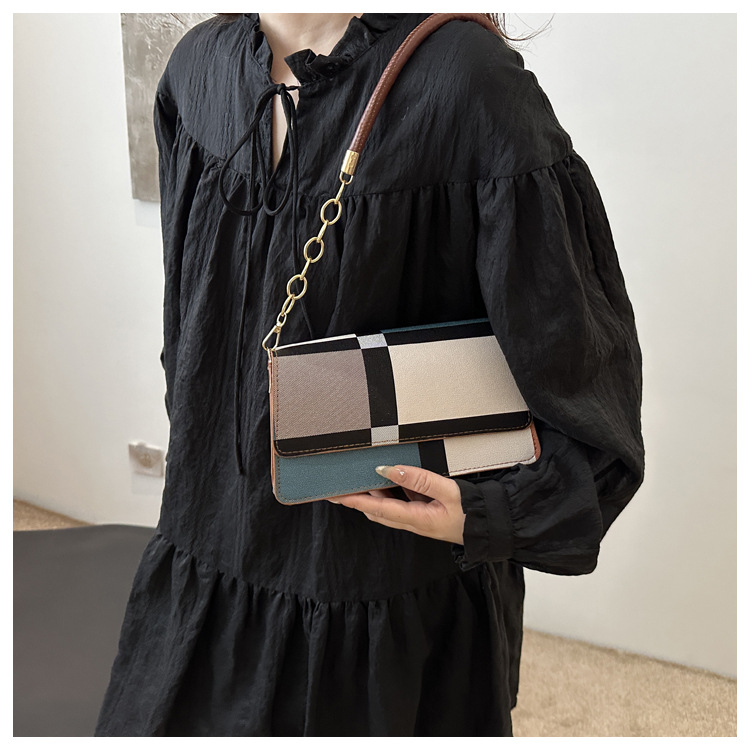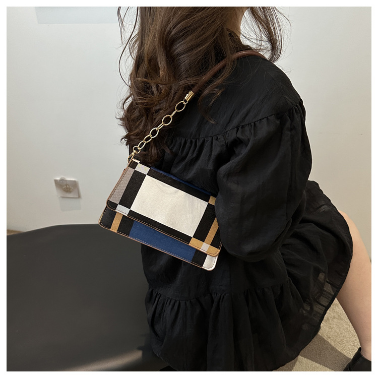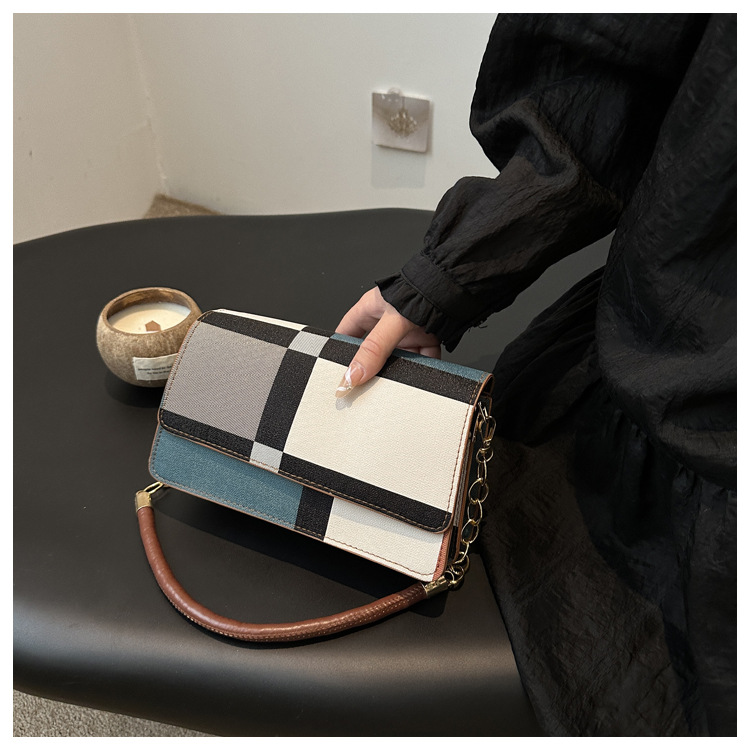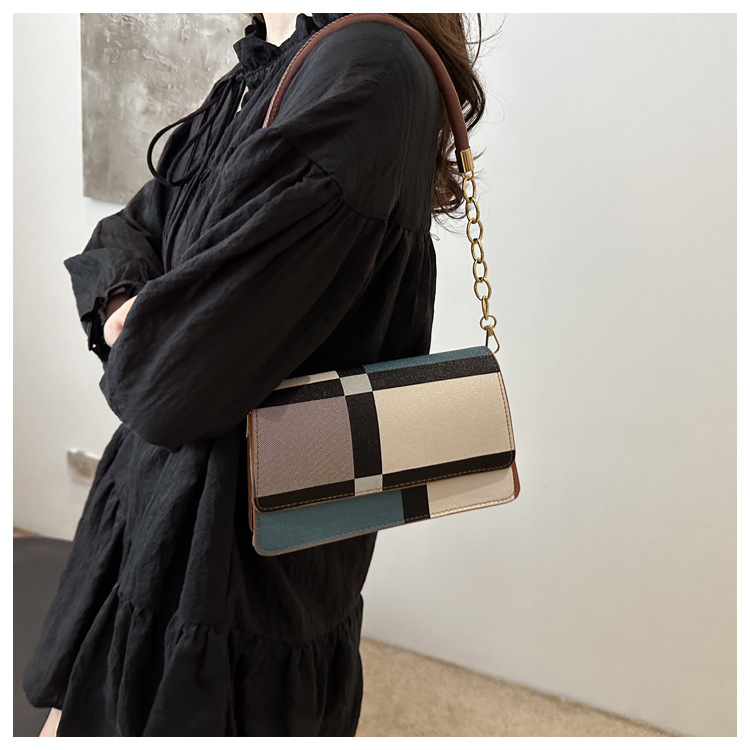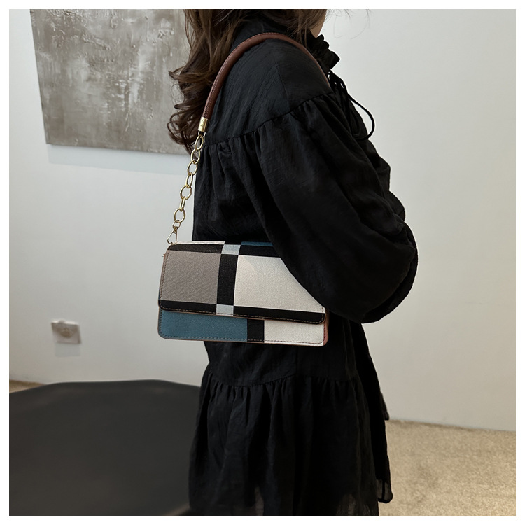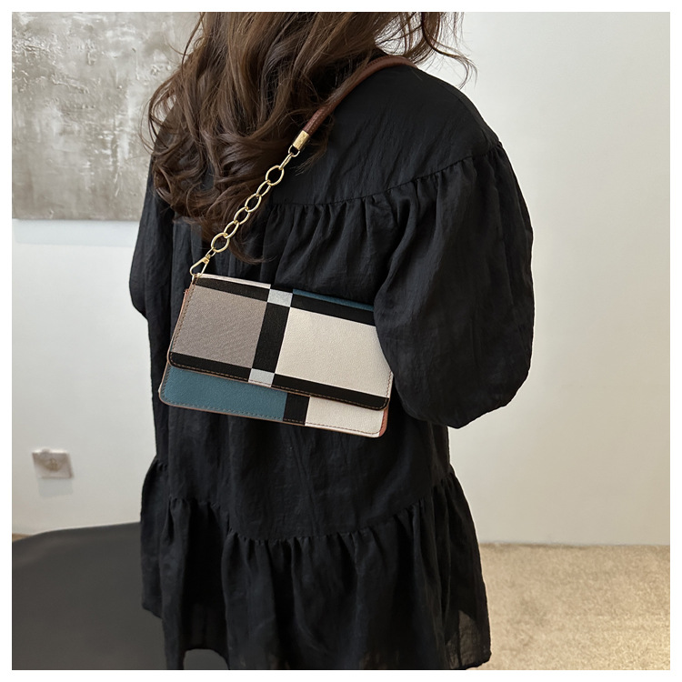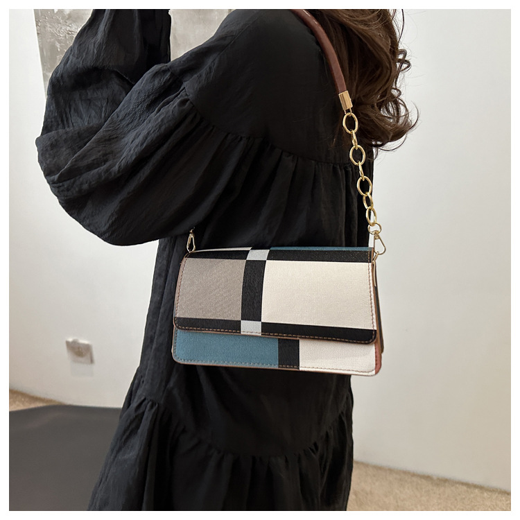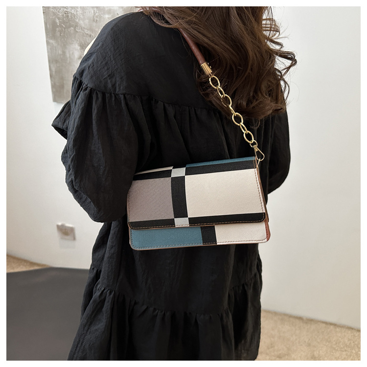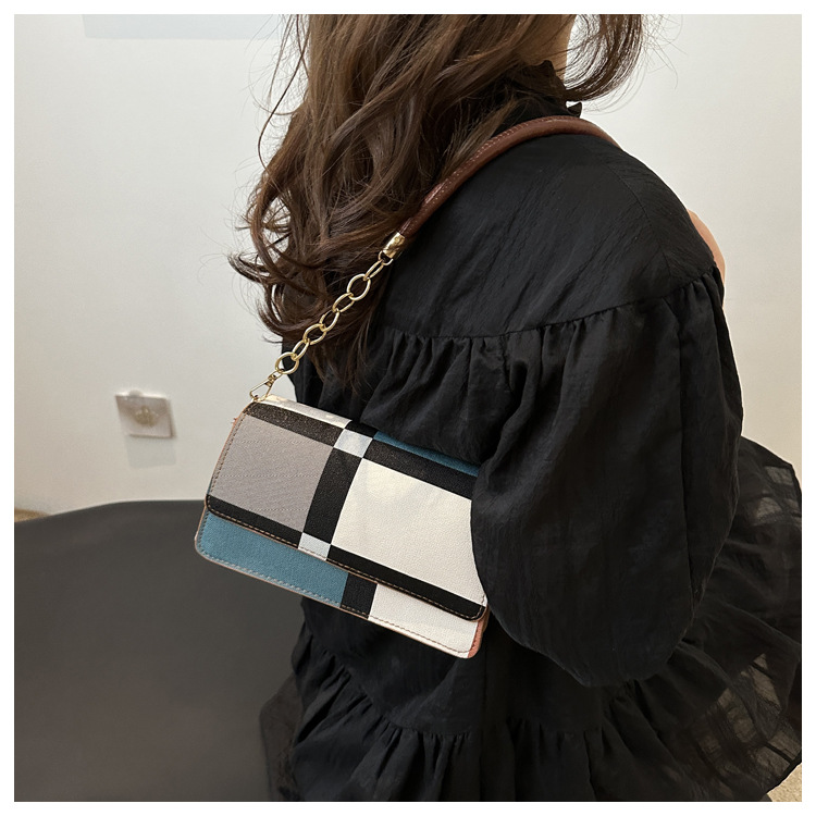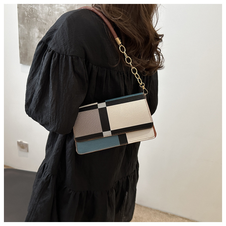 Moda popular color de contraste axila pequeño bolso cuadrado 2024 verano nuevo estilo coreano bolso de hombro bolso femenino estilo transfronterizo