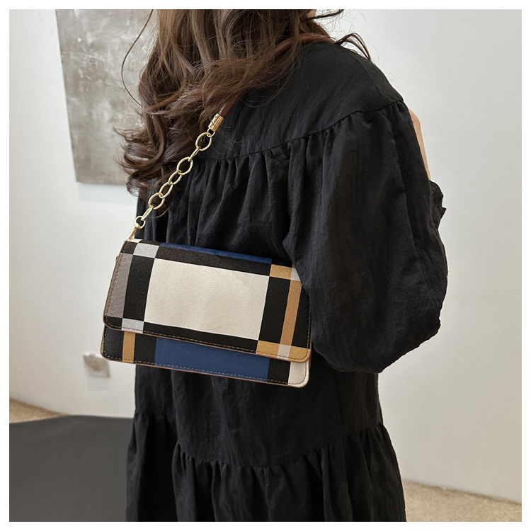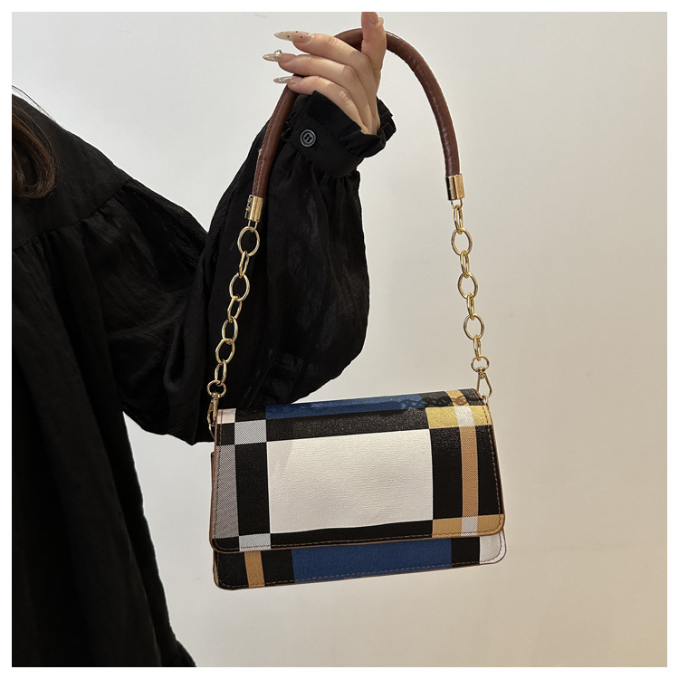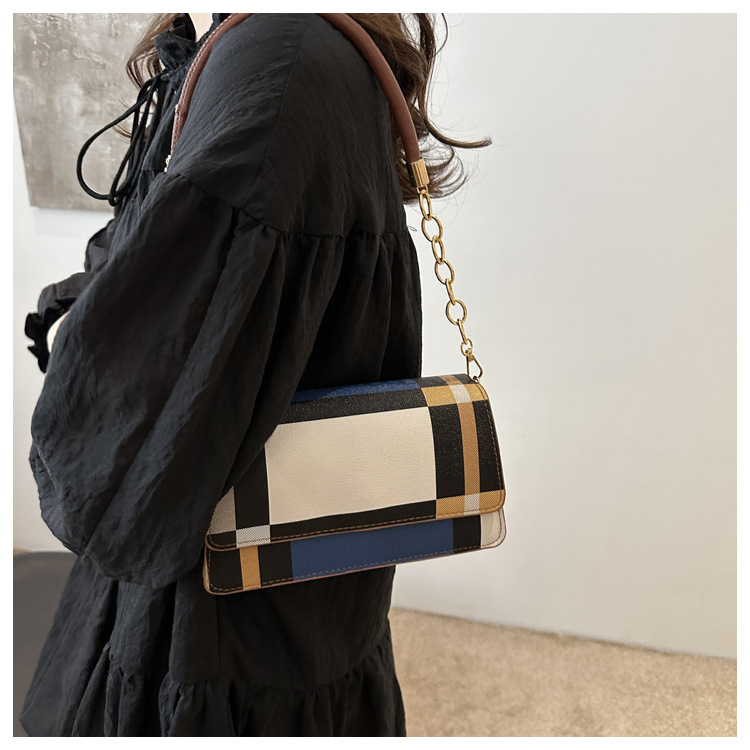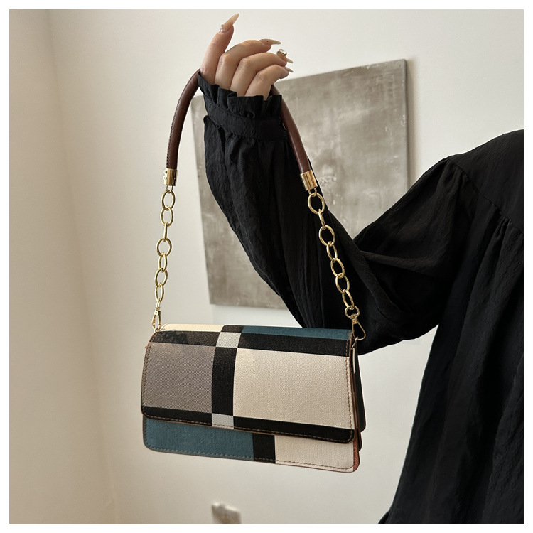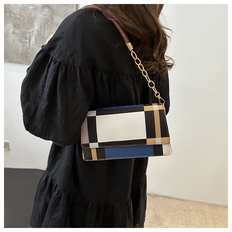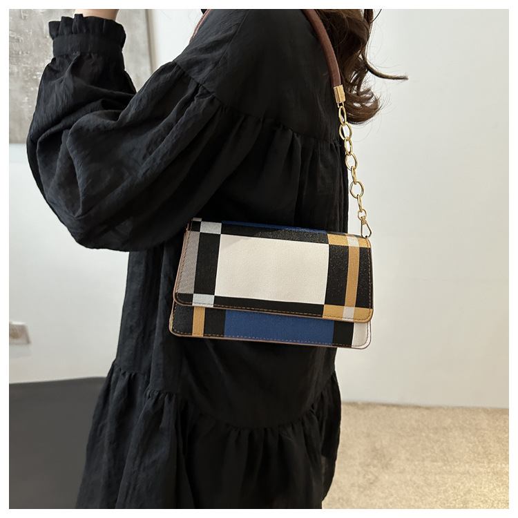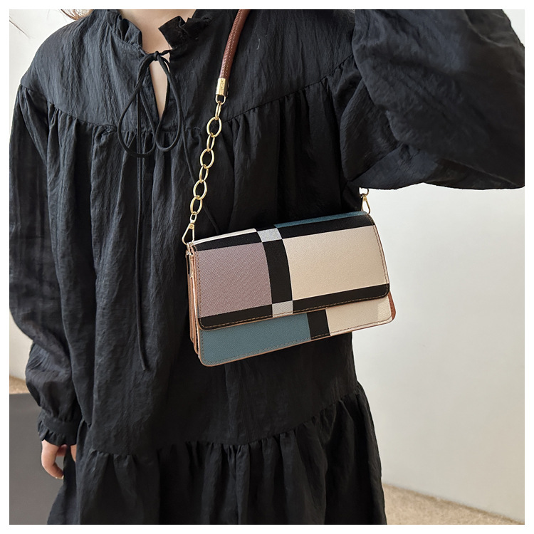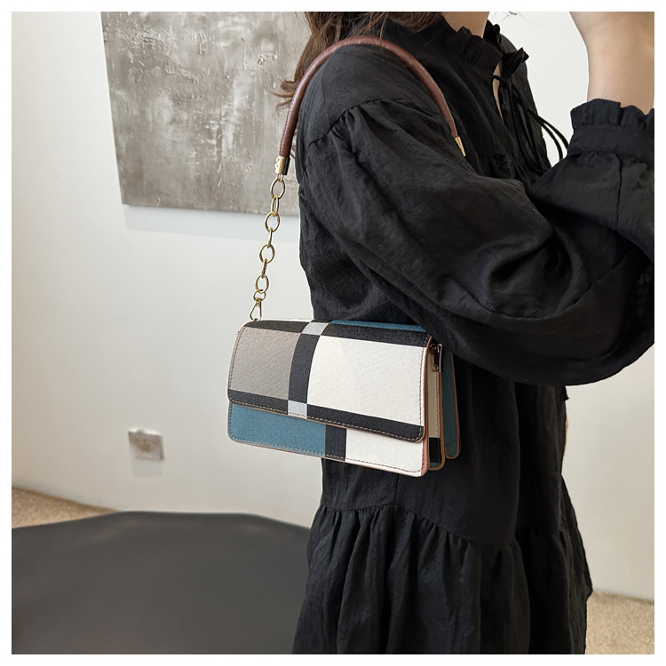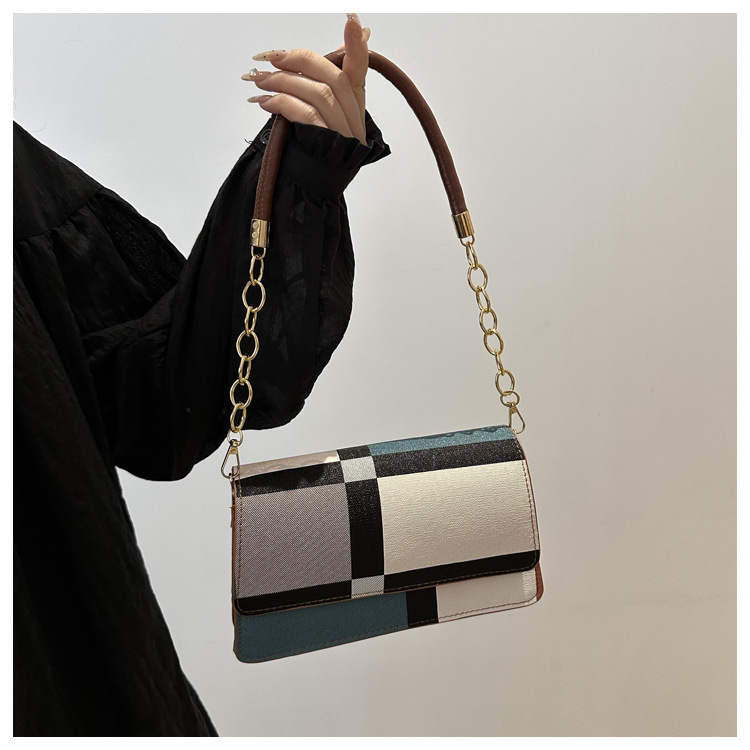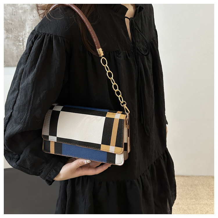 Moda popular color de contraste axila pequeño bolso cuadrado 2024 verano nuevo estilo coreano bolso de hombro bolso femenino estilo transfronterizo