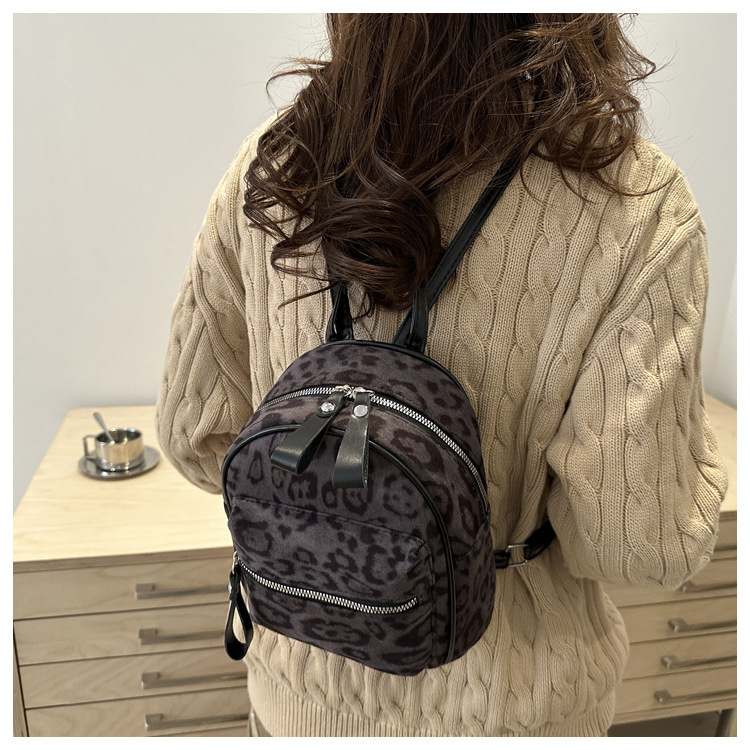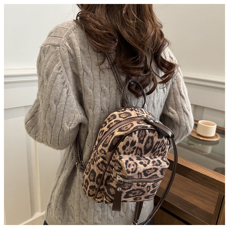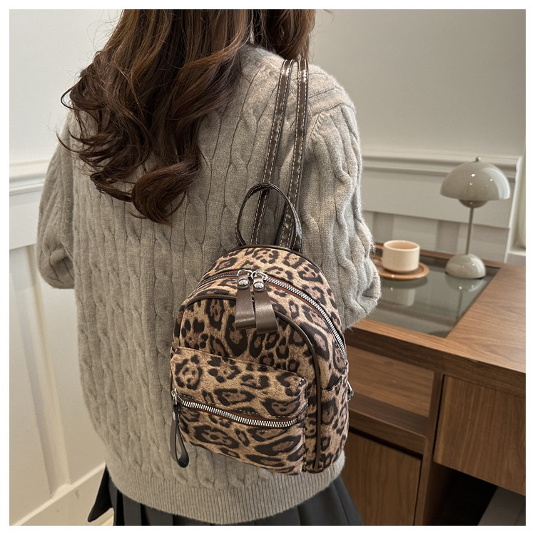 Este año popular nicho leopardo mochila de mujer 2024 nueva moda invierno versátil mochila mini mochila