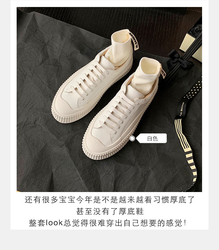 Todo el cuero de vaca ~ todo el cuero de cuero grueso zapatos de moda para mujeres zapatos casuales pequeños zapatos blancos zapatos muffins zapatos de skate